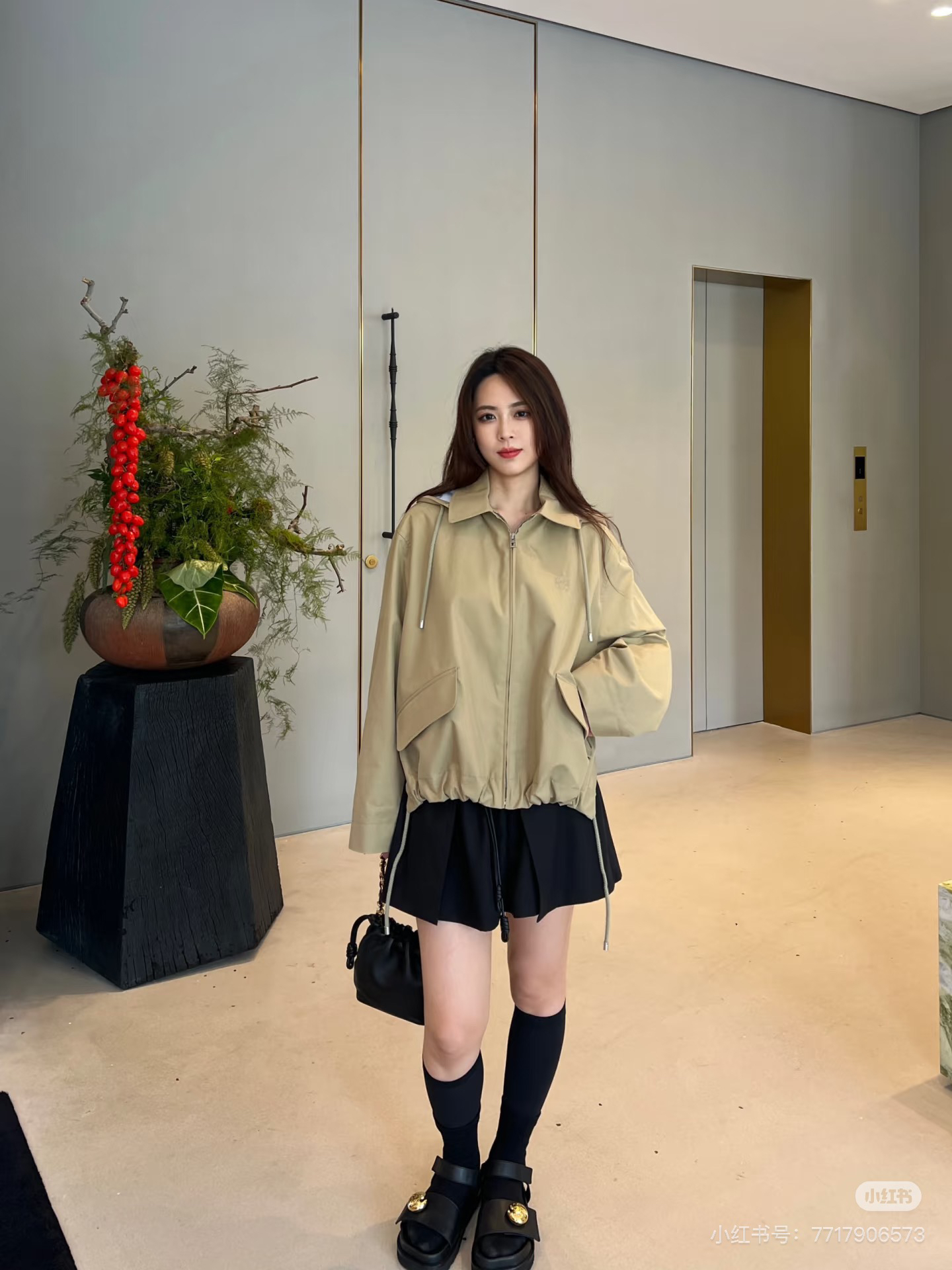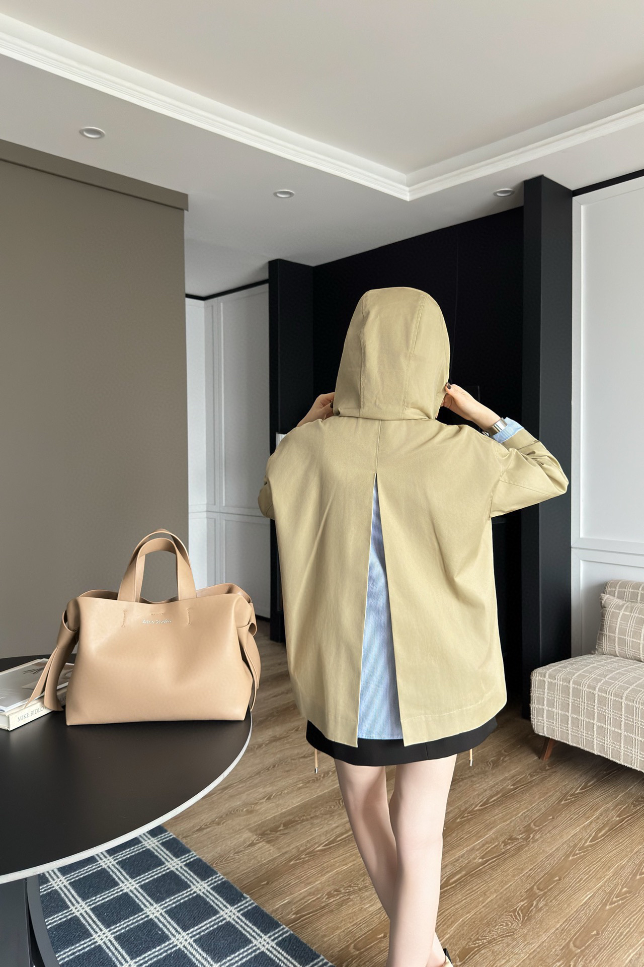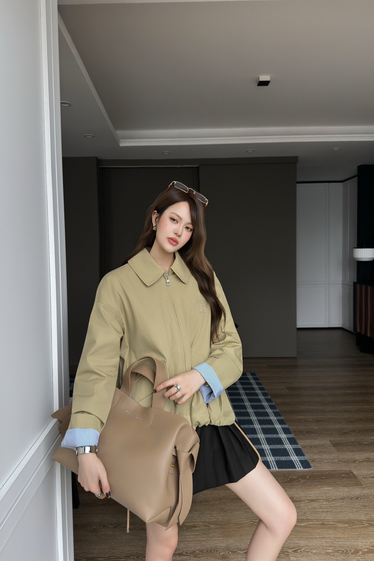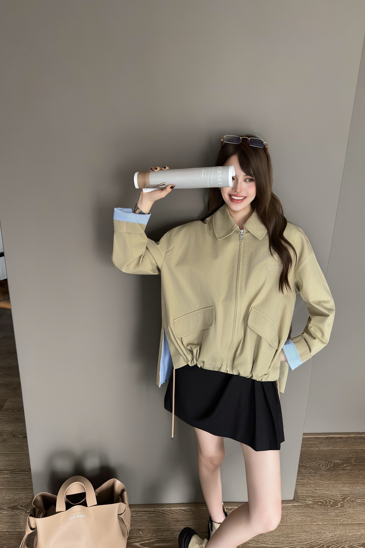 一眼就是心动款LOEWE外套自带工装酷感,卡其色连帽外套自带慵懒滤镜