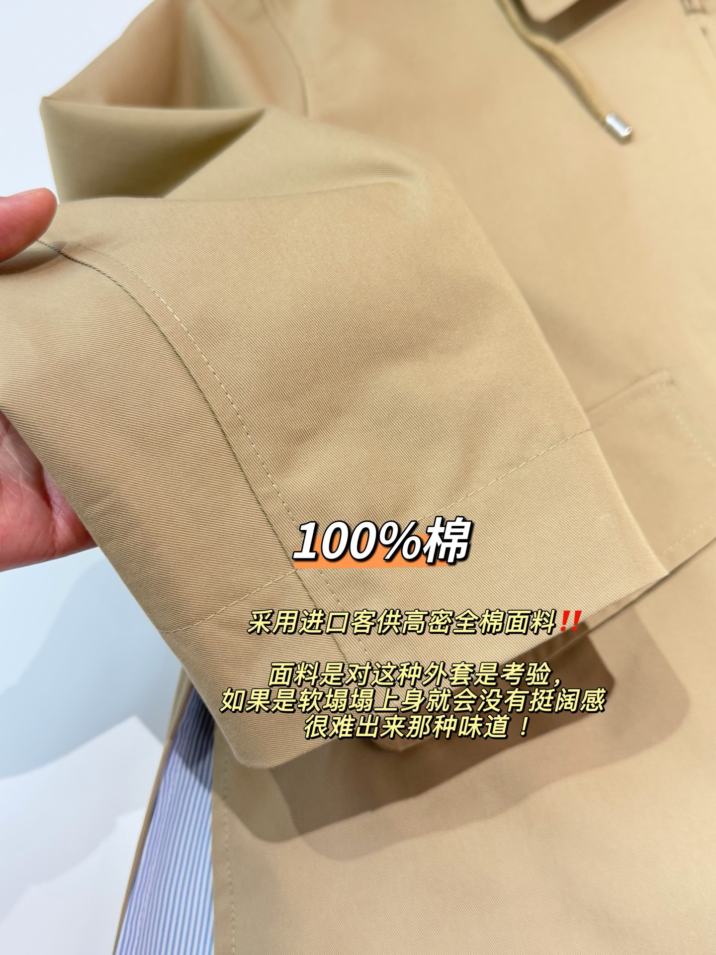 面料:采用进口客供高密全棉面料‼️面料是对这种外套是考验,如果是软塌塌上身就会没有挺阔感 很难出来那种味道 !100%棉,质感非常好,