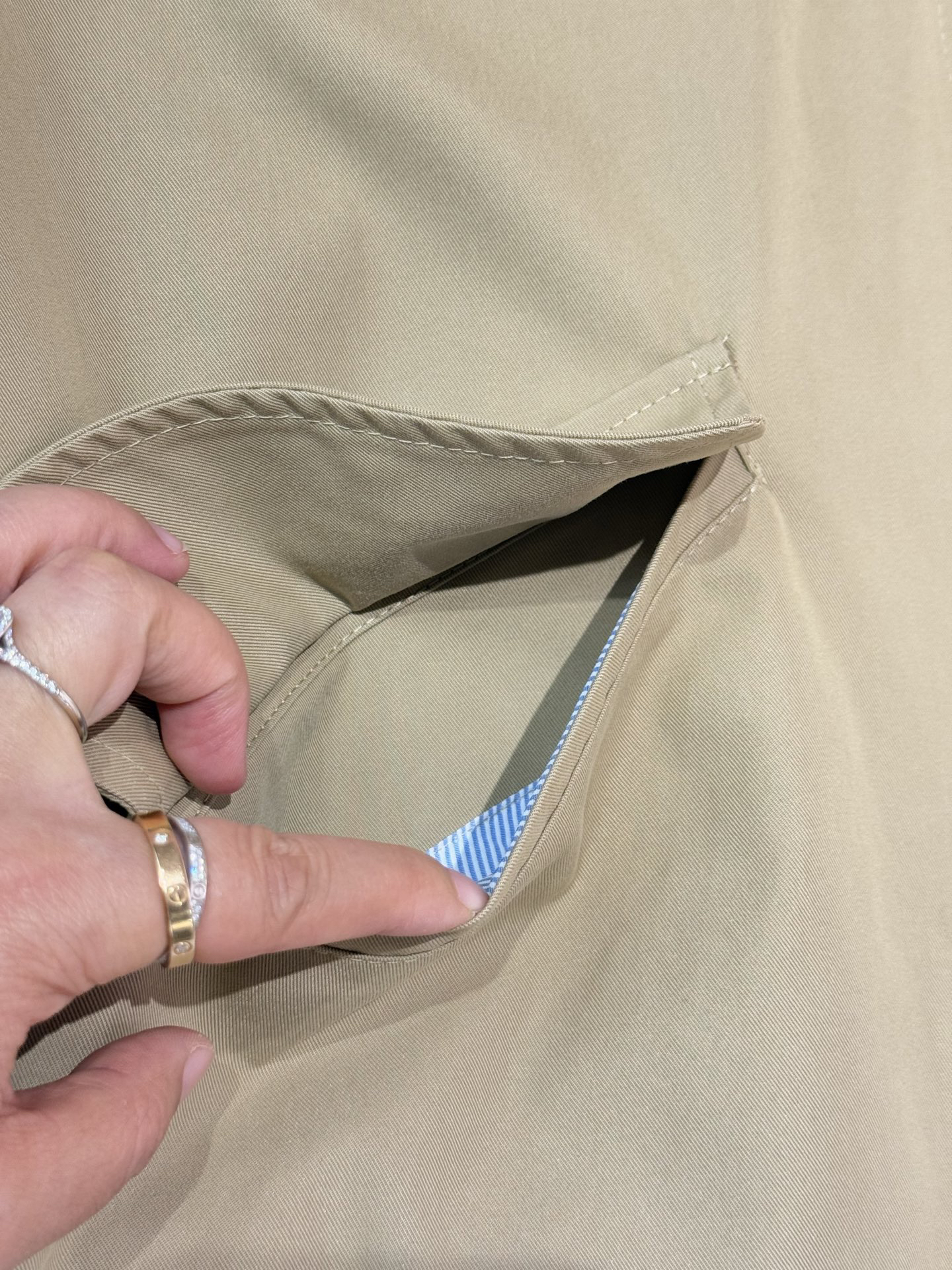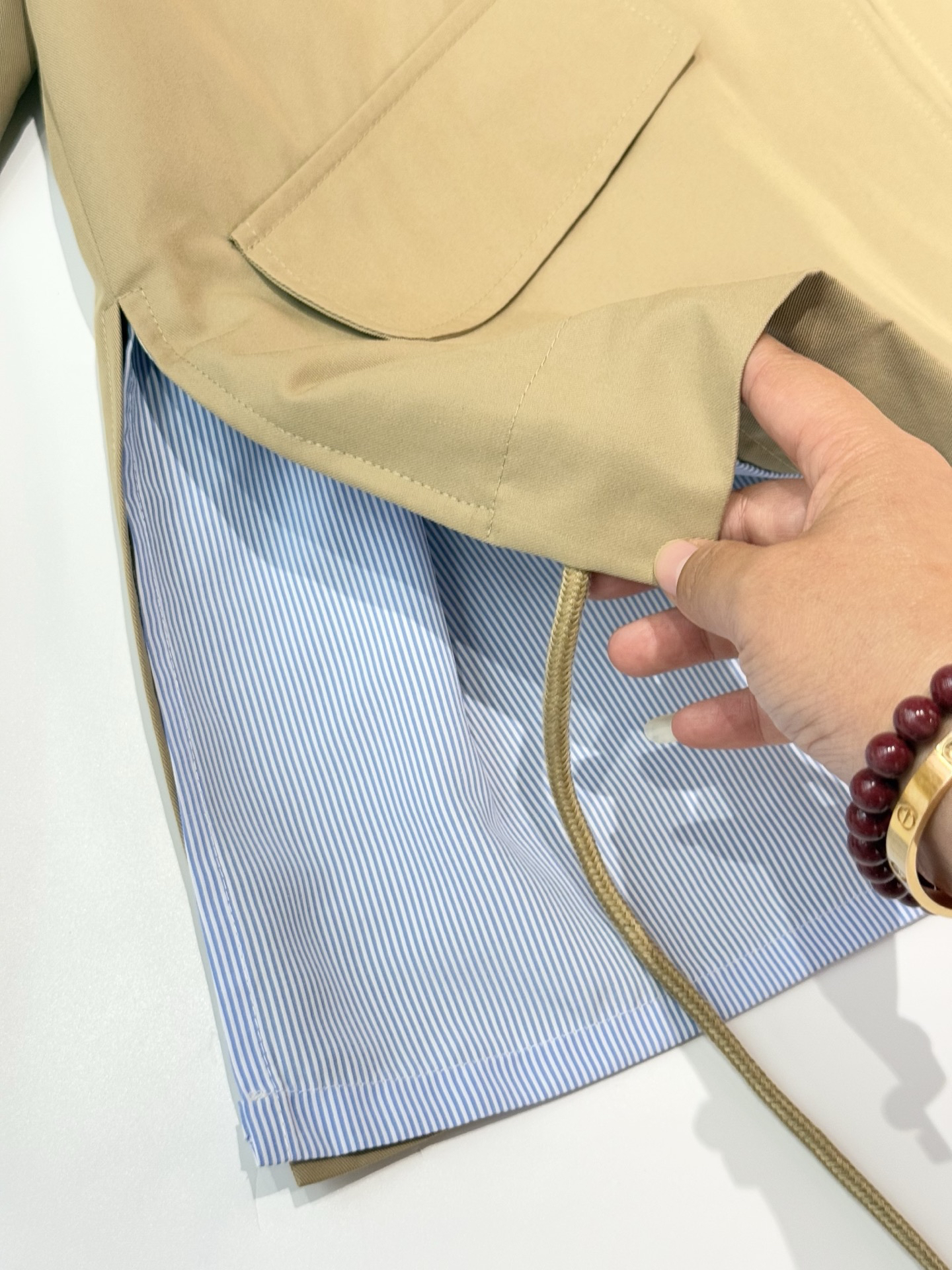 内里条纹里衬!非常重工又用心👍🏻前短后长的设计真的太高级!~