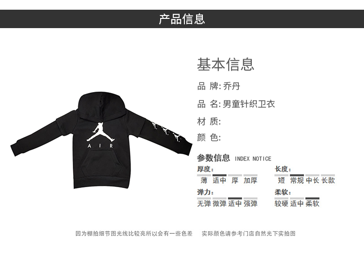 JORDAN童装正品 男童假两件拼接针织加绒连帽卫衣JD942019PS/GS