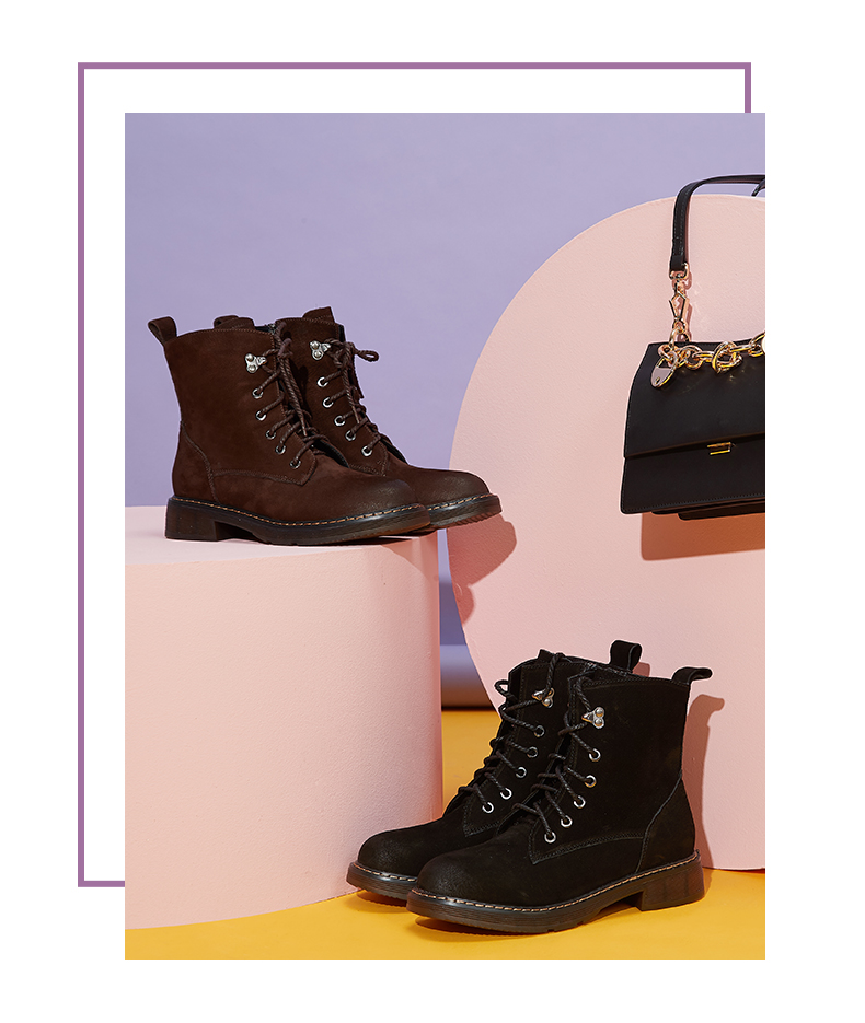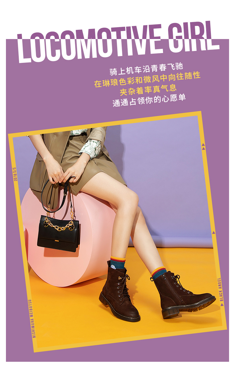 西村名物2020年冬季新款马丁靴女低跟时尚复古短靴T29DS40671