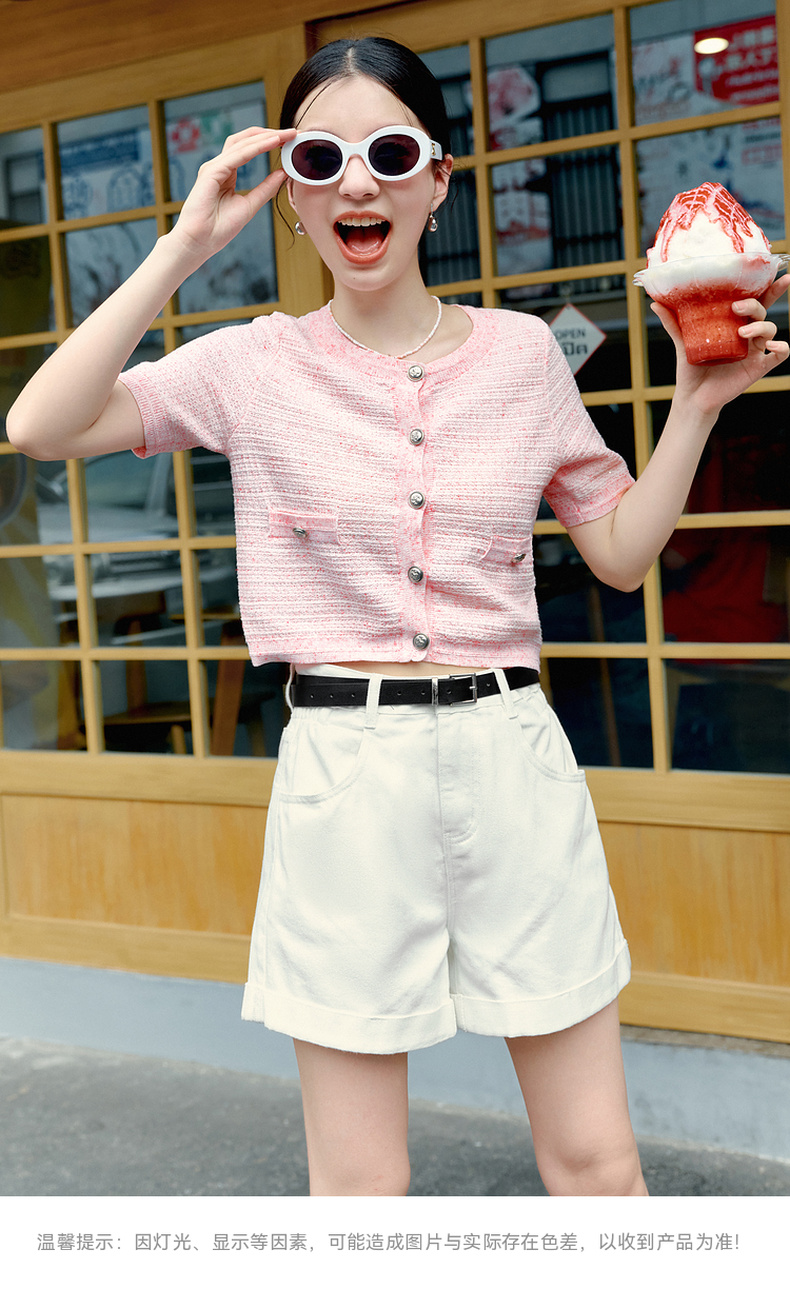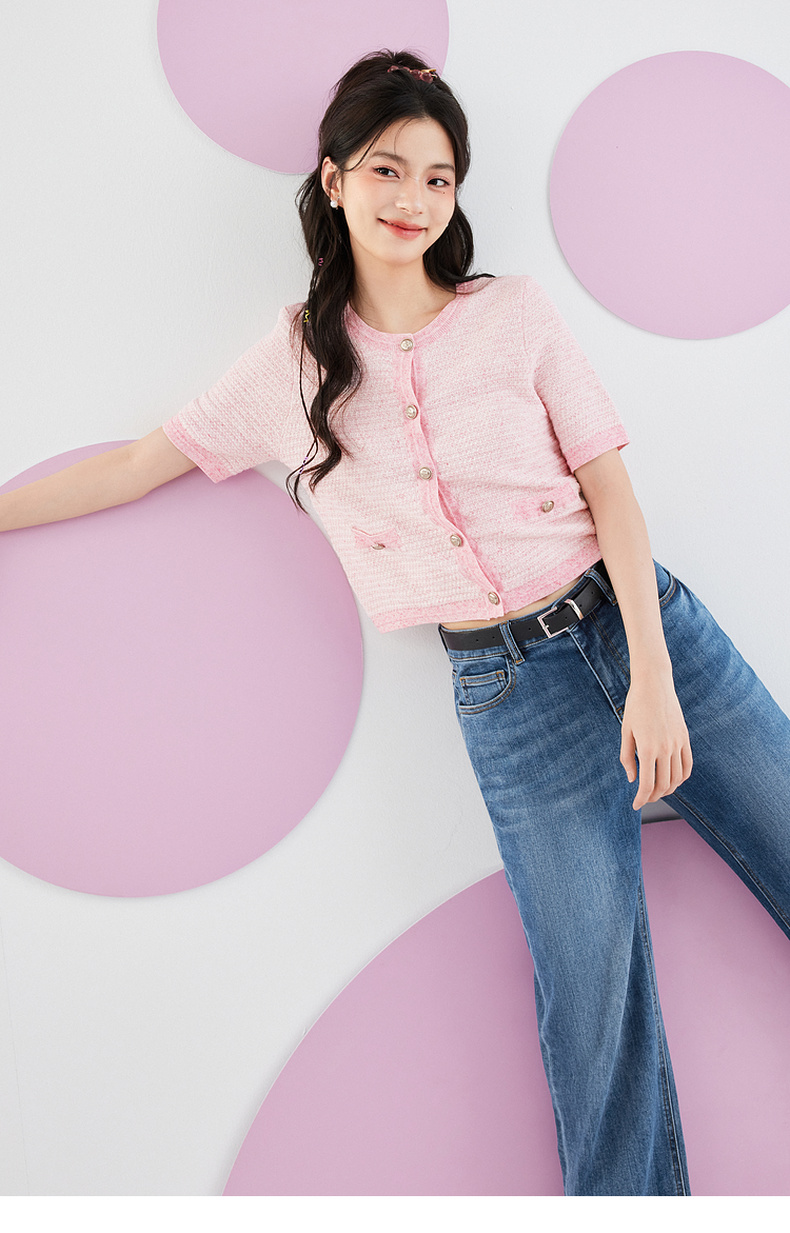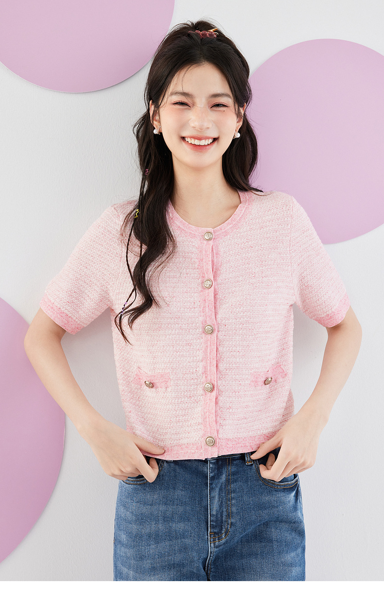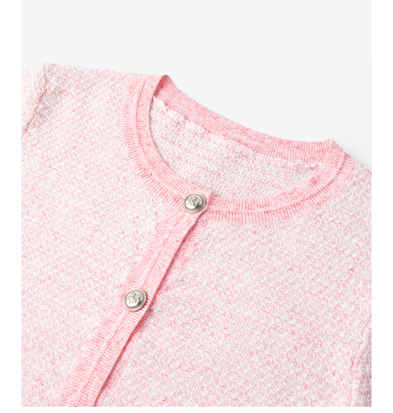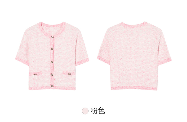 【严选】诗凡黎粉色小香风针织开衫2024夏新款显瘦短款气质名媛上衣女SF3430681
