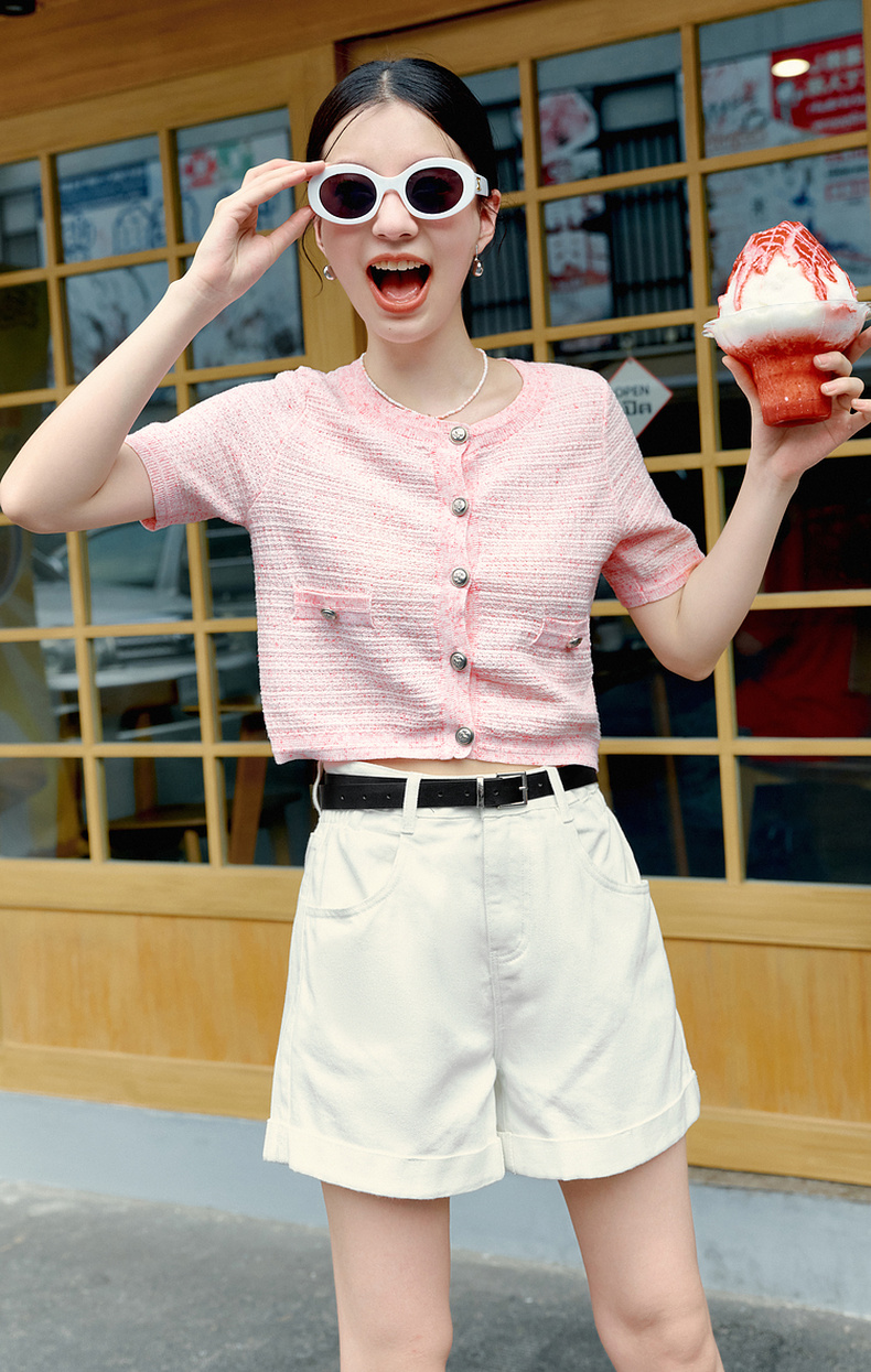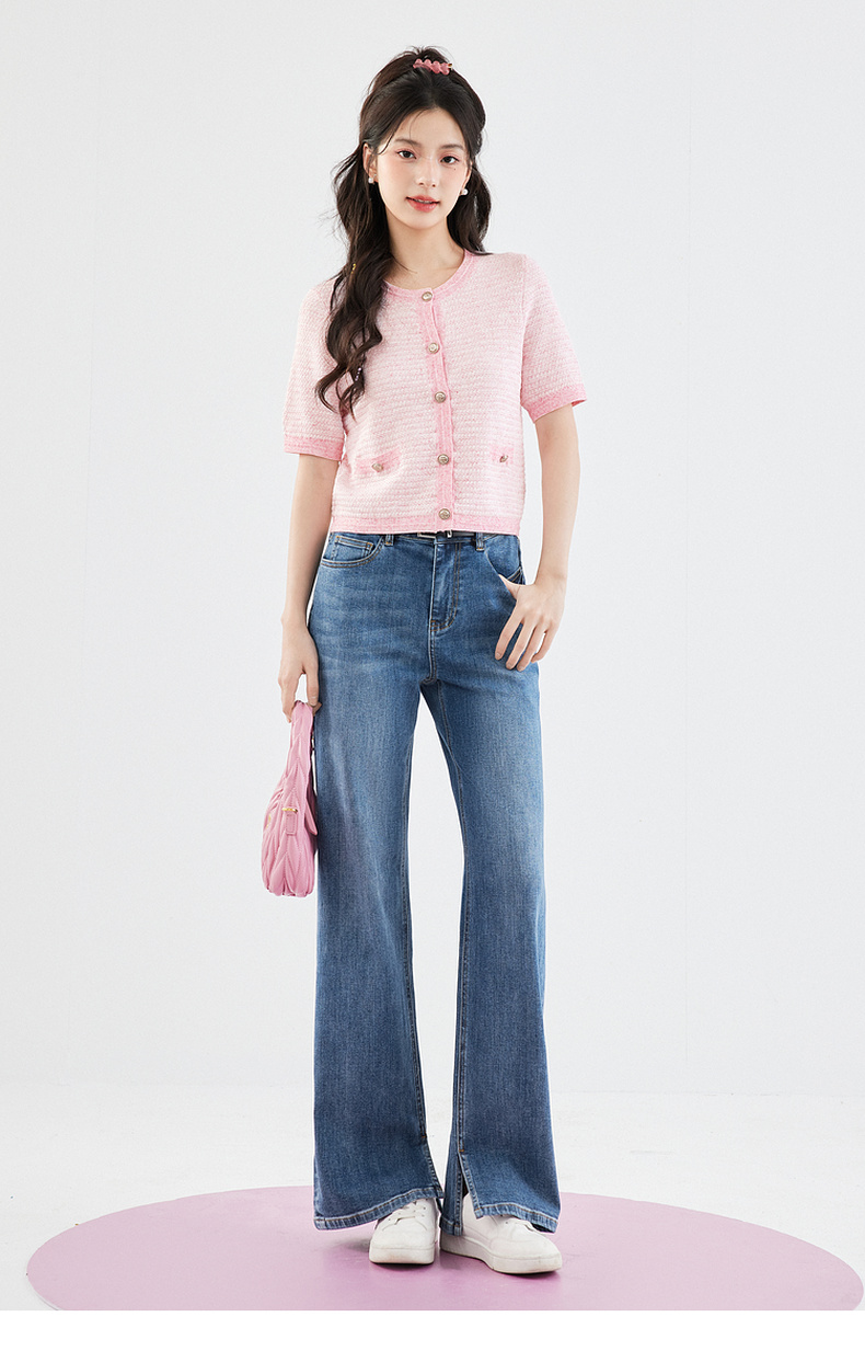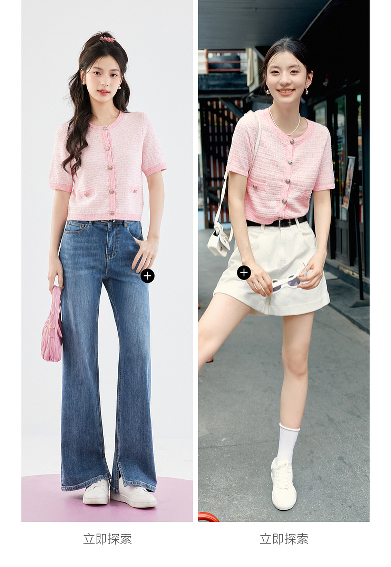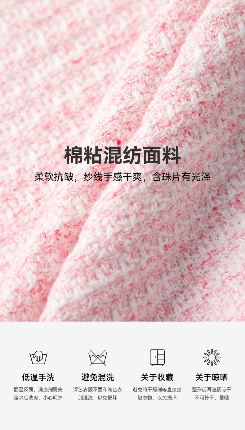 【严选】诗凡黎粉色小香风针织开衫2024夏新款显瘦短款气质名媛上衣女SF3430681