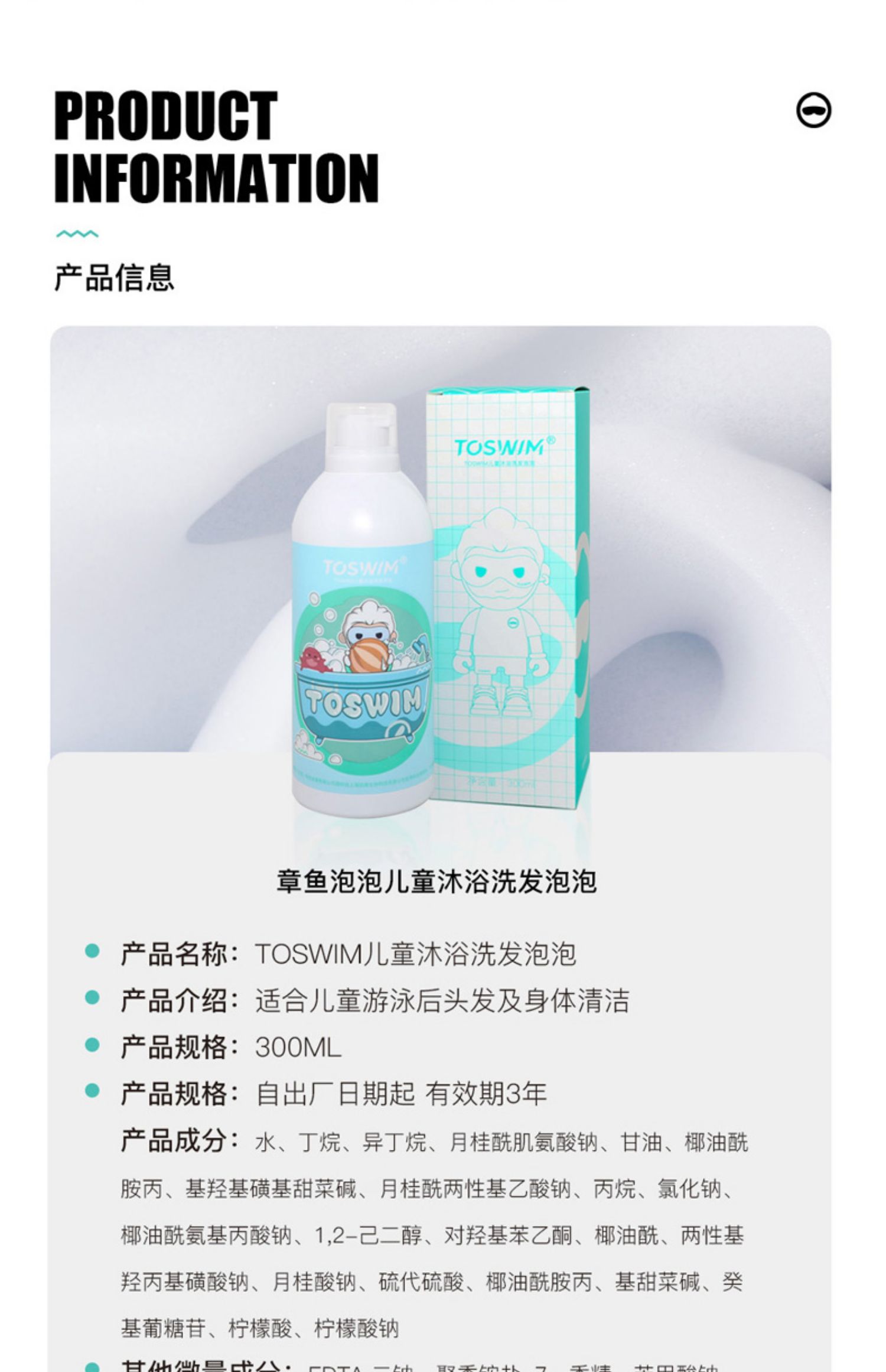 *TOSWIM拓胜儿童游泳专用去氯沐浴洗发露抗氯除氯浴液洗发水二合一装备