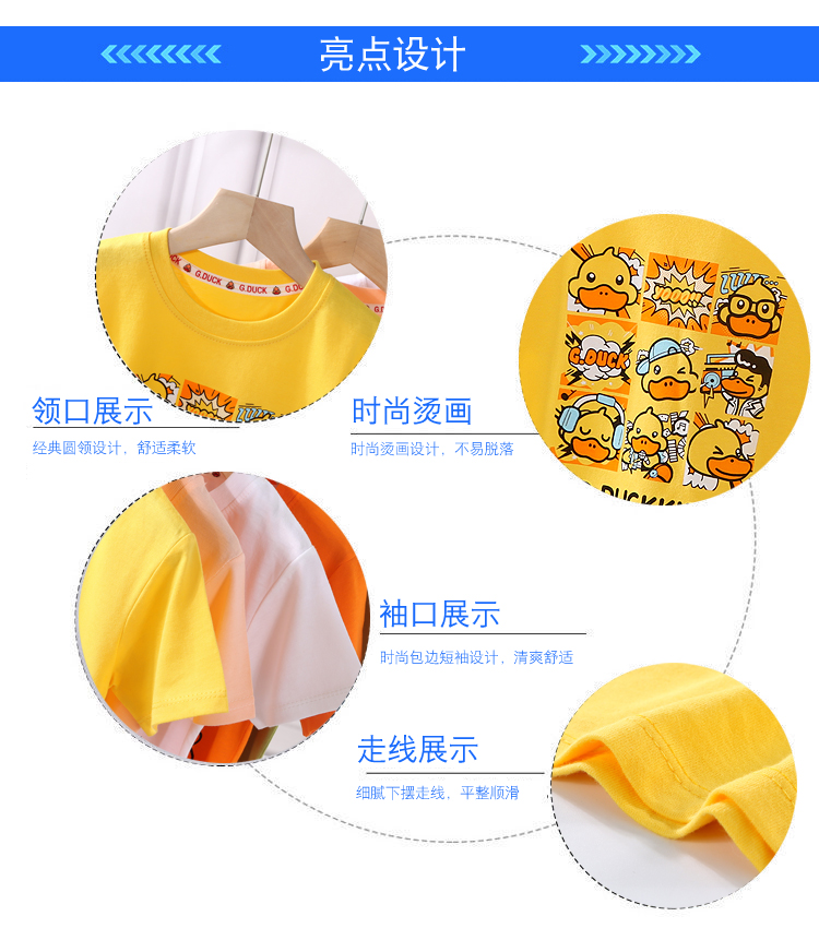 【59.9元任选三件】小黄鸭G.DUCK夏季儿童纯棉T恤男女童短袖薄款
