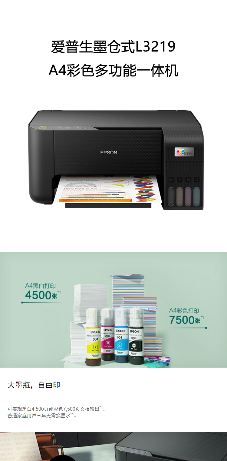爱普生(EPSON)L3219彩色办公家用墨仓式一体机(打印 复印 扫描)
