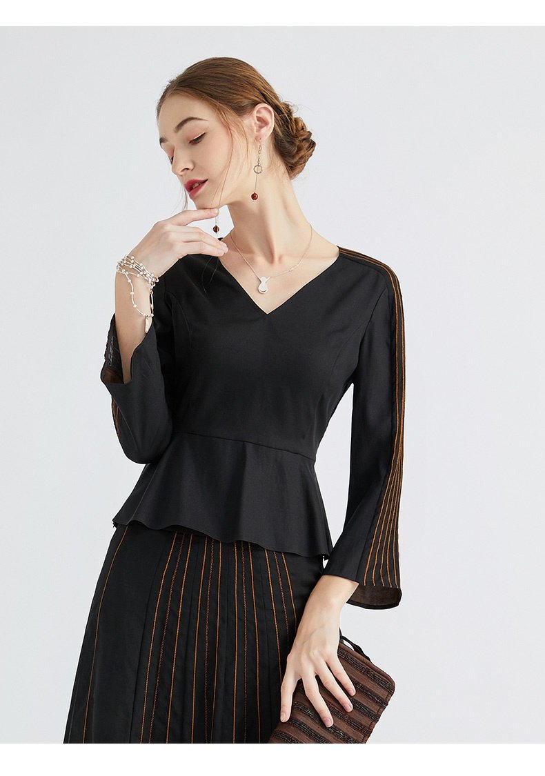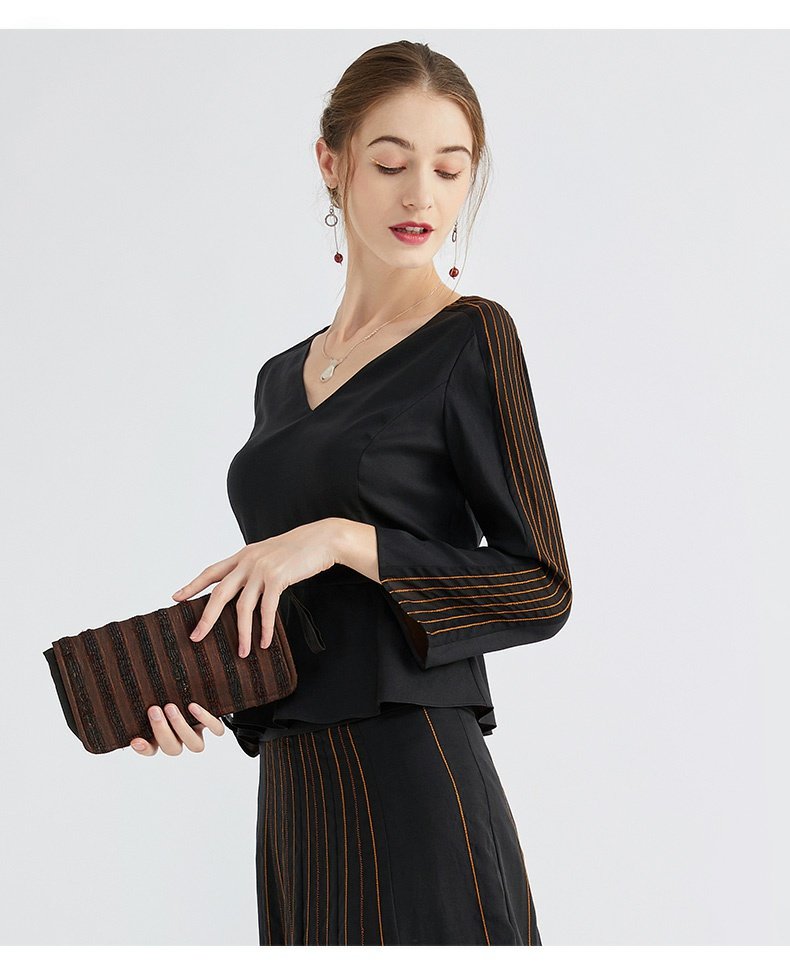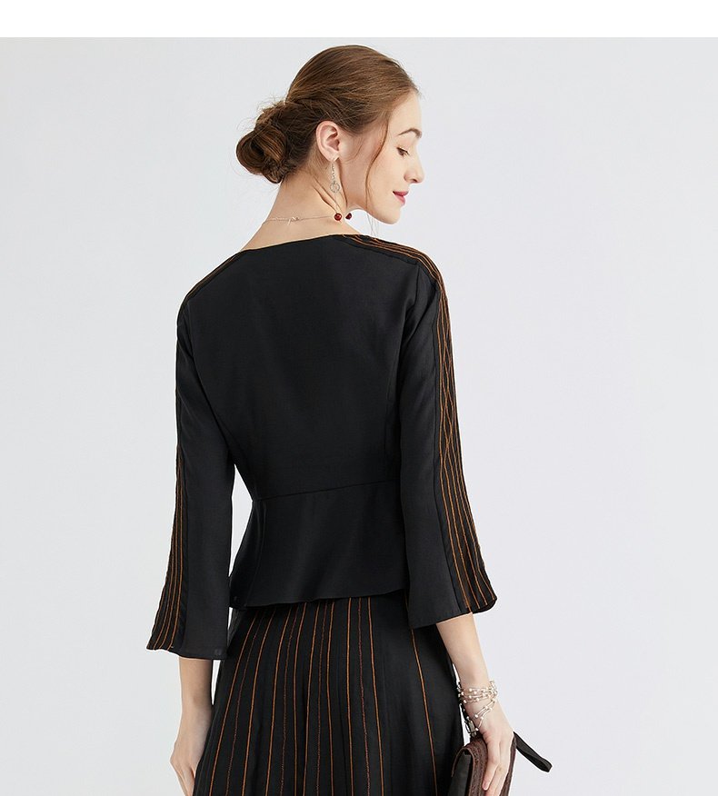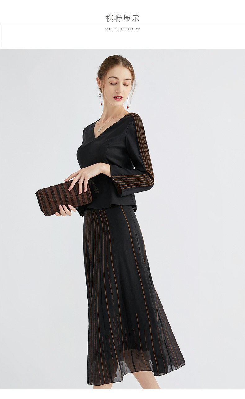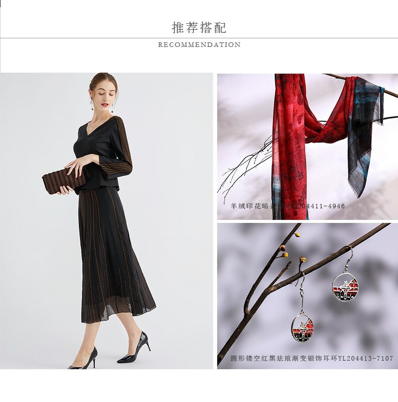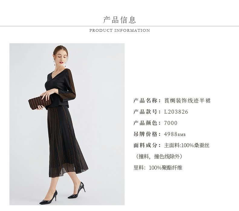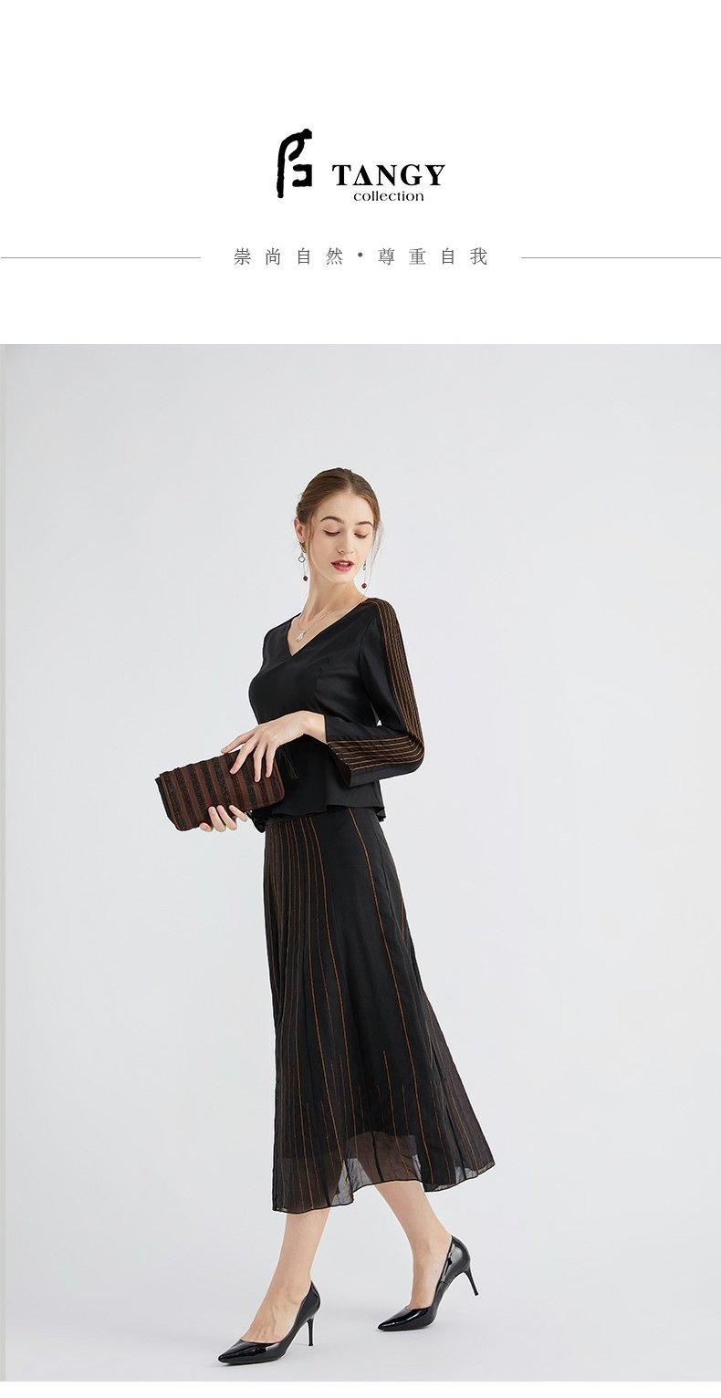 TANGY Collection/天意精品春秋新款林隐列莨绸装饰线迹半身裙