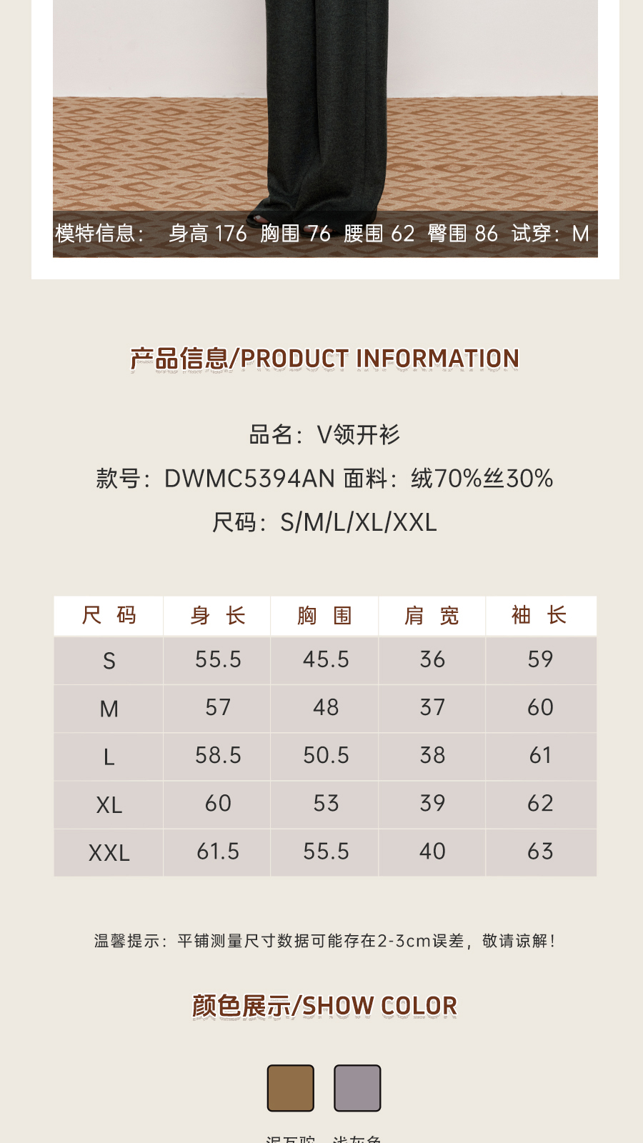 东黎 • 我不被驯化 山羊绒桑蚕丝女士秋季V领开衫 5394
