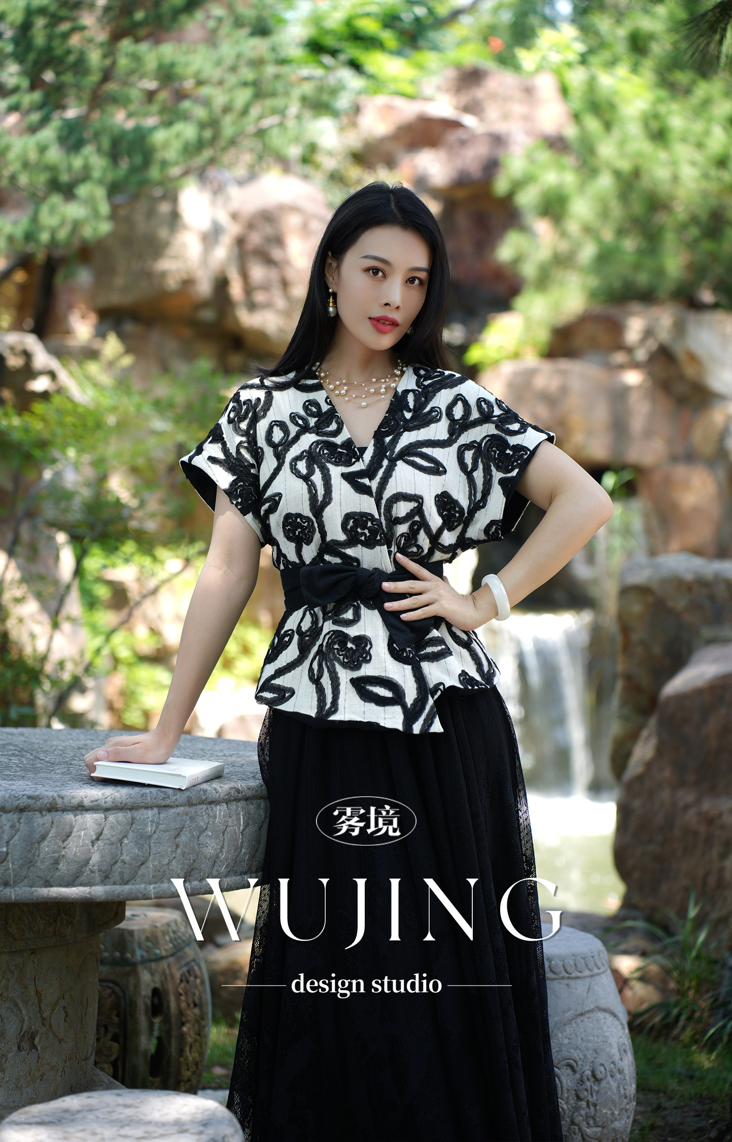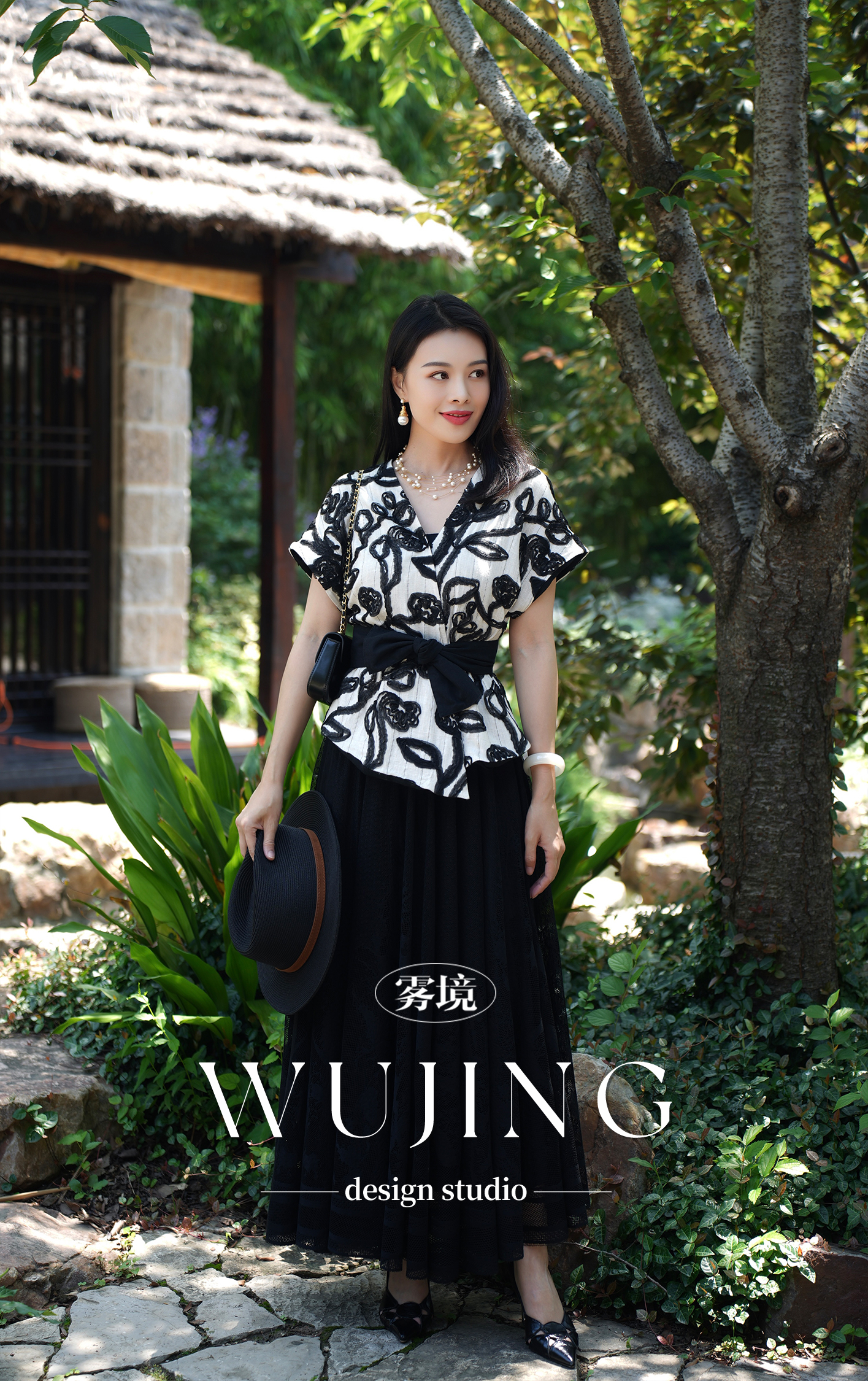 20177 鸢尾花开系列恬雅天丝缎印花上衣 雾境