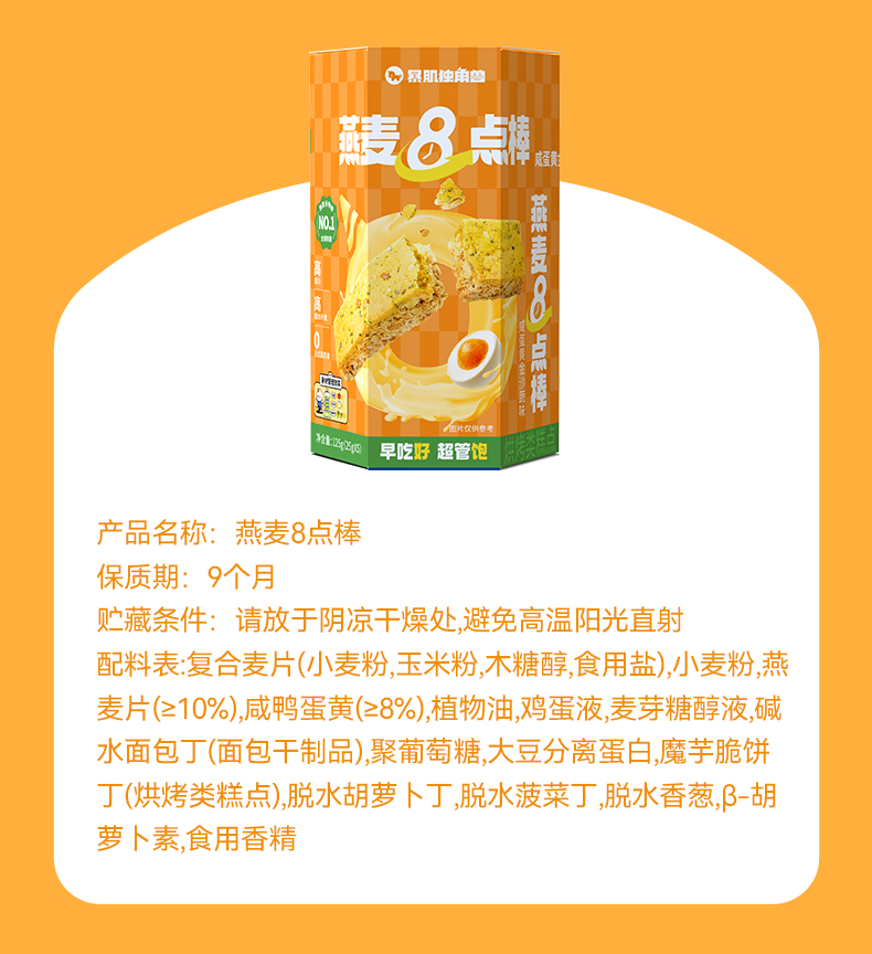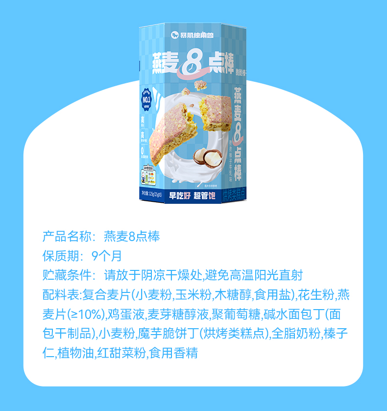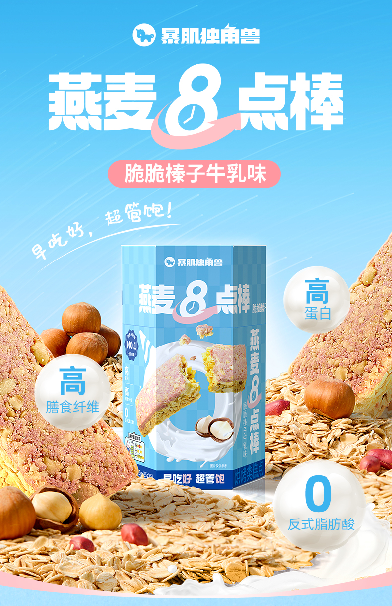 暴肌独角兽燕麦8点棒谷物蛋白棒健身早餐能量脆零食品饼干代餐棒