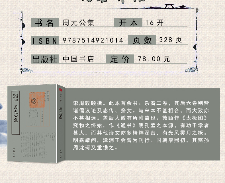 【正版】 周元公集宋周敦颐撰此本首余书杂着二卷其后六卷则皆诸儒议论及志传祭文与宋本不甚相合而大致亦不甚相远