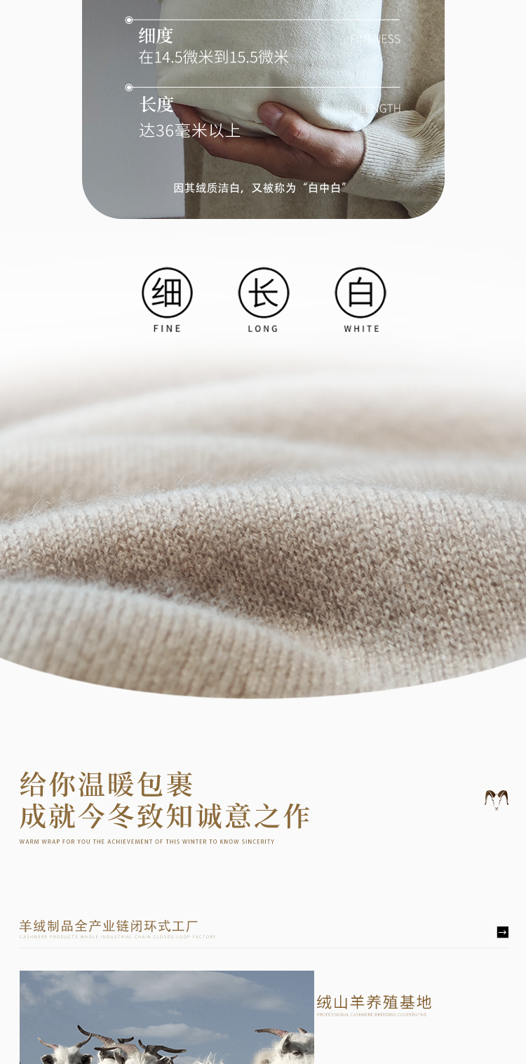 东黎羊绒是赤峰东荣集团自主品牌,自有牧场/羊绒制品全产业链优势,实现了羊绒从“牧场”到“商场”的华丽转变。