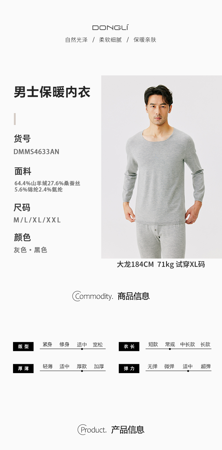 东黎 • 丝羊绒男士秋冬圆领保暖内衣长袖 4633