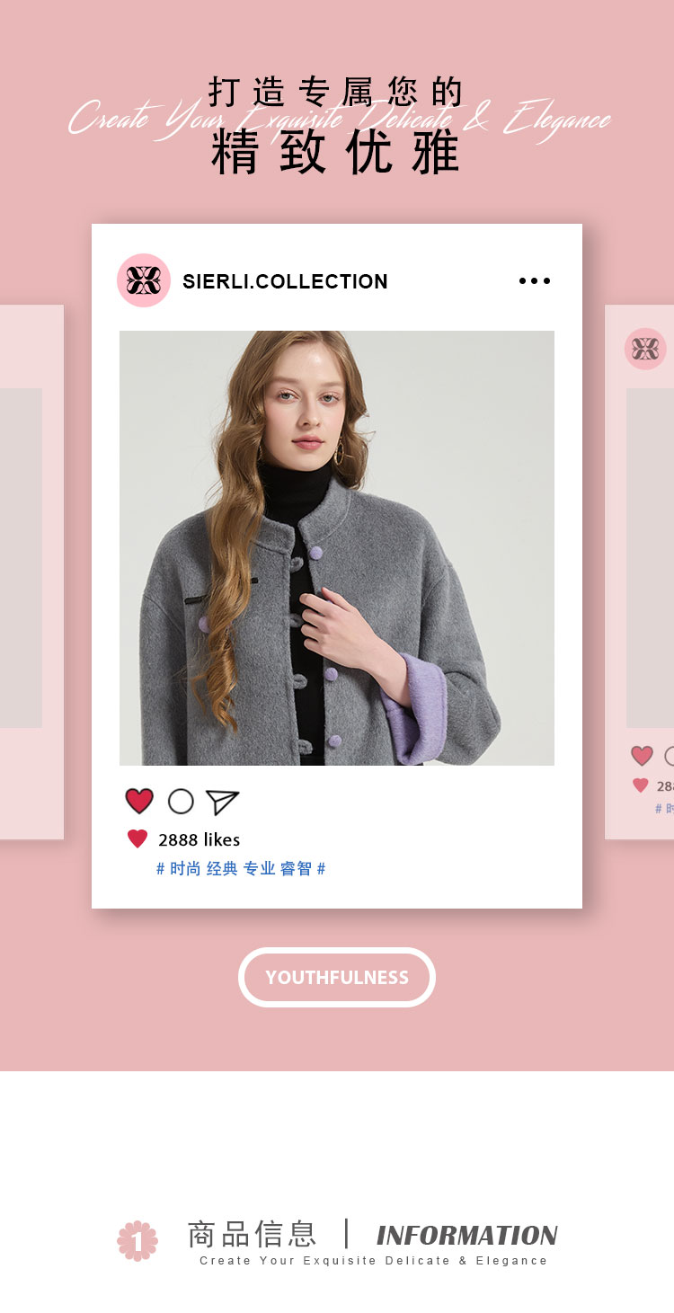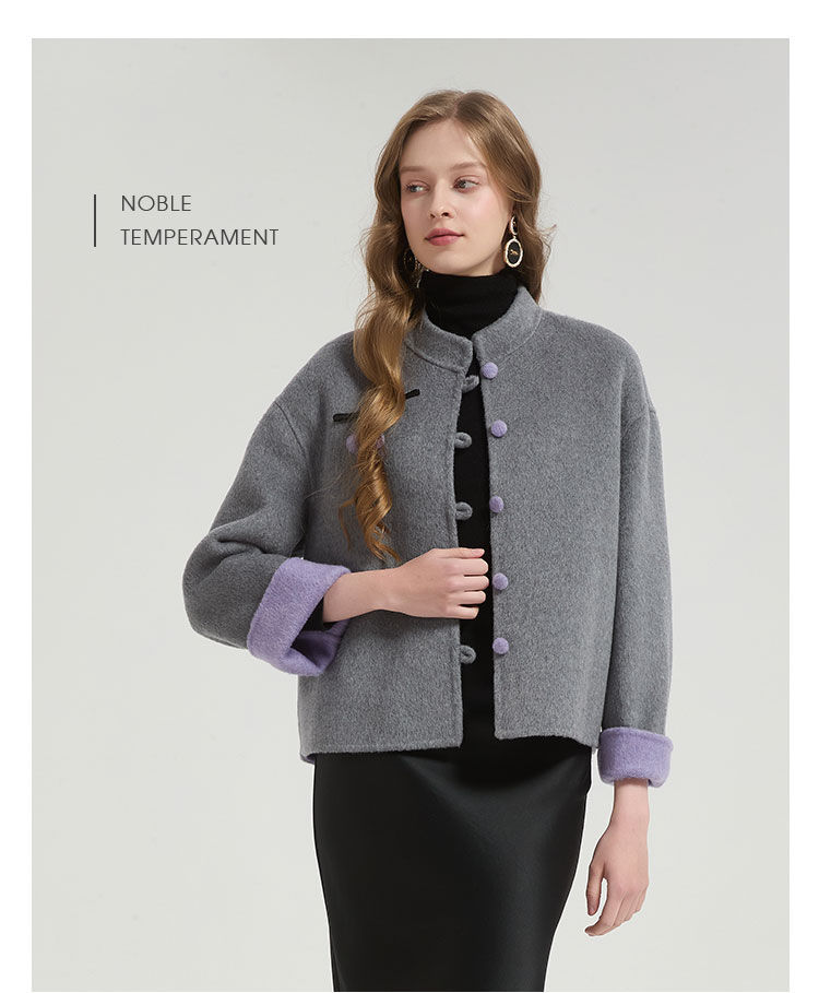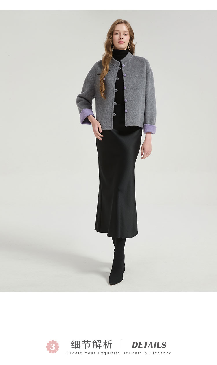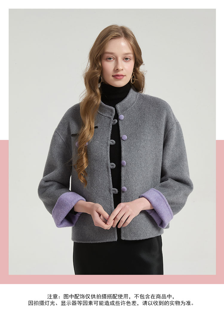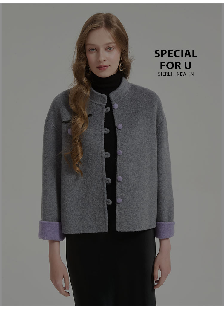 QH970斯尔丽2025新款国风手工樱桃小立领双面呢短大衣秋冬款羊毛大衣