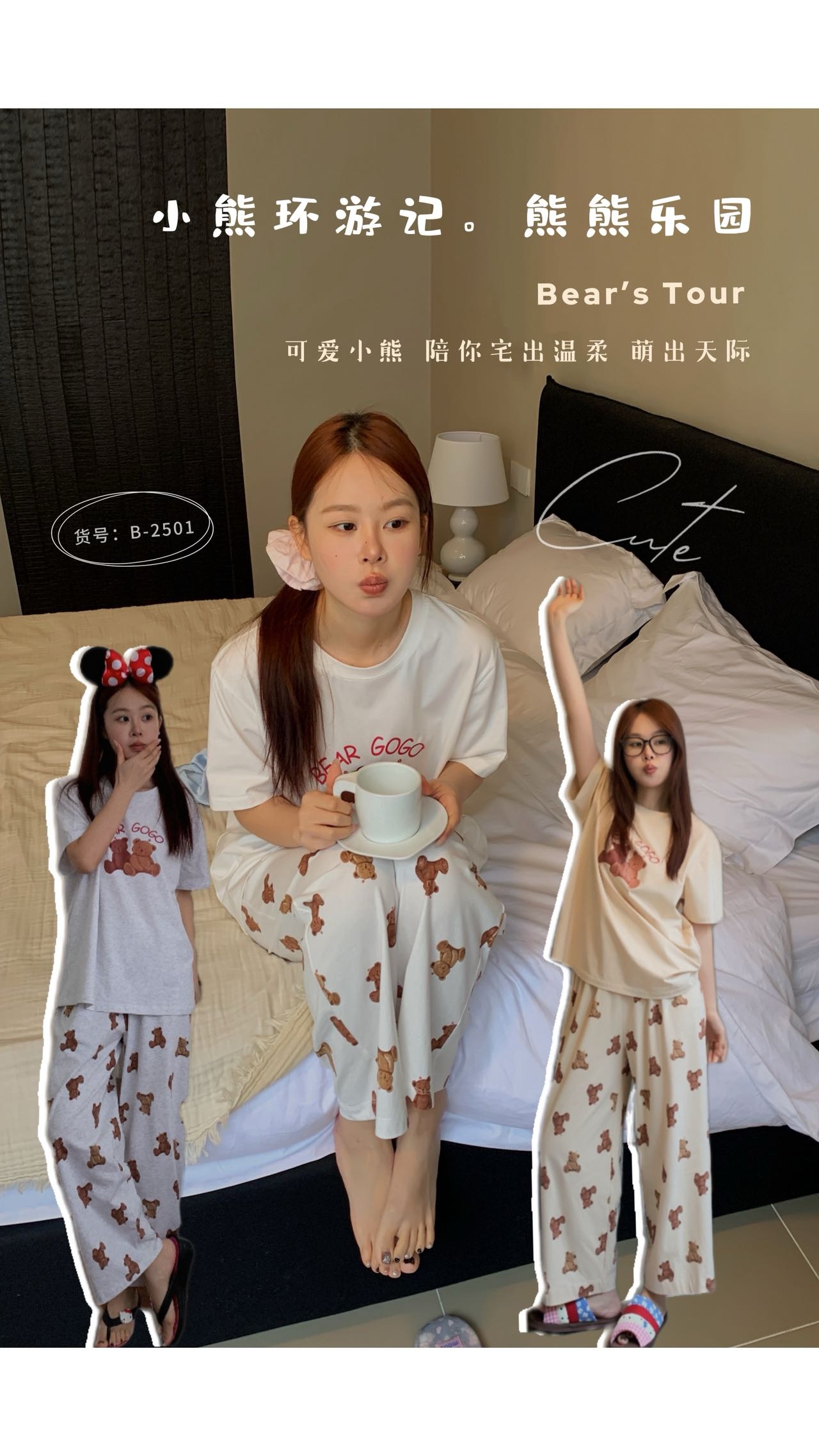 老米优品🎈3-5天! 《小熊环游记🐻冰瓷棉熊熊乐园家居服套装》轻,薄,软,可爱出圈!!TZ250414A