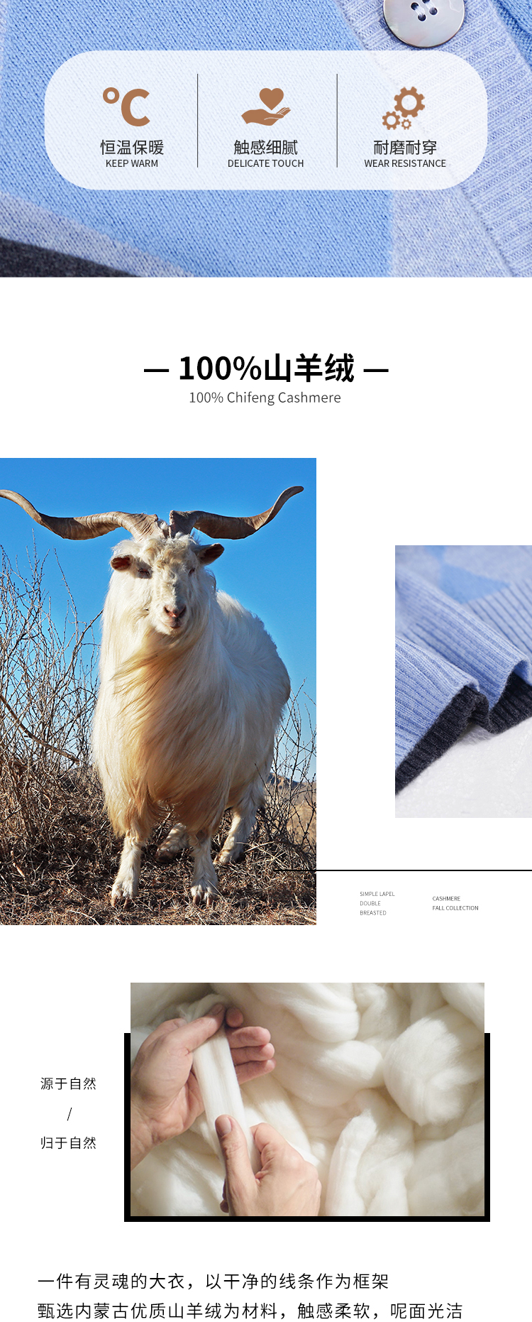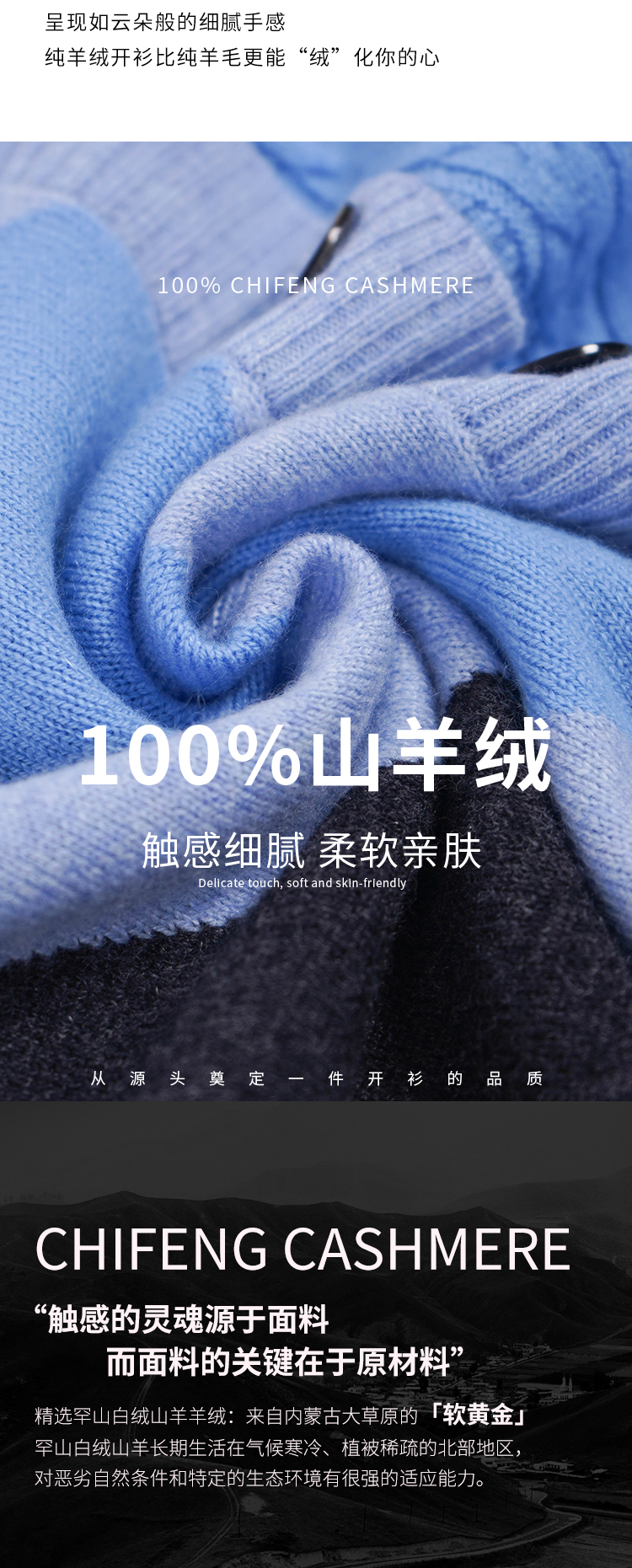 东黎羊绒是赤峰东荣集团自主品牌,自有牧场/羊绒制品全产业链优势,实现了羊绒从“牧场”到“商场”的华丽转变。