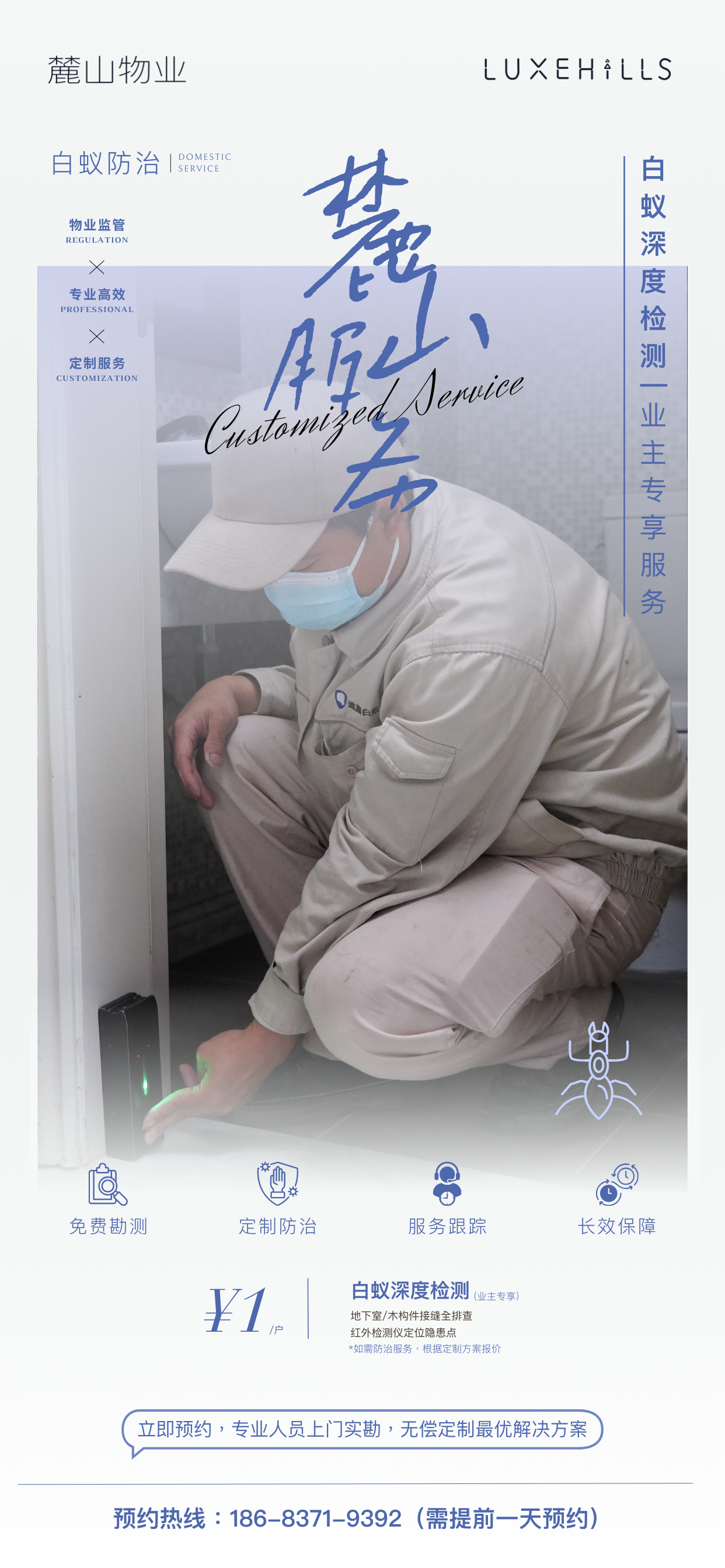 【业主专享】白蚁危害大! 1元占位 免费上门探测!把危害遏制在萌发初始