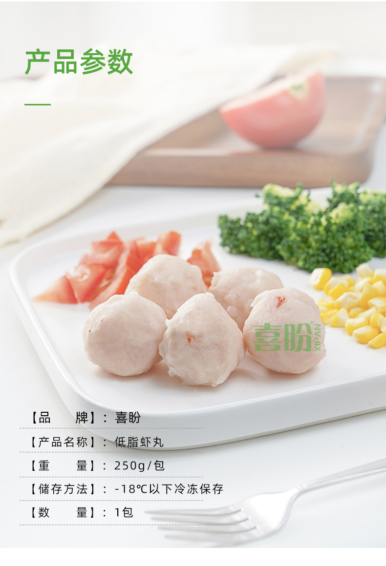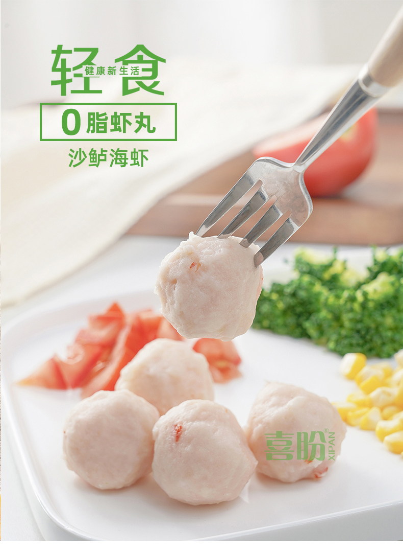 喜盼0脂肪虾丸250g健身食品低脂代餐无油高蛋白轻食热量卡脂减