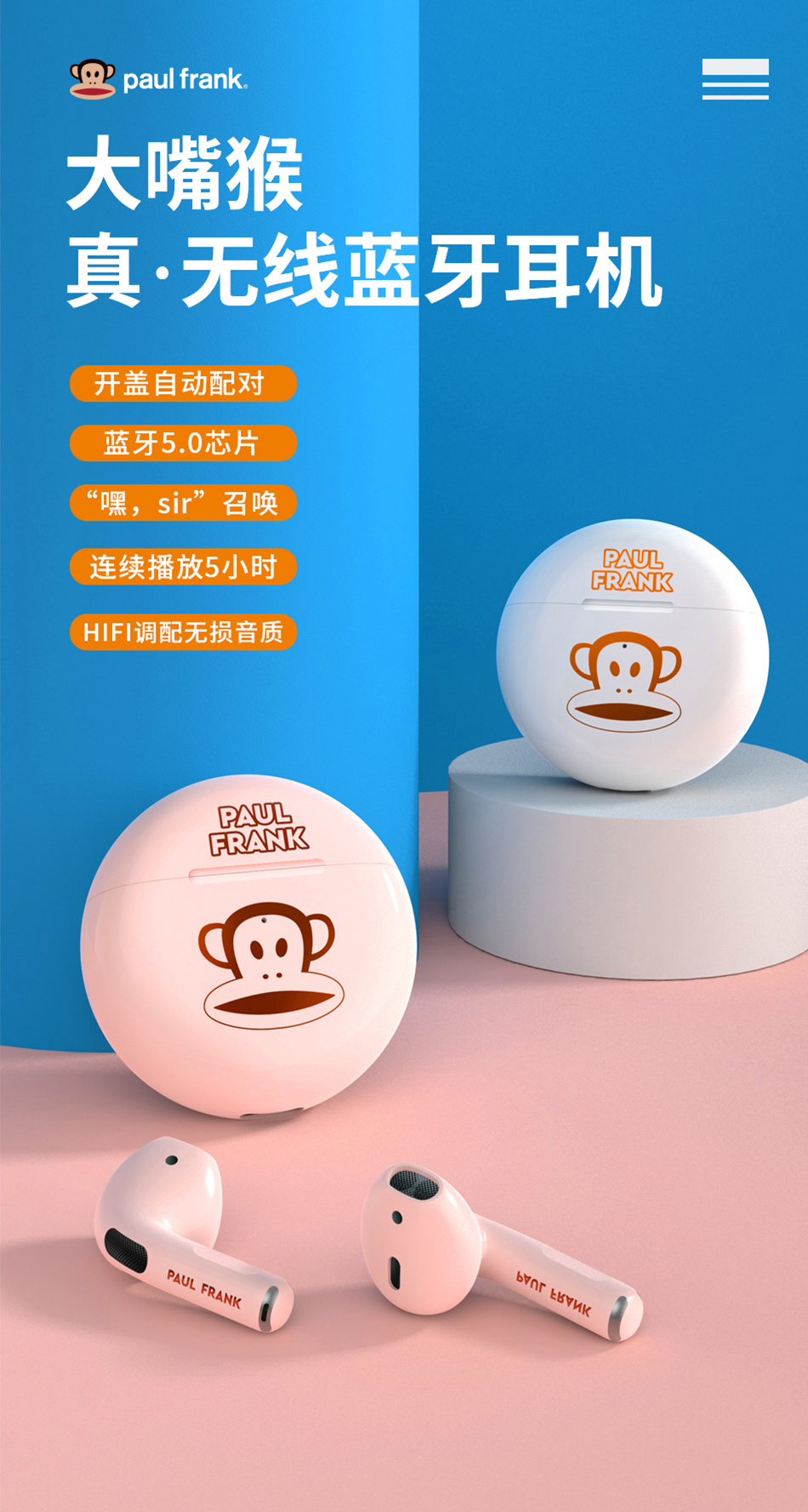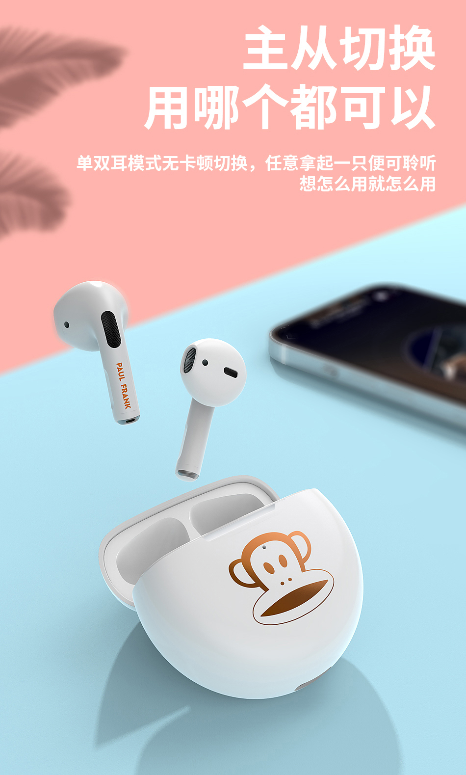 真无线蓝牙耳机大嘴猴正版授权适用于苹果安卓华为半入耳式iphone12华为小米通用2021新款情侣款运动游戏