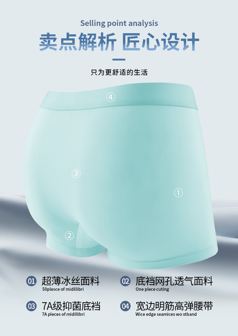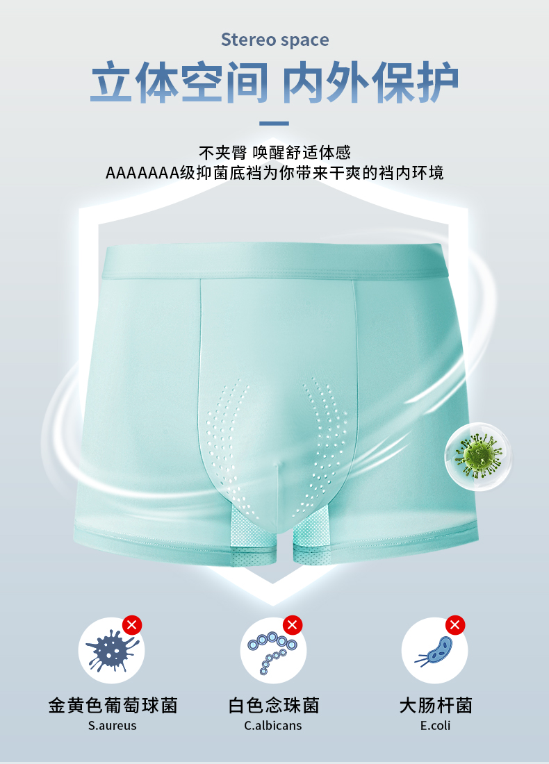 草本初色轻氧冰丝透气孔7抗菌男裤719款三条装