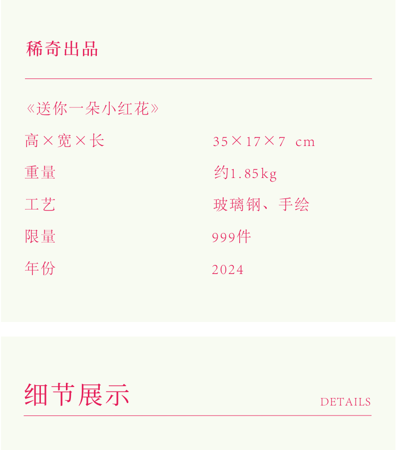 稀奇艺术 送你一朵小红花 桌面治愈系摆件爱心造型雕塑礼物