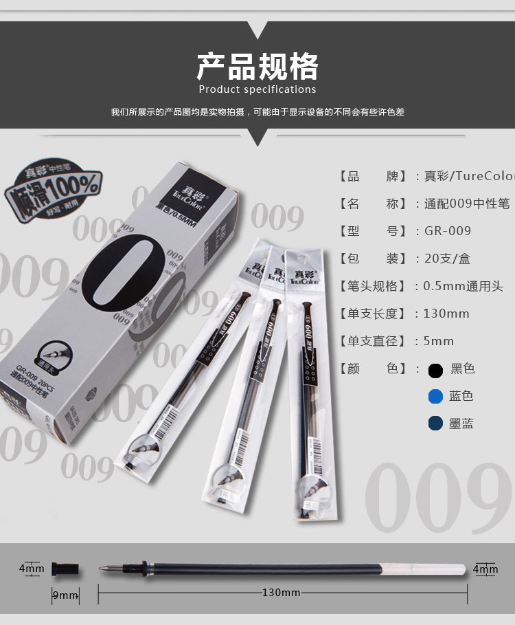 真彩中性芯/GR-009/红色办公学生考试学习用品替芯笔芯