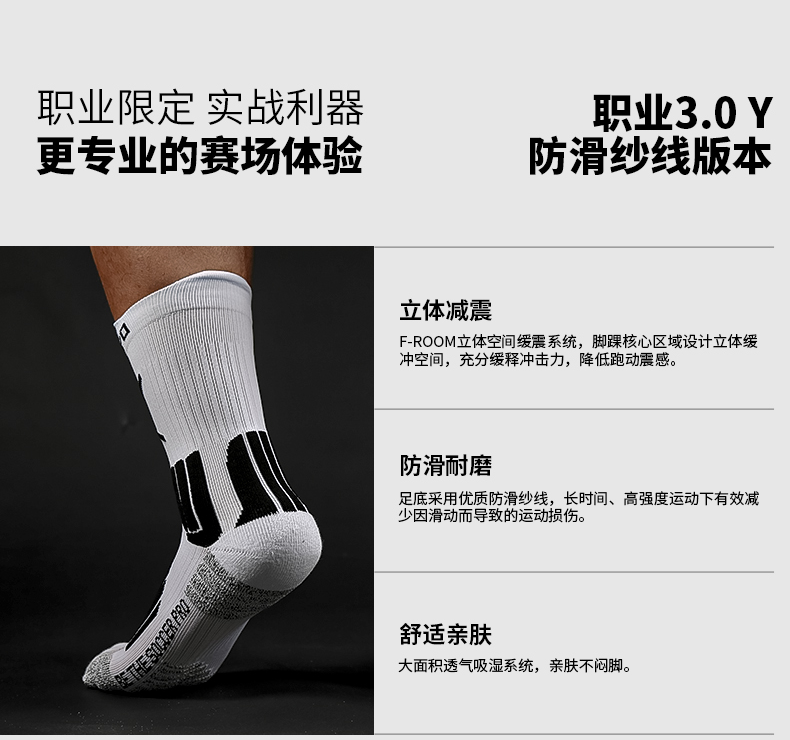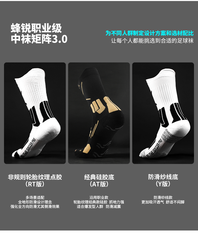 【职业款3.0】蜂锐足球袜职业款3.0硅胶防滑足球中袜耐磨透气训练袜男