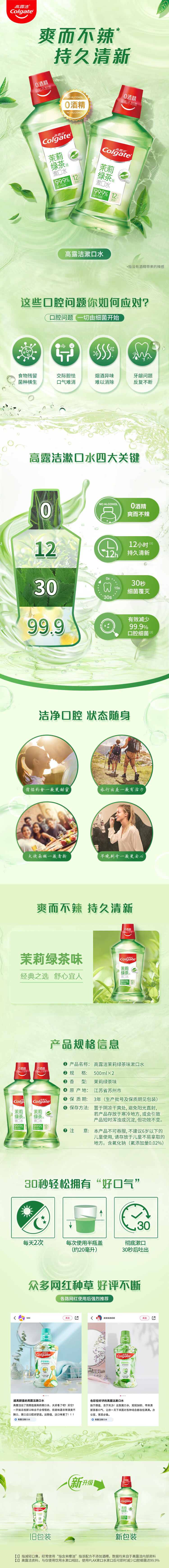 高露洁 茉莉绿茶味漱口水500ml*2/组