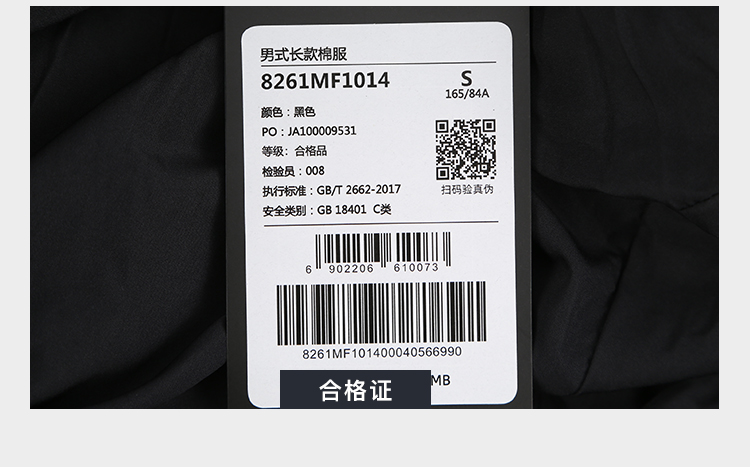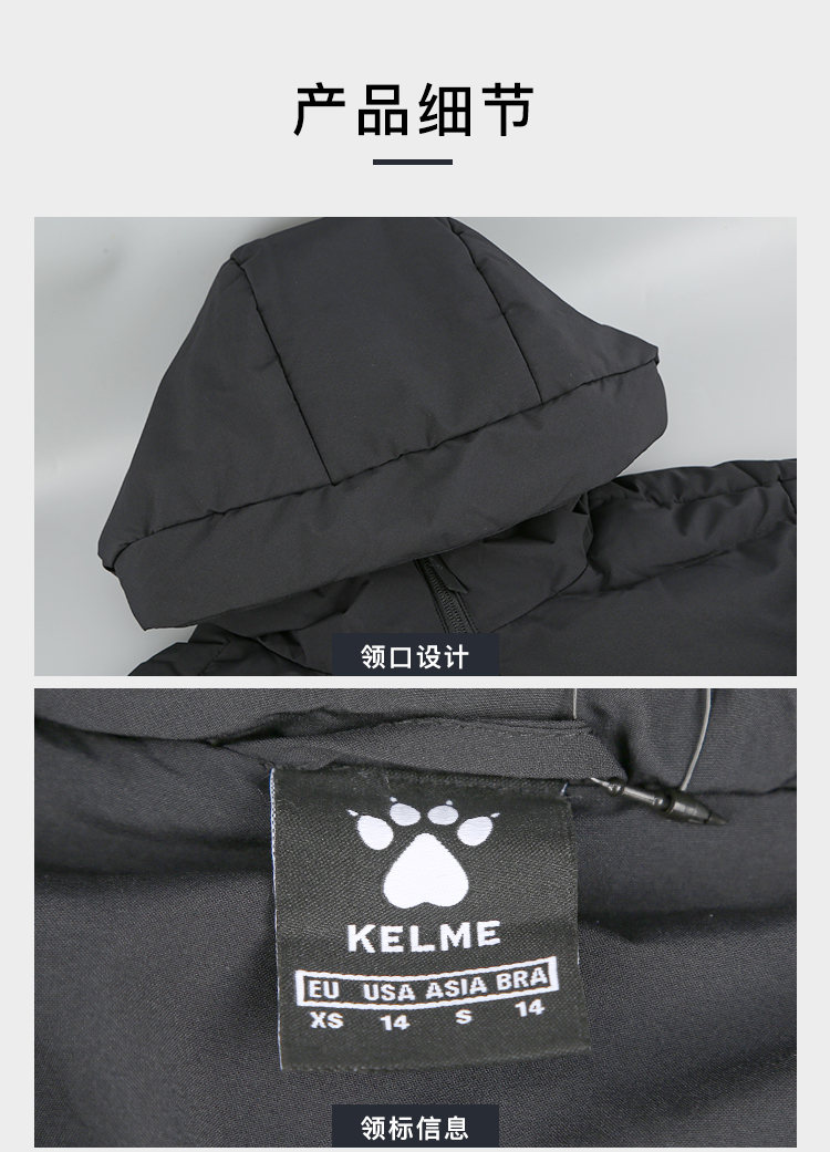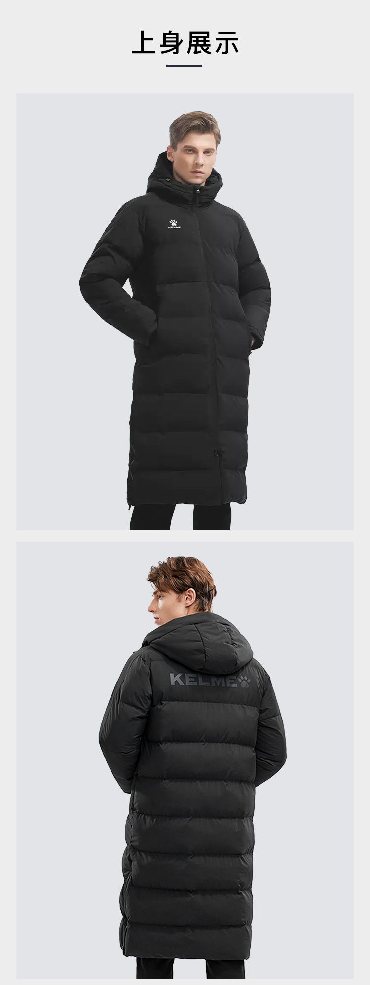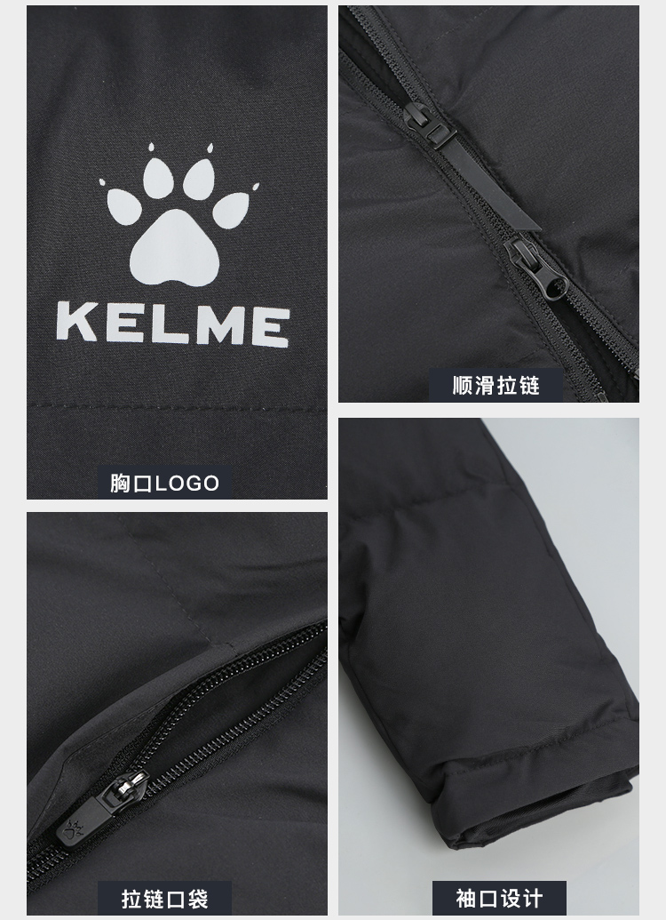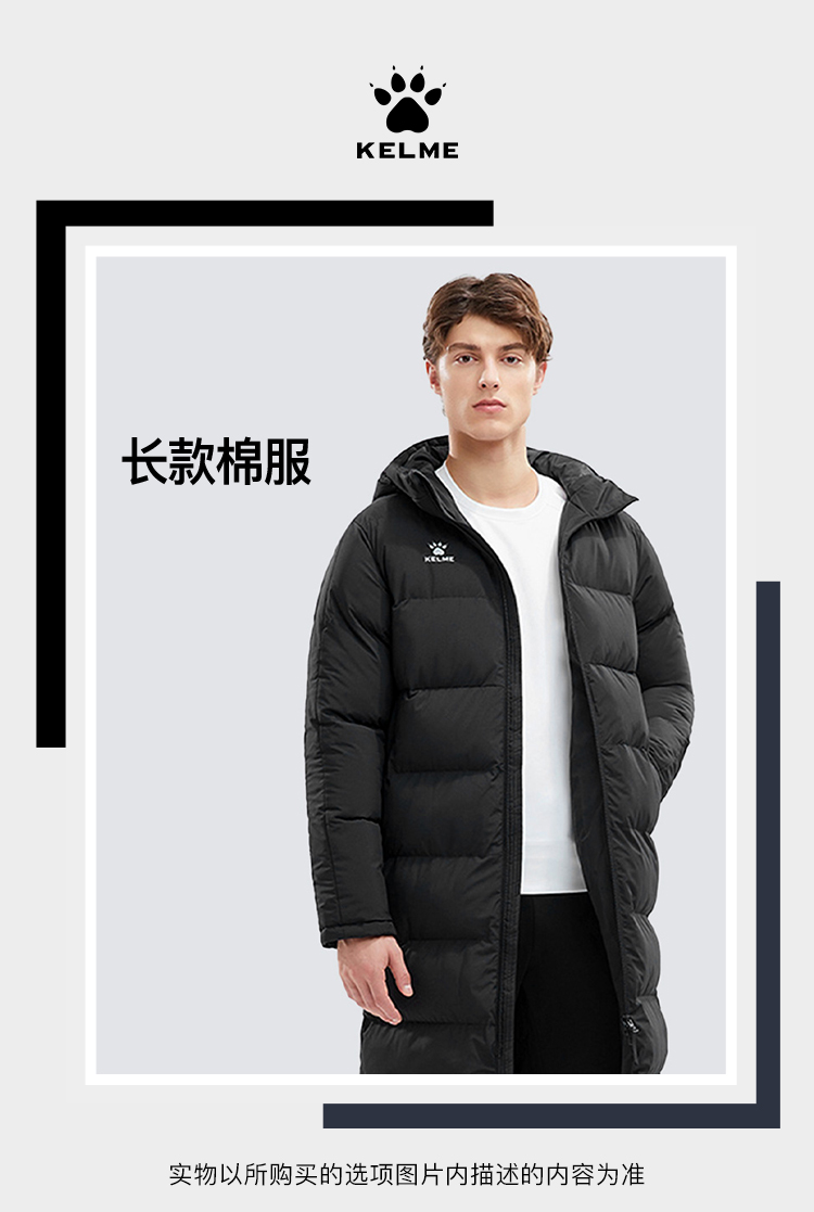 小李子KELME卡尔美足球运动训练长款棉服成人男8261MF1014000