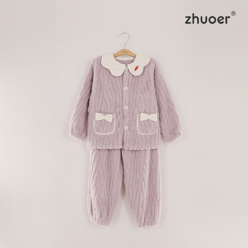 101450172卓儿4-11岁女童秋冬可爱绒绒家居服套装(珊瑚绒)(110-160尺码可选)