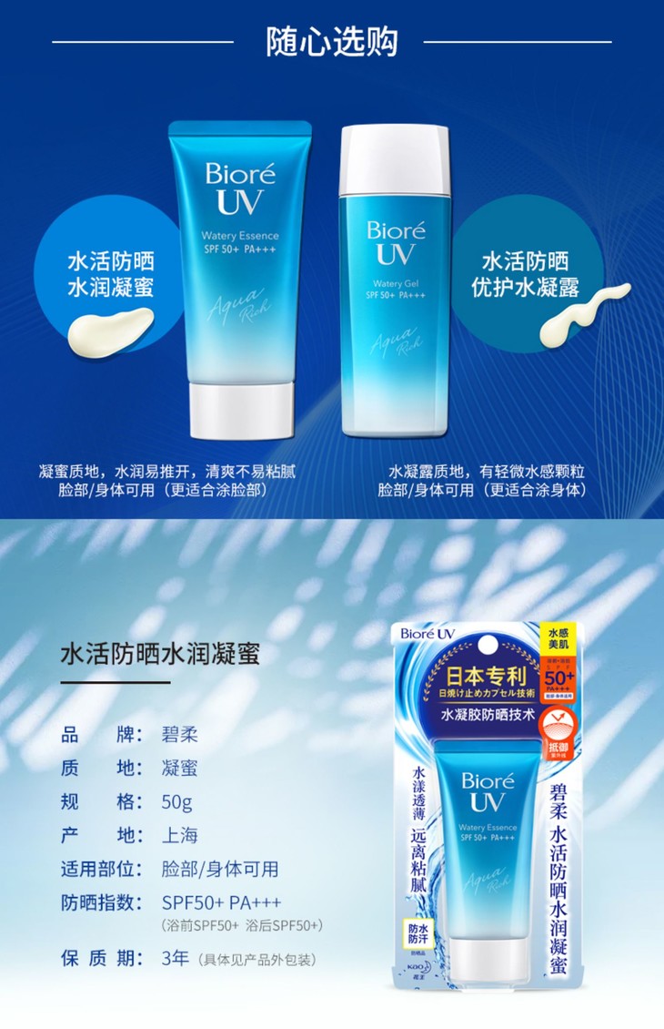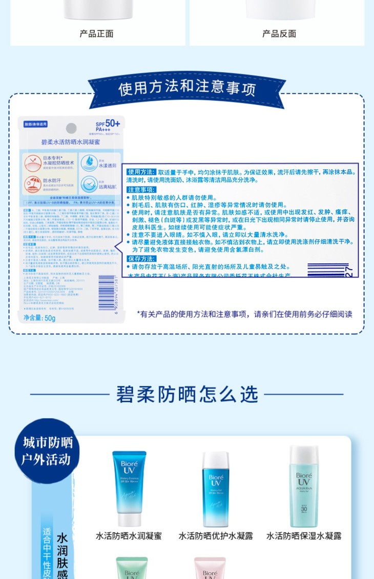 Biore碧柔防晒霜70g/70ml 清爽水感持久隔离面部身体