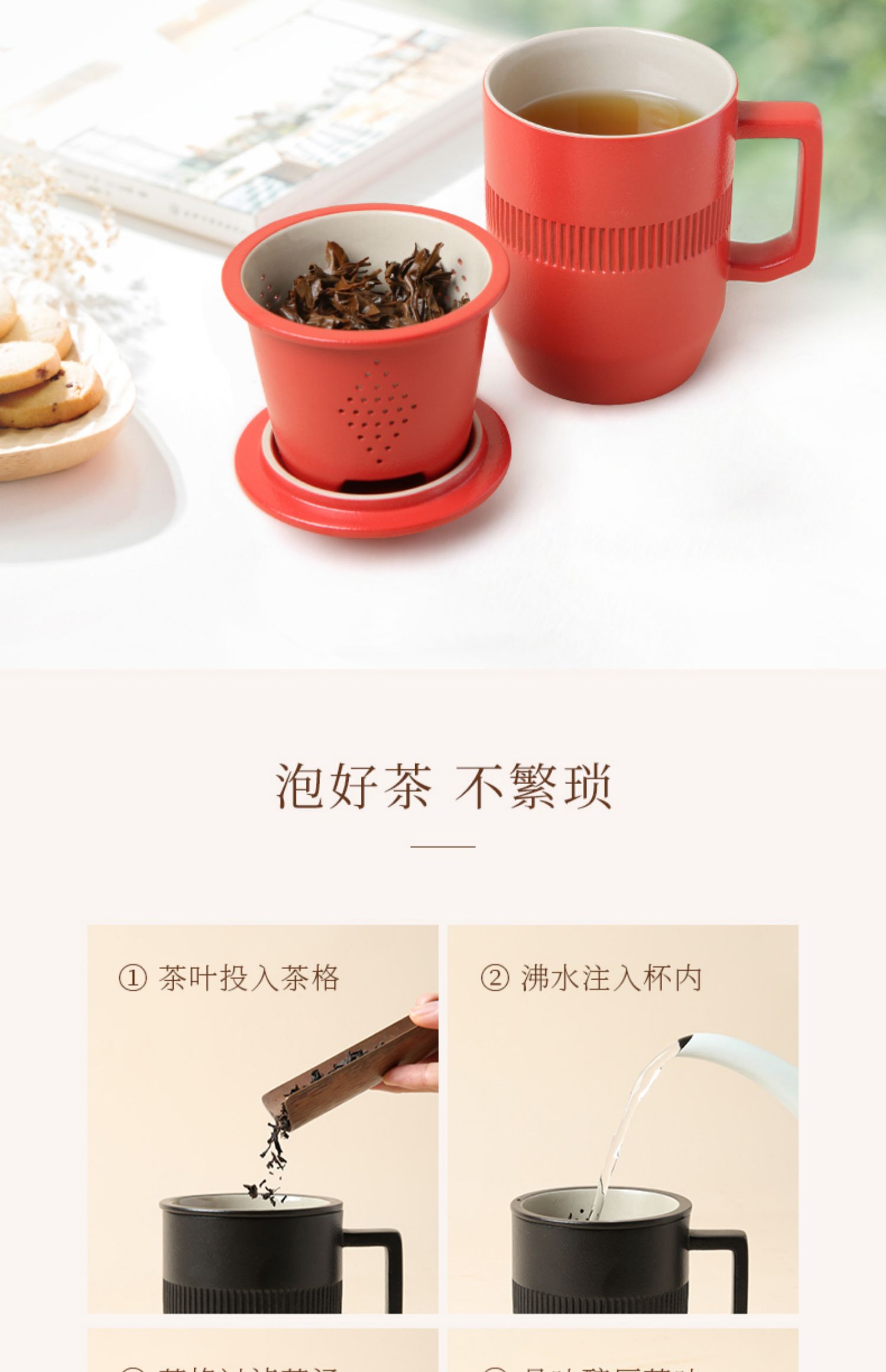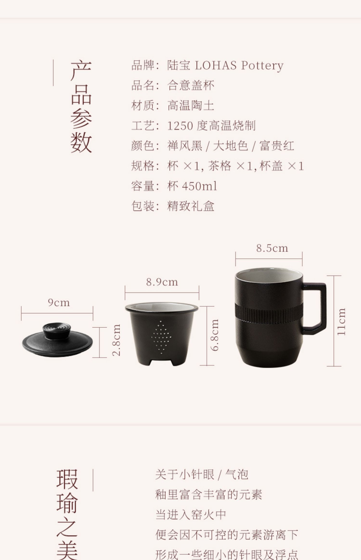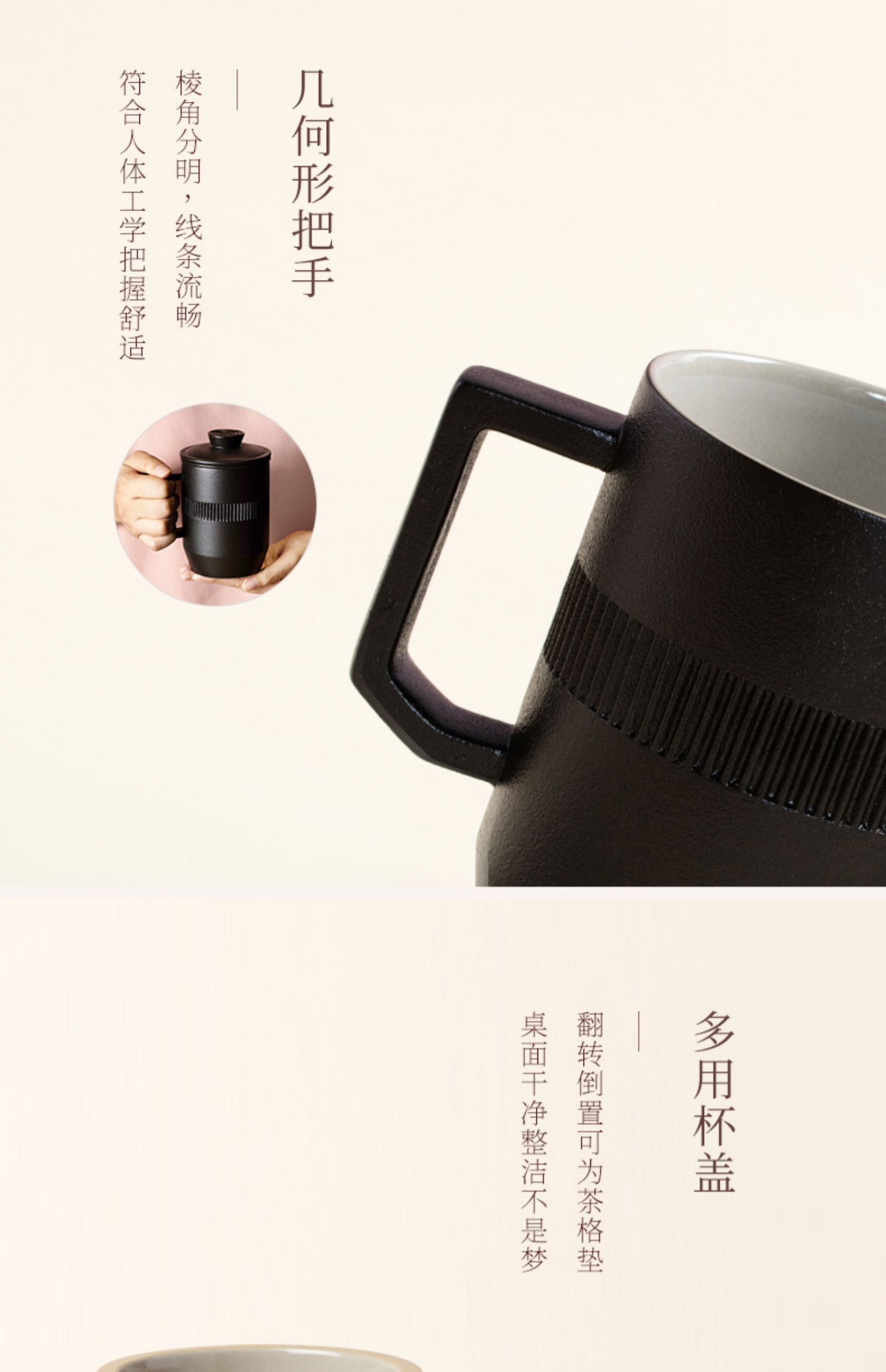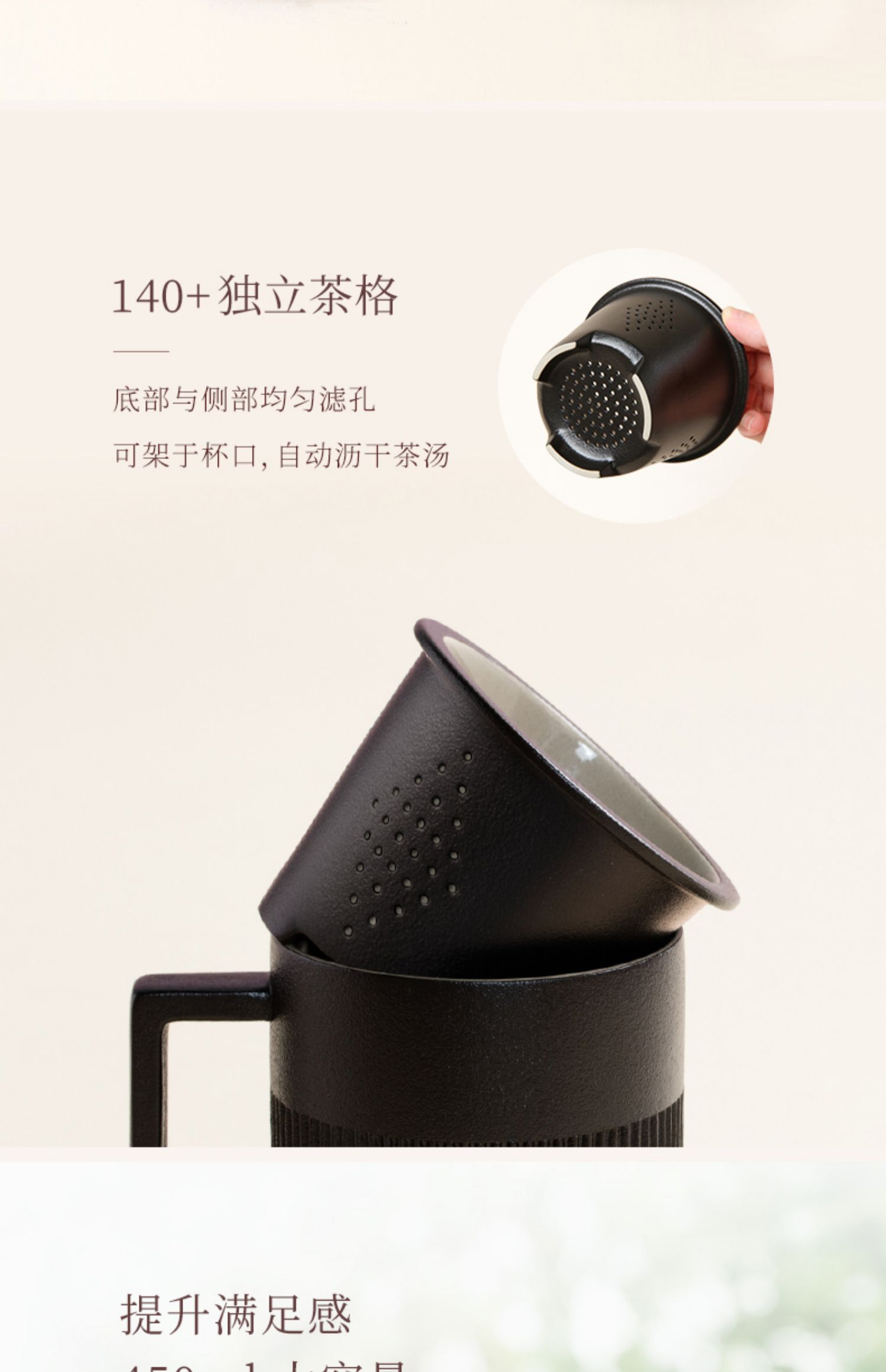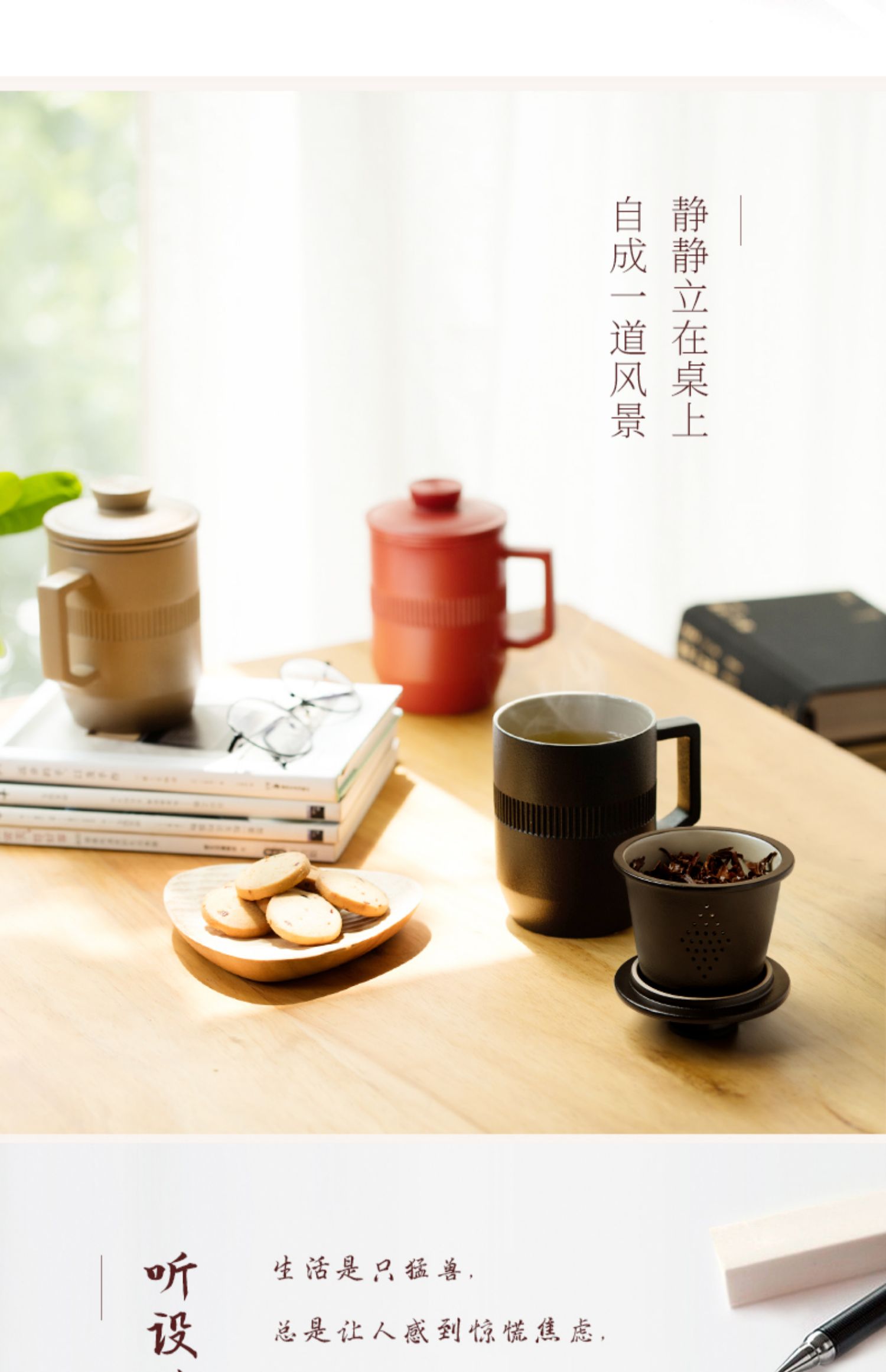 陆宝陶瓷茶杯男办公室泡茶杯合意盖杯茶水分离喝水杯子大容量水杯