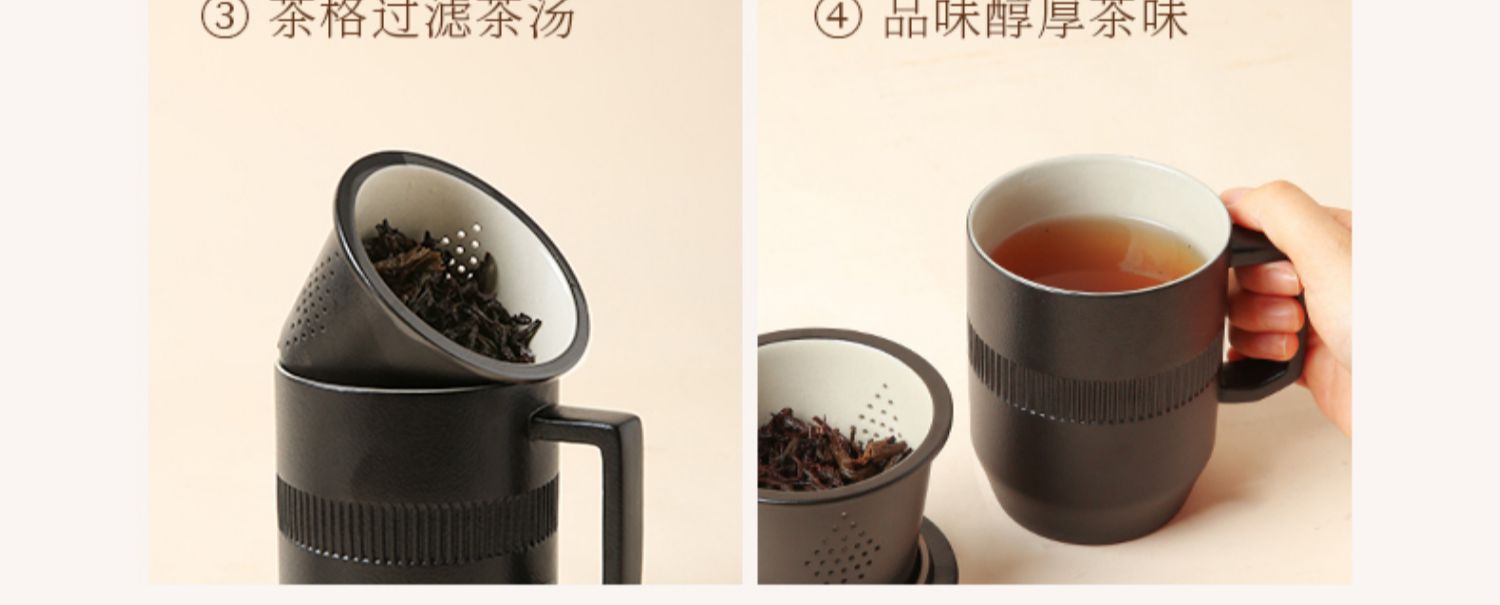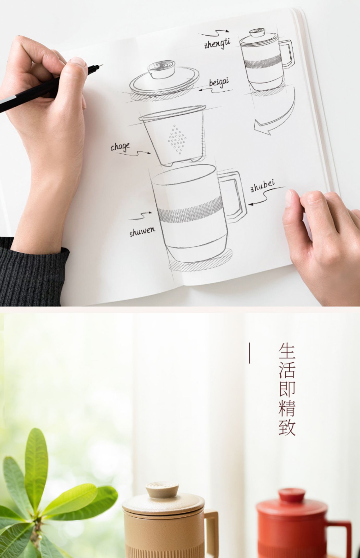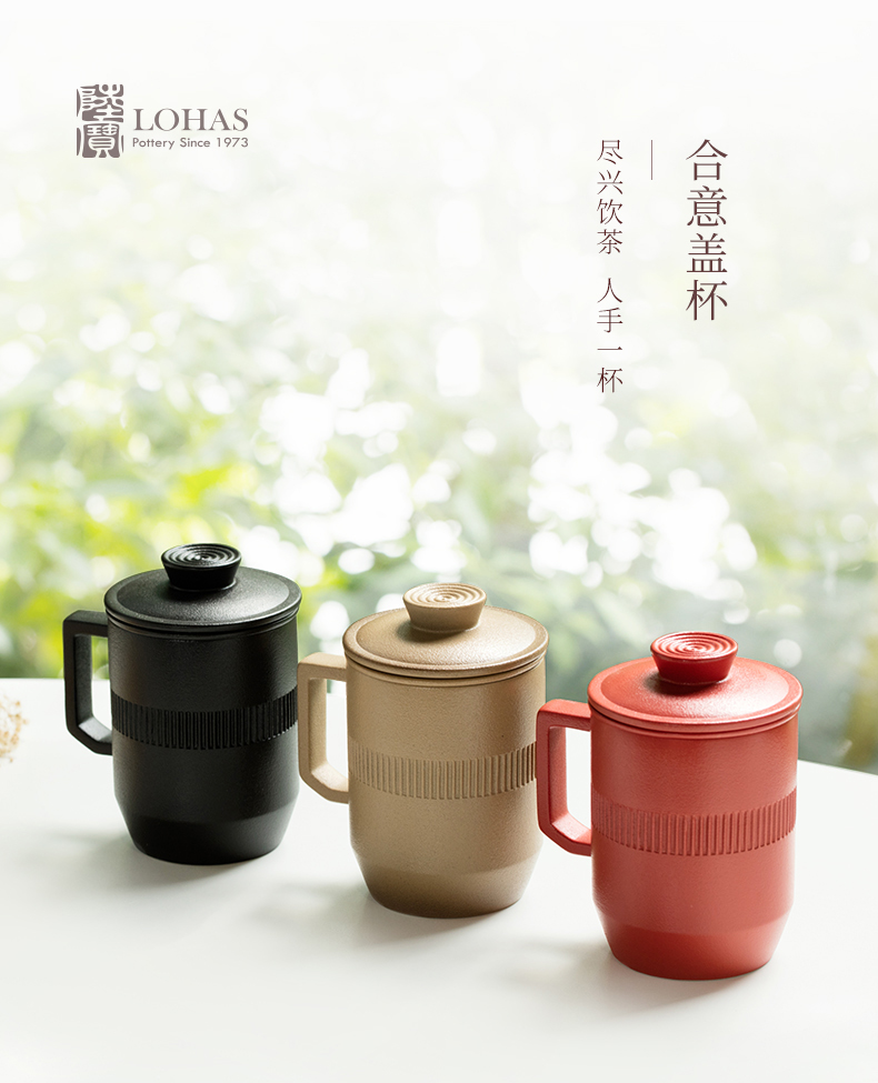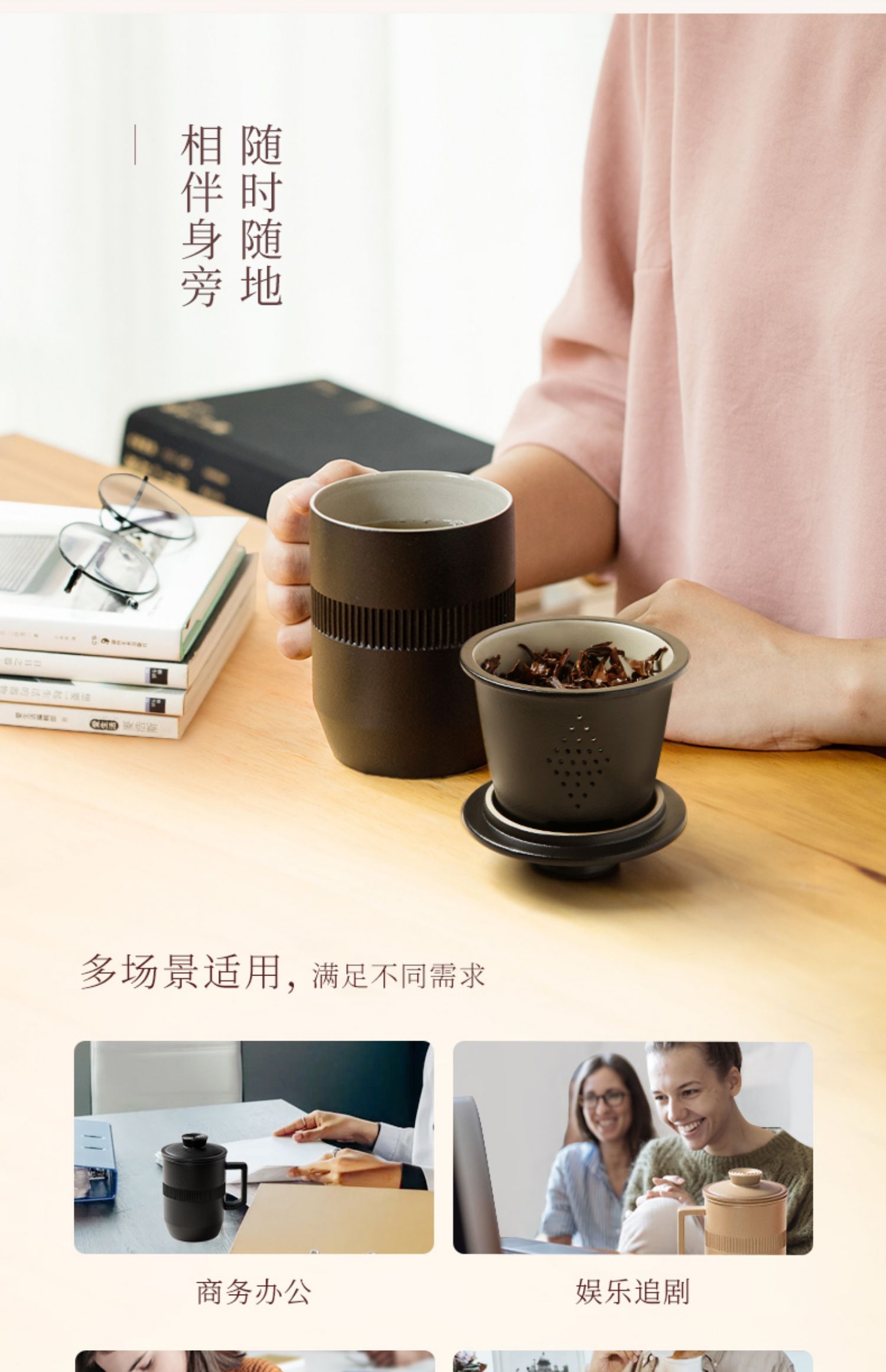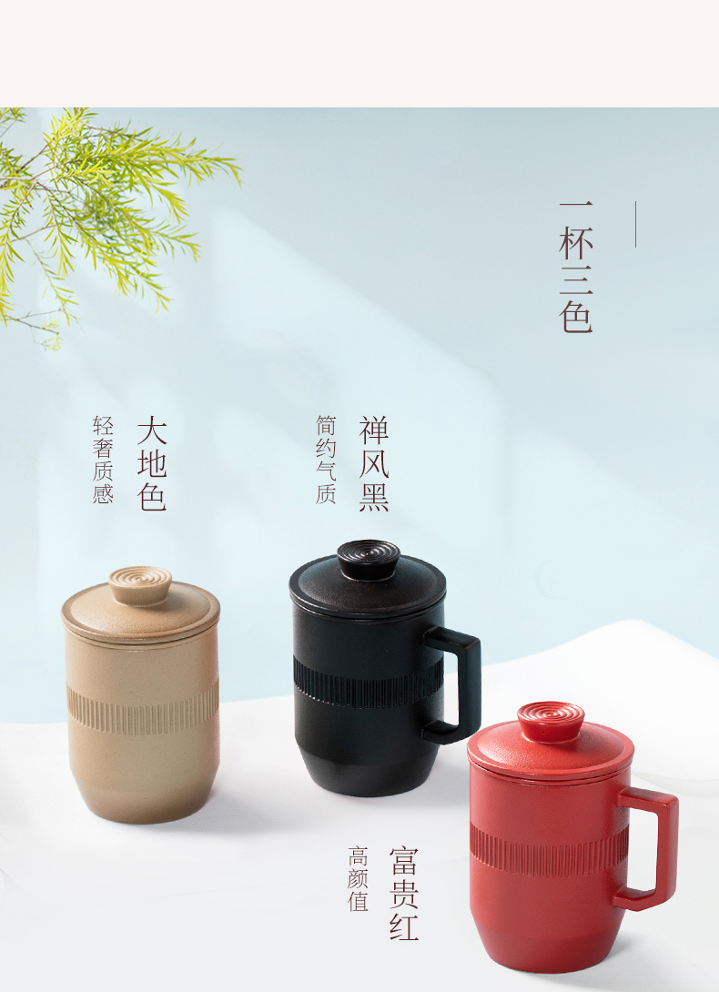 陆宝陶瓷茶杯男办公室泡茶杯合意盖杯茶水分离喝水杯子大容量水杯