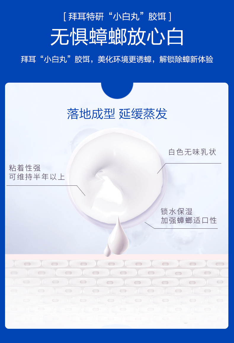 3、产品是小白点,干净卫生无污染,亲注意打扫的时候不要清理药物,点一次药可以长达半年杀蟑防蟑啦