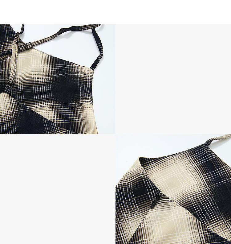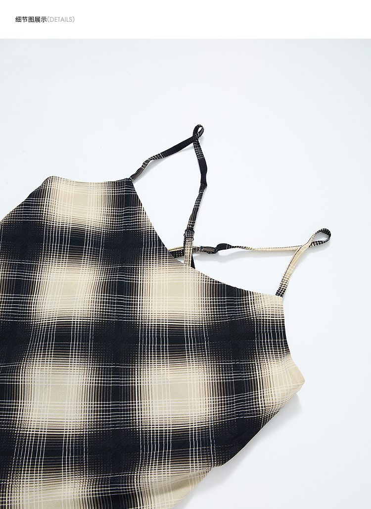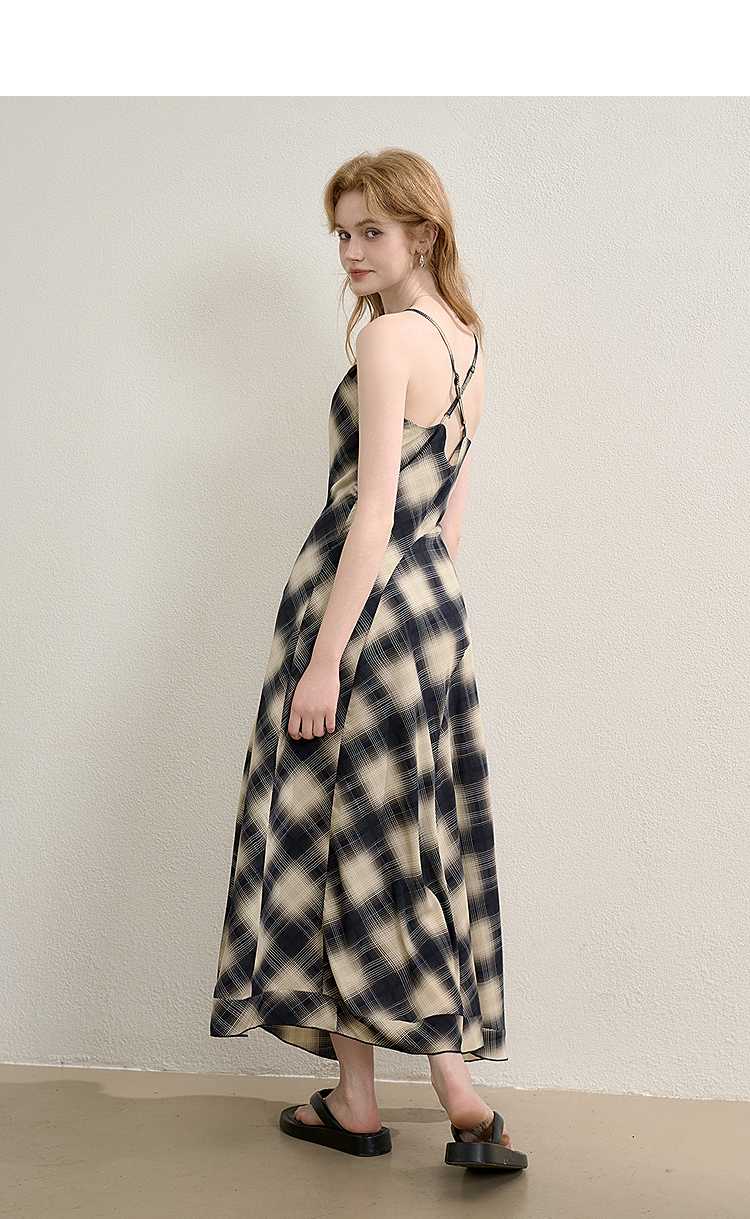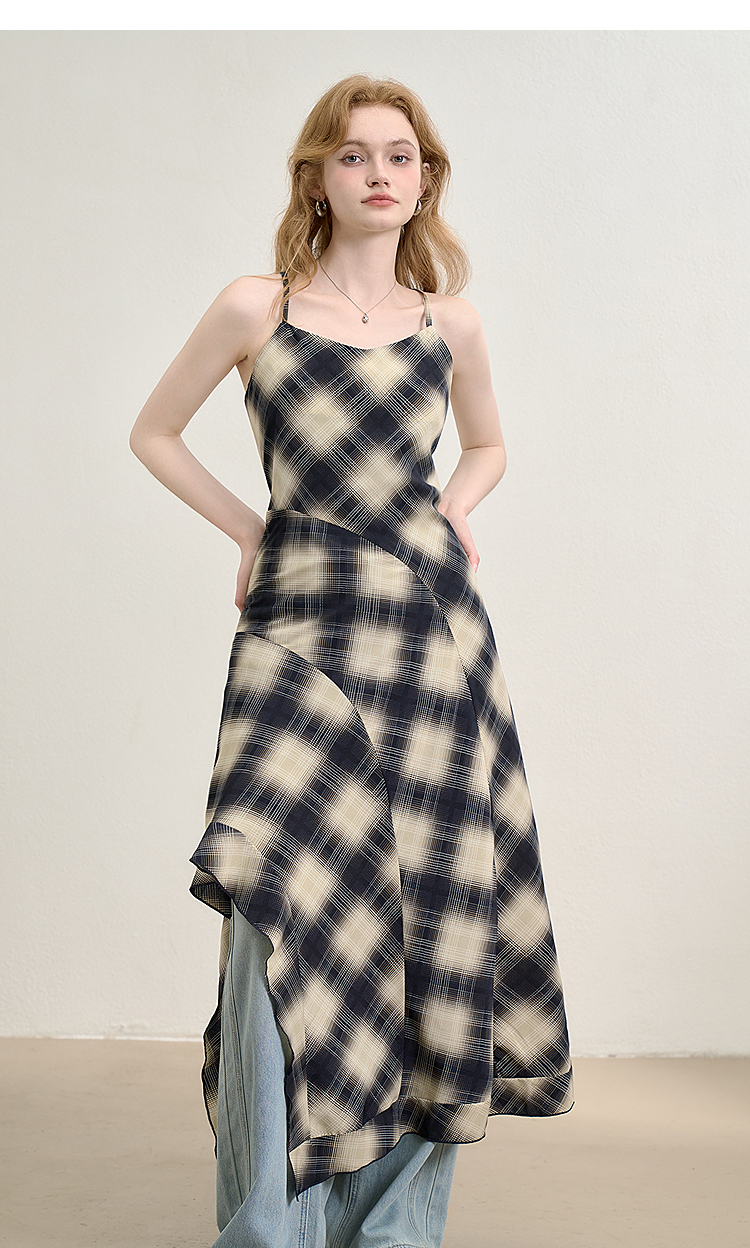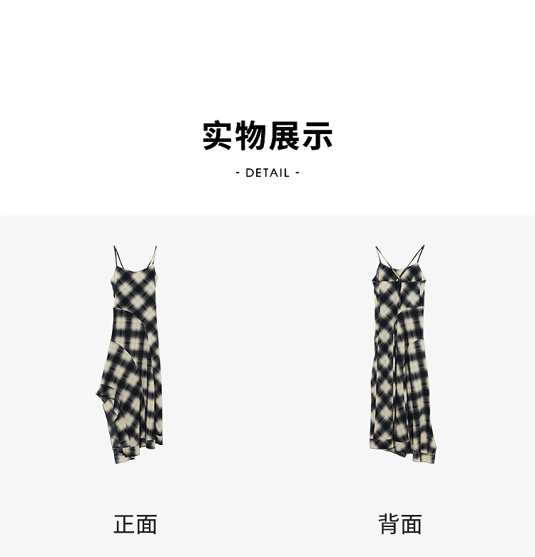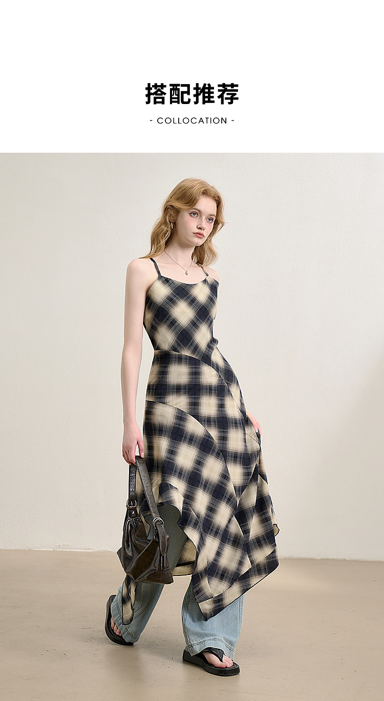 西遇格子吊带连衣裙女夏季新款不规则裙摆露背v领收腰裙子Y0050926