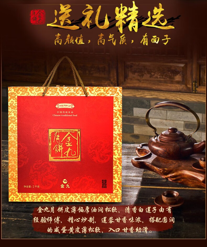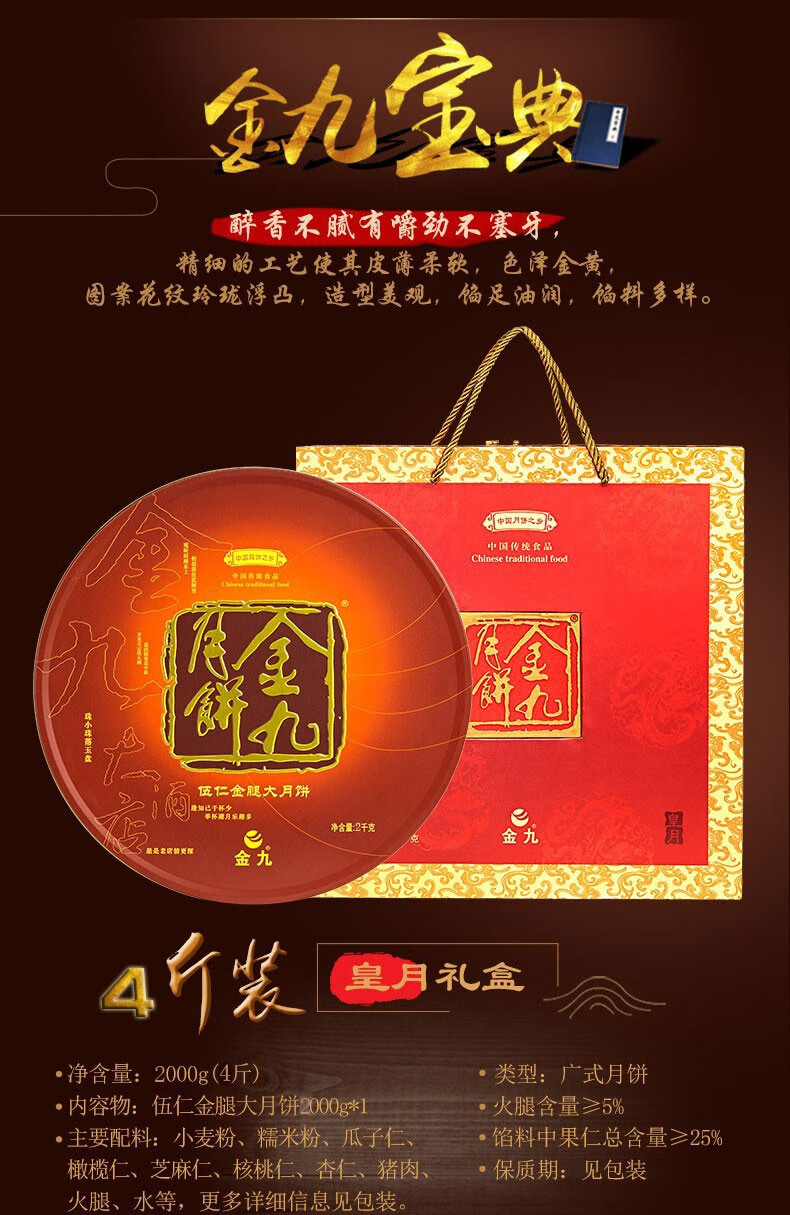 金九月饼 皇月礼盒月饼 2000g 礼盒装 广式月饼中秋糕点金秋送礼 【皇月礼盒月饼2000g】