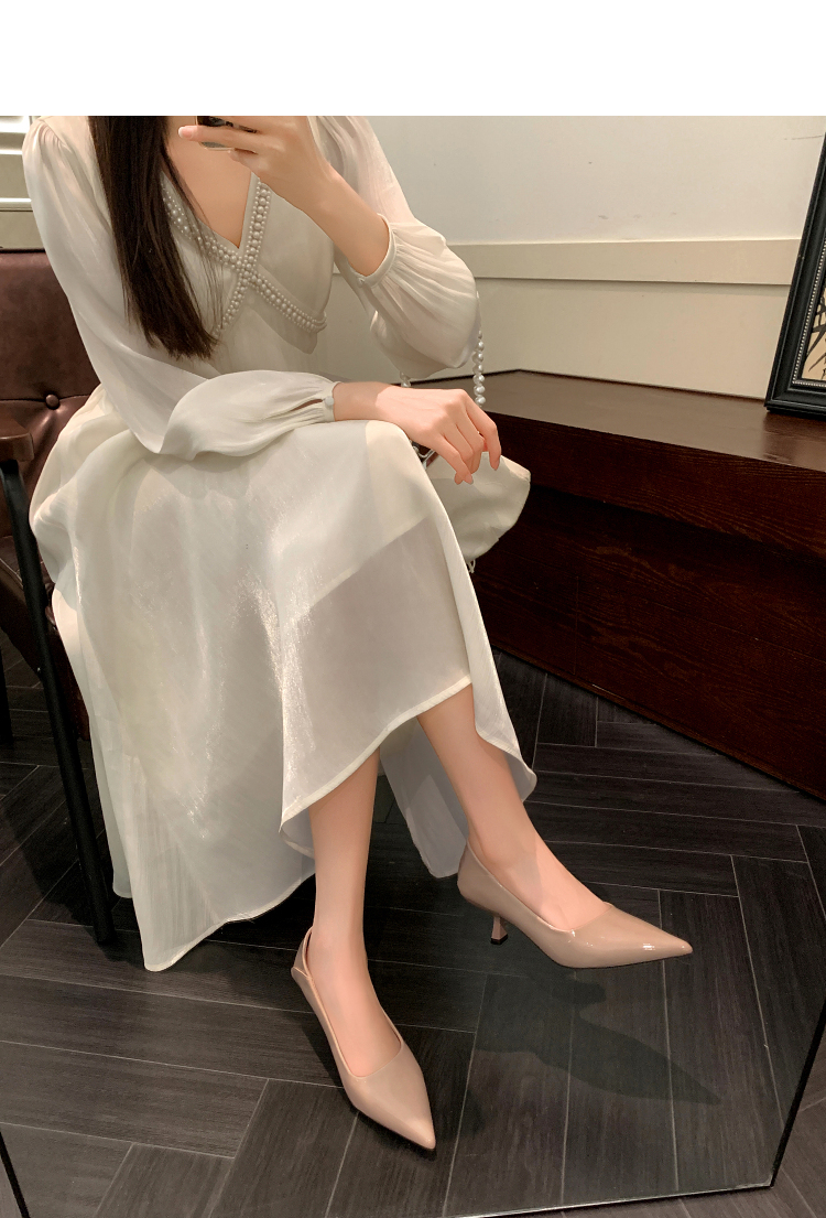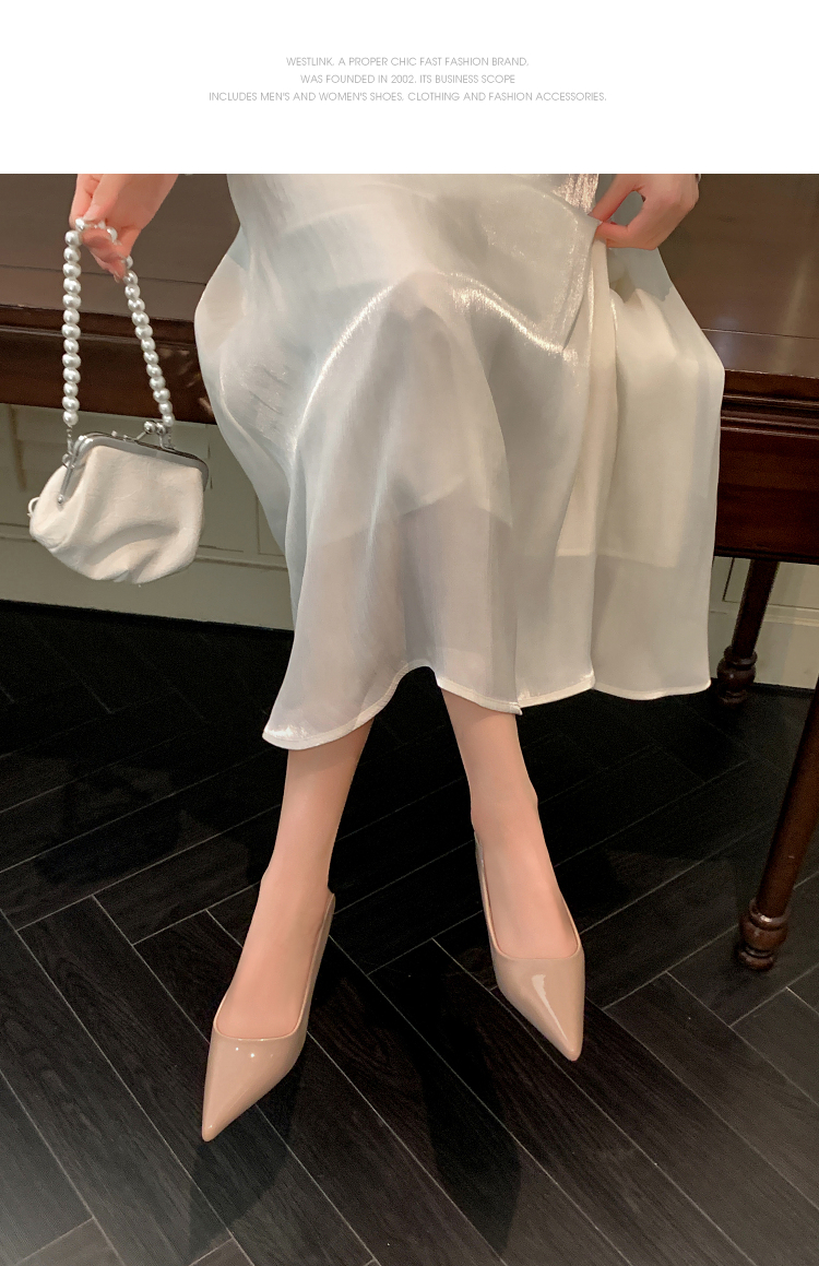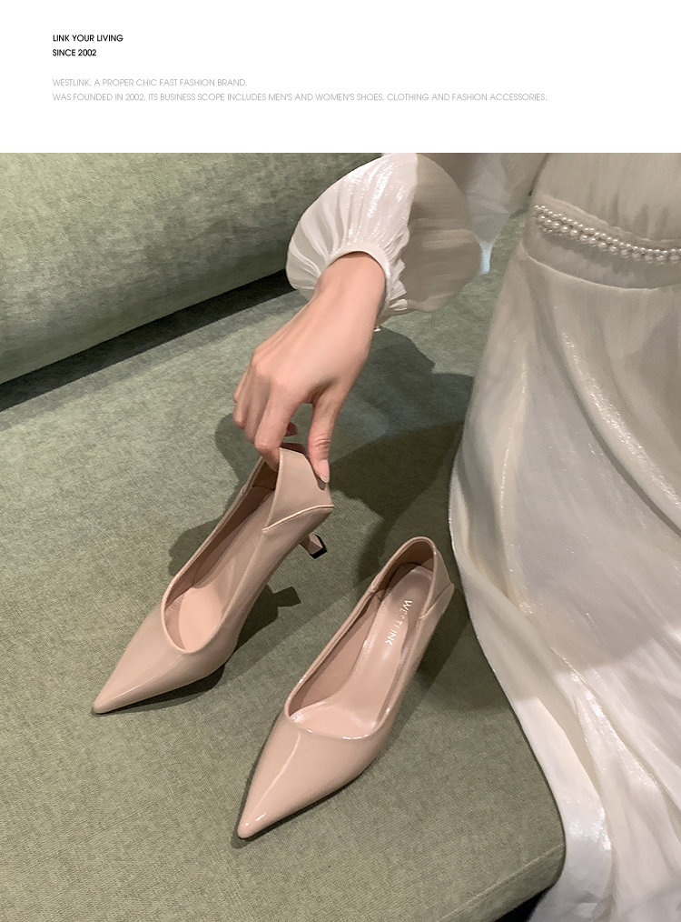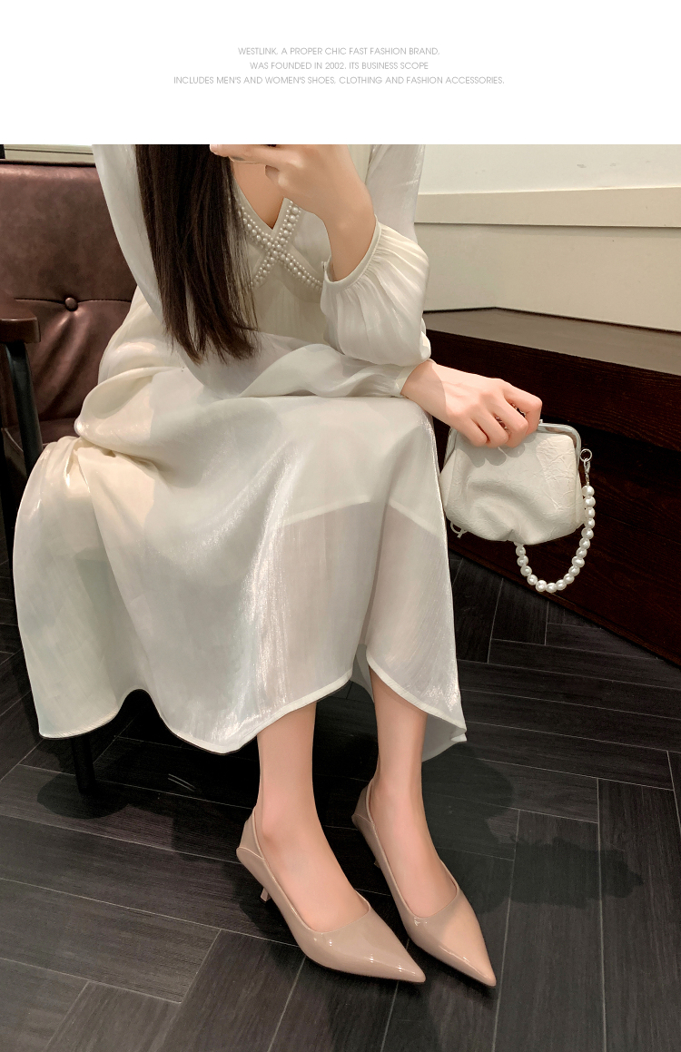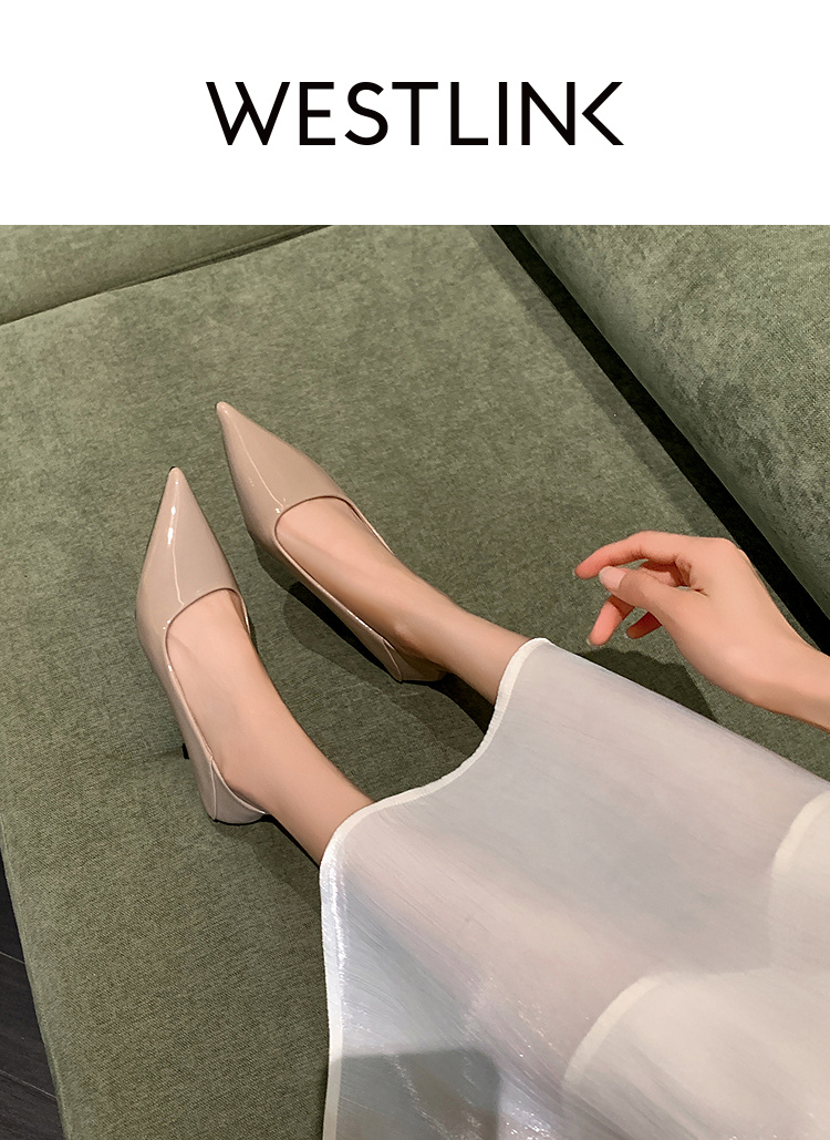 西遇尖头高跟鞋女新款秋季法式配裙子一脚蹬裸色浅口细跟单鞋V1756999/V1757000