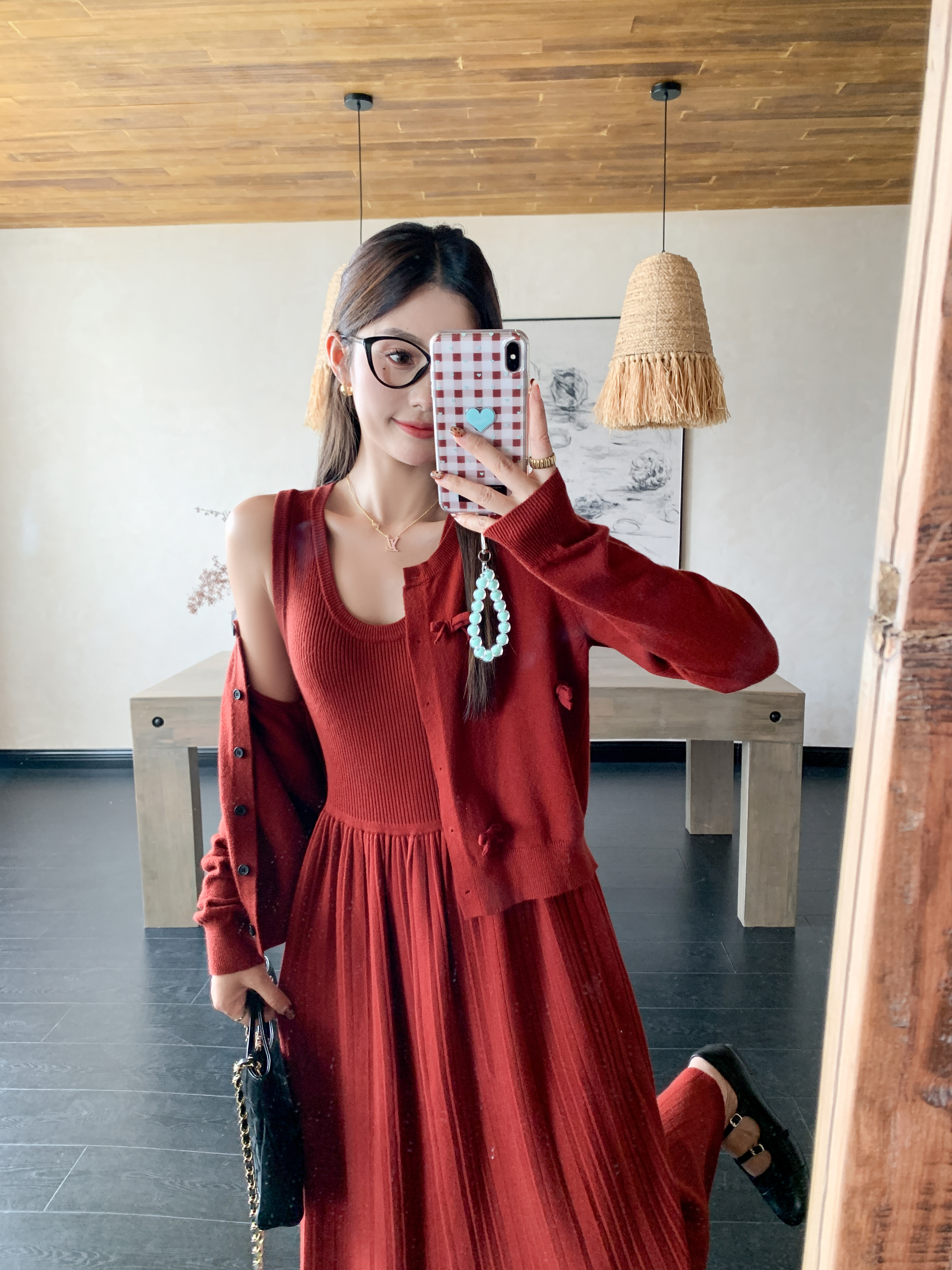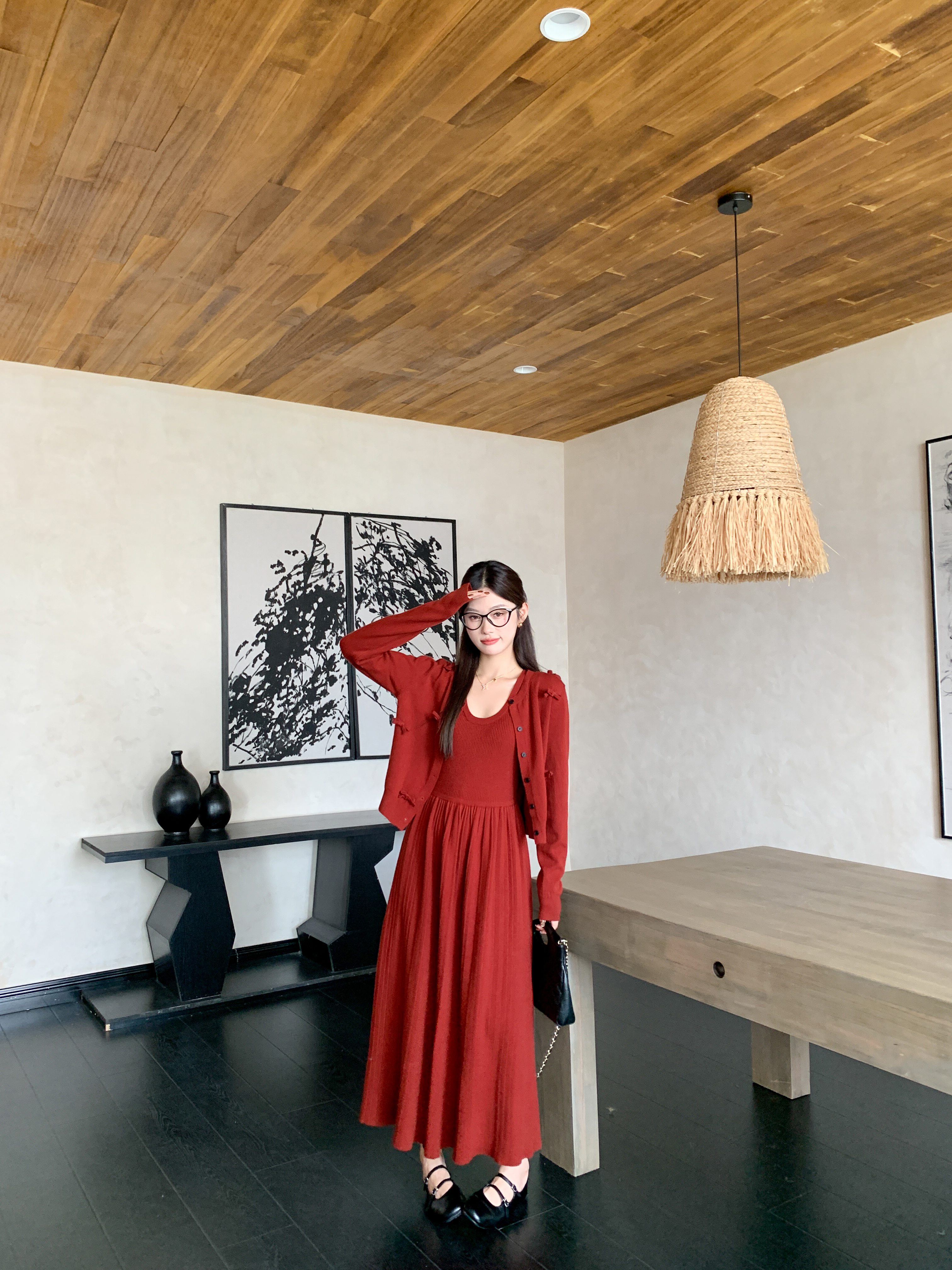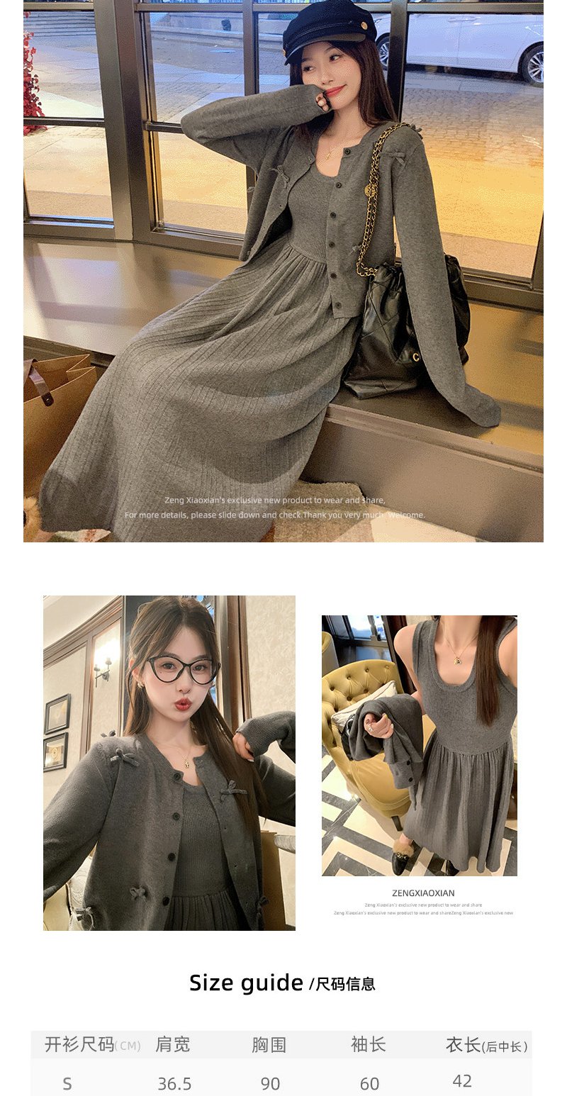 <曾小咸推荐>现货秒杀 !微信超特价!韩系开衫+背心连衣裙套装 日常259.99 立减120 秒杀139.99!!