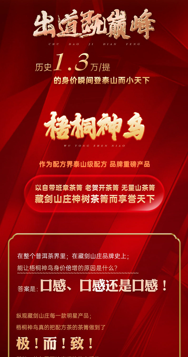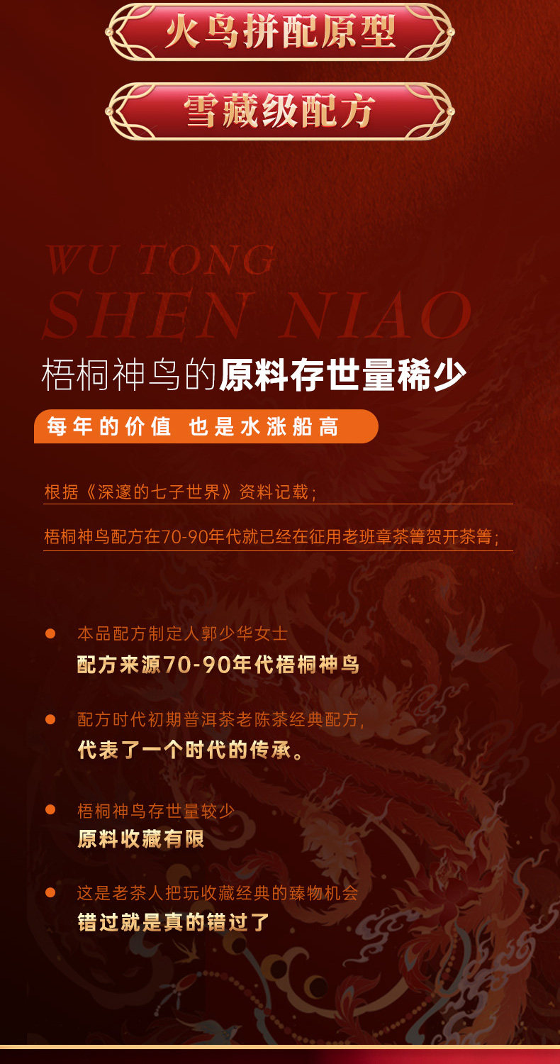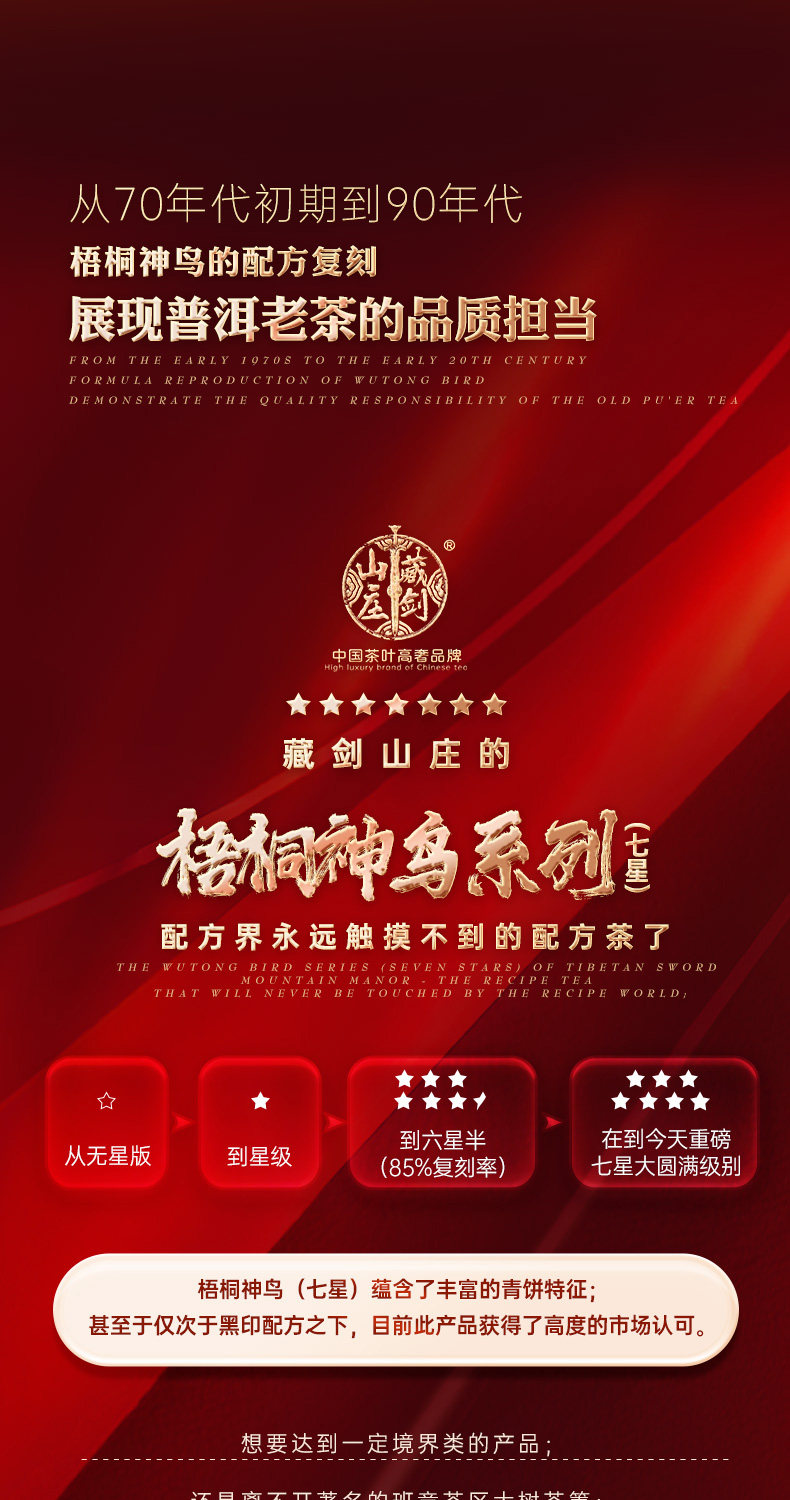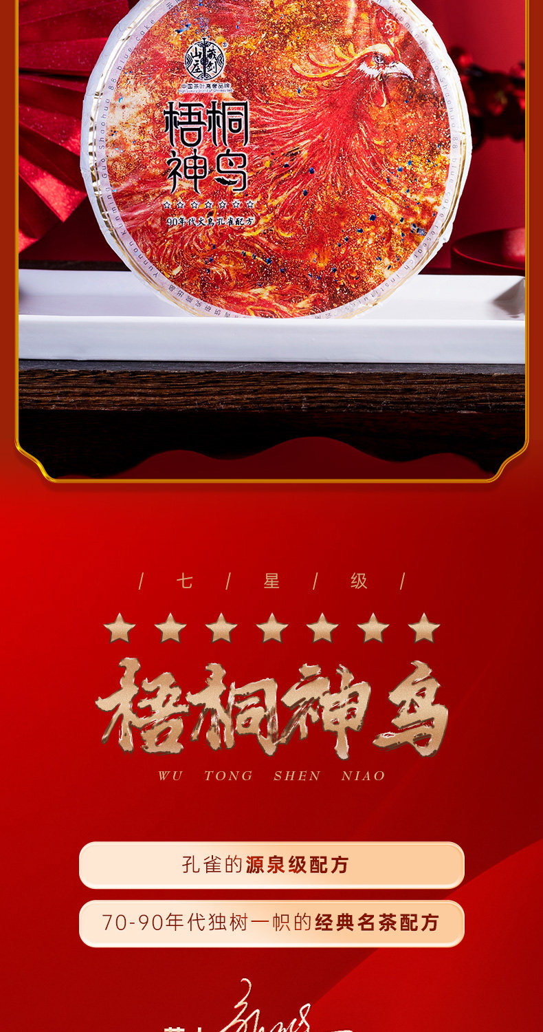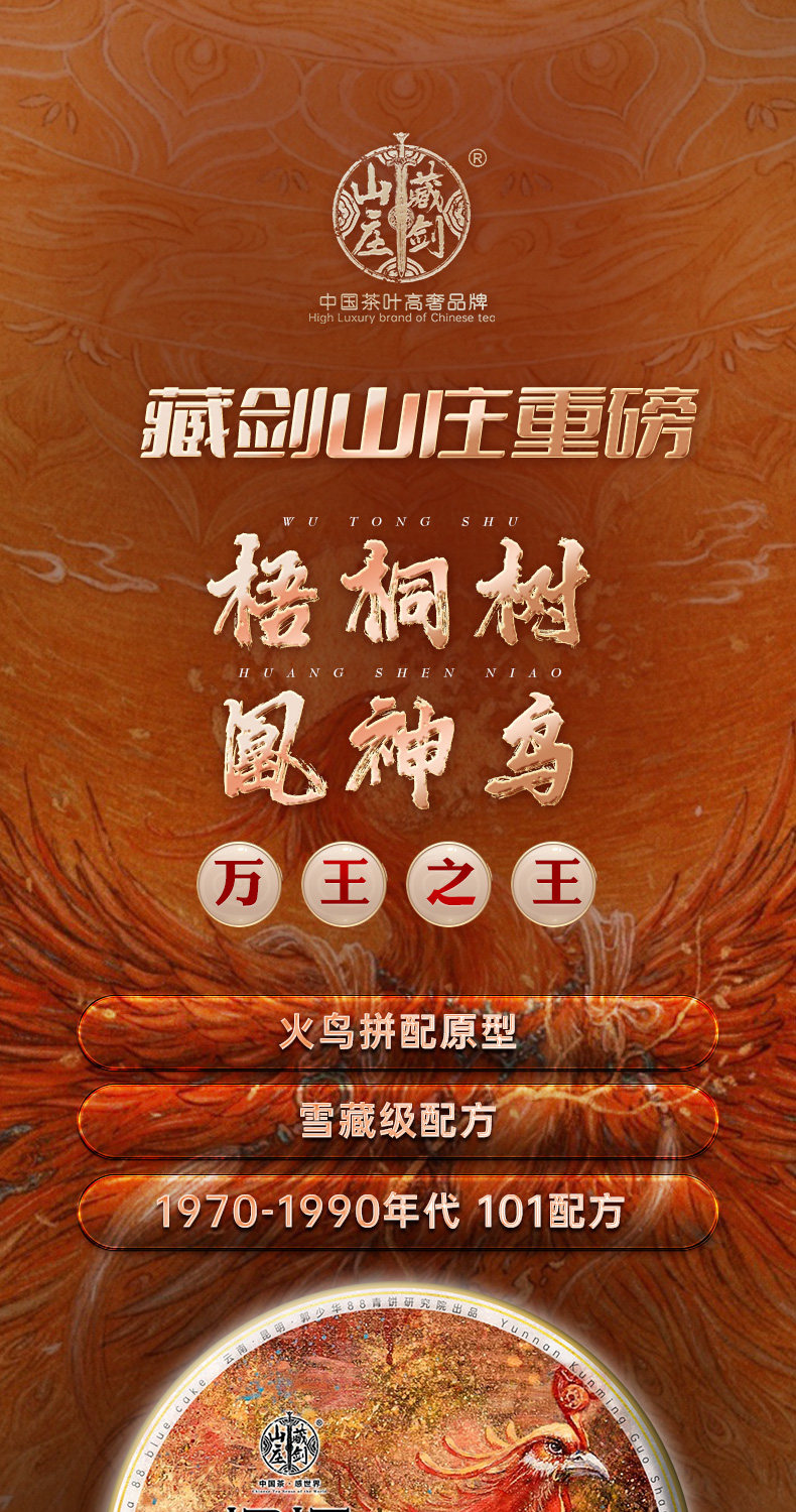 【藏剑山庄】2022年七星级梧桐神鸟 追溯1970-90年代配方 1785克/盒5饼!买2盒送1片!
