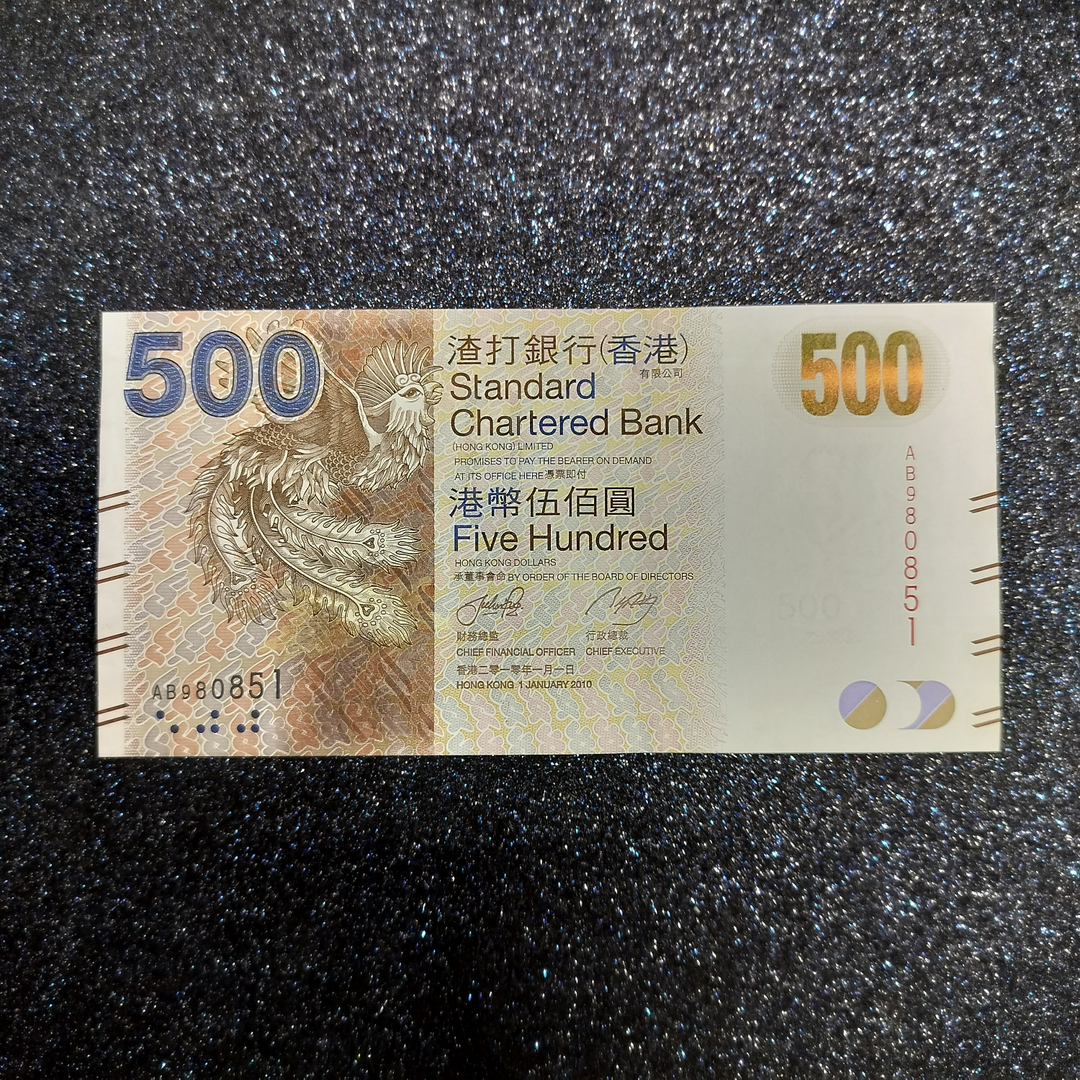 凤凰瑞兽钞-渣打银行香港500元 单张封装评级
