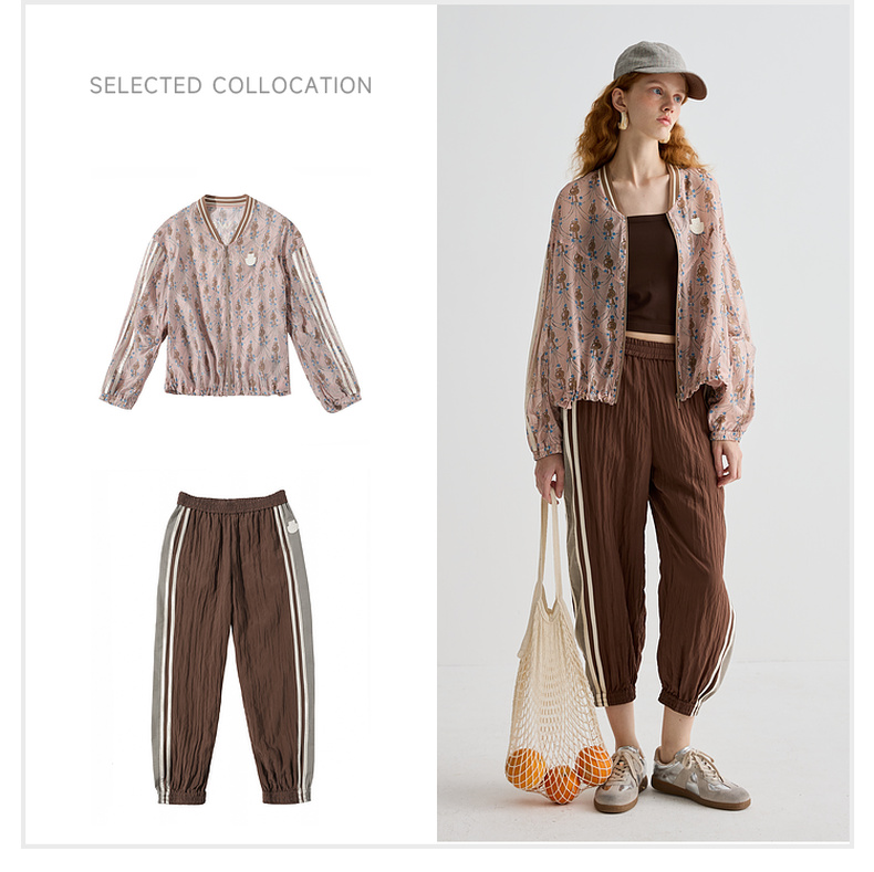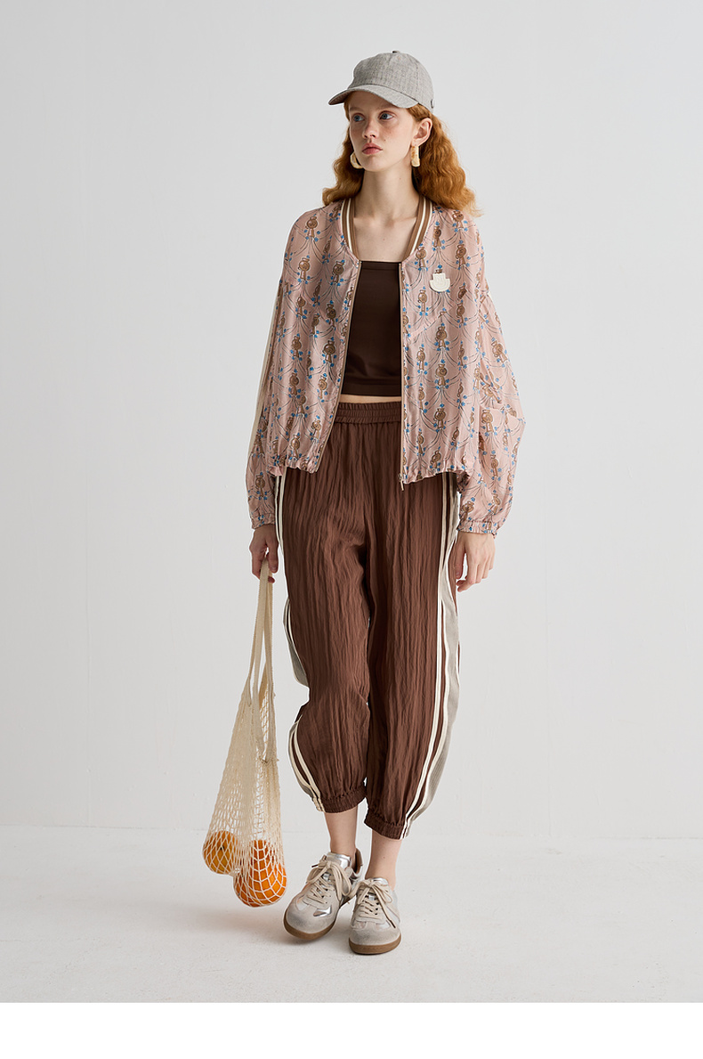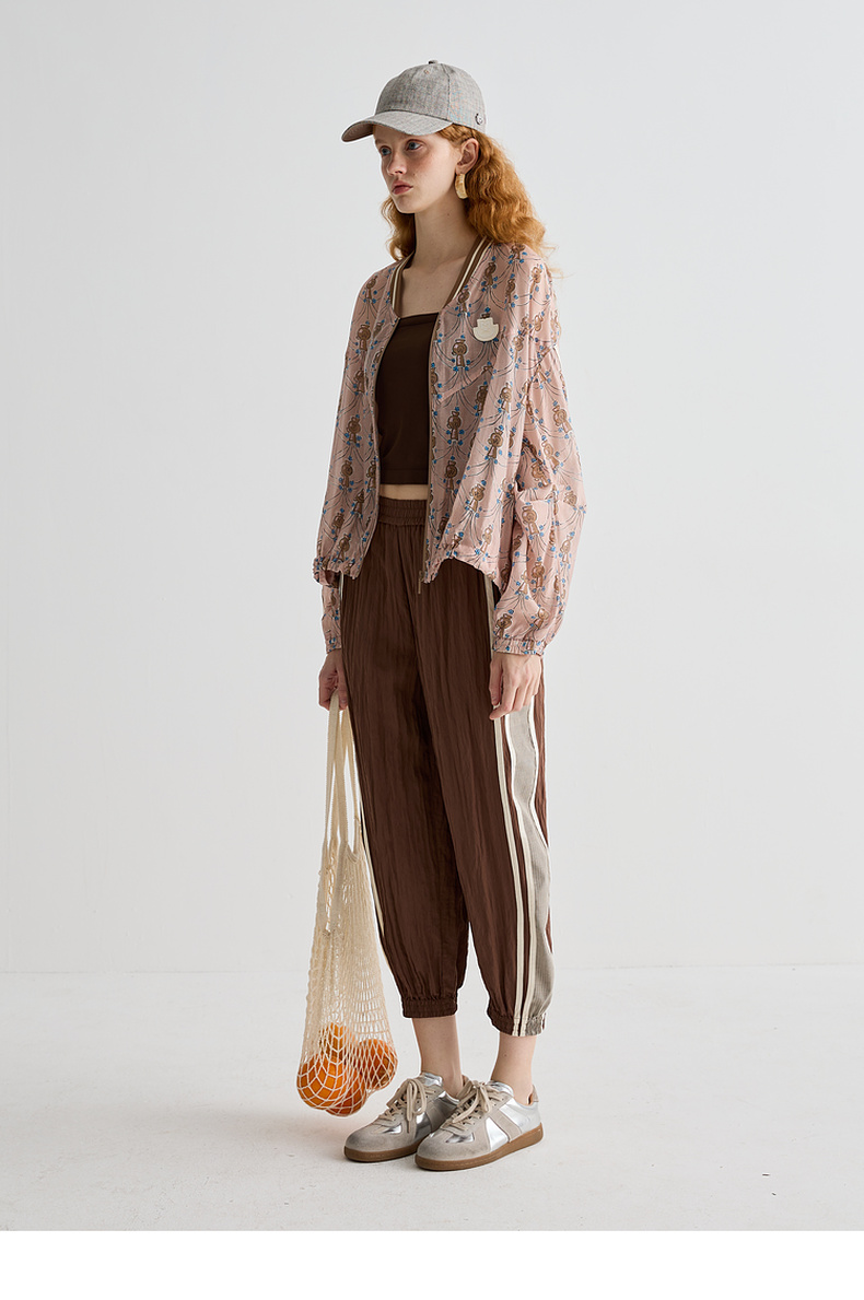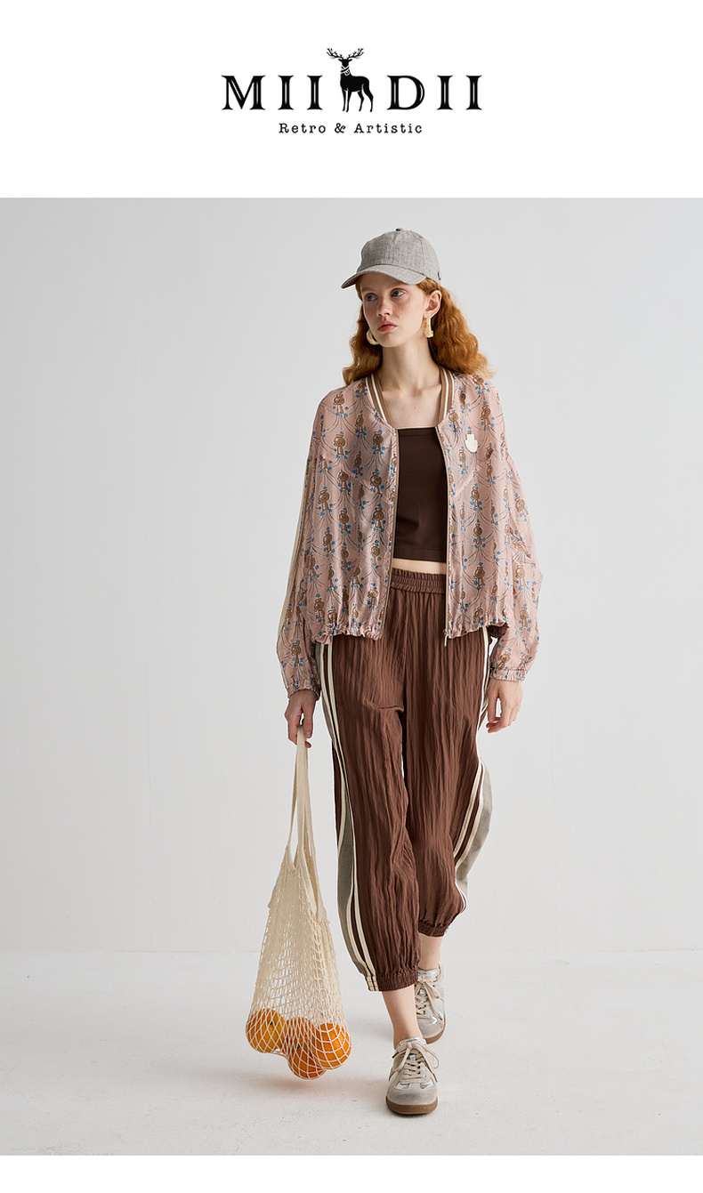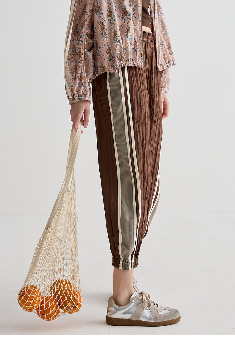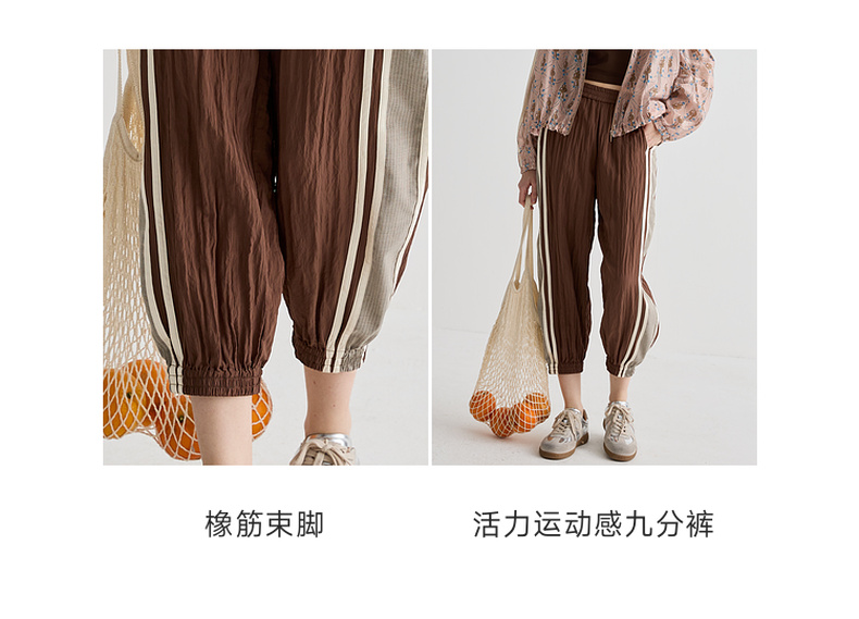 谜底休闲裤女2025夏新品复古格纹束脚运动裤宽松九分裤252MK0583