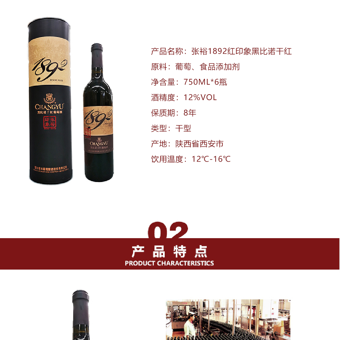 张裕 1892红印象 黑比诺 干红葡萄酒 (圆筒礼盒)整箱750ml*6支