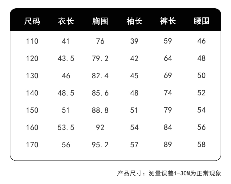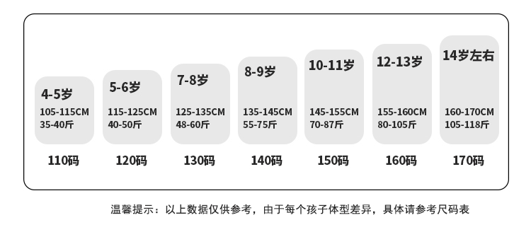 尺码:120-170码