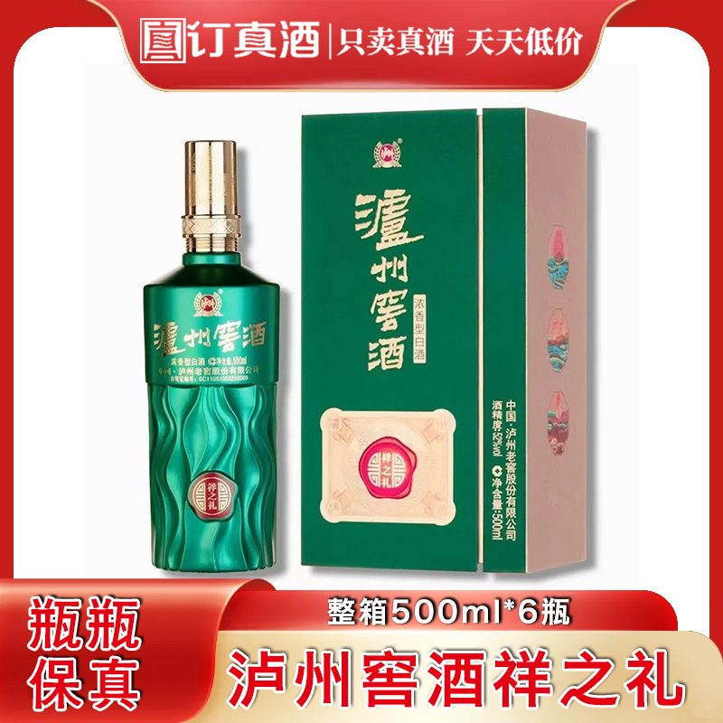 泸州老窖股份泸州窖酒祥之礼绿瓶装 52度浓香型白酒 整箱750ml*6瓶包邮