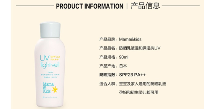 【MamaKids】防晒乳液温和保湿抗UV SPF23PA+