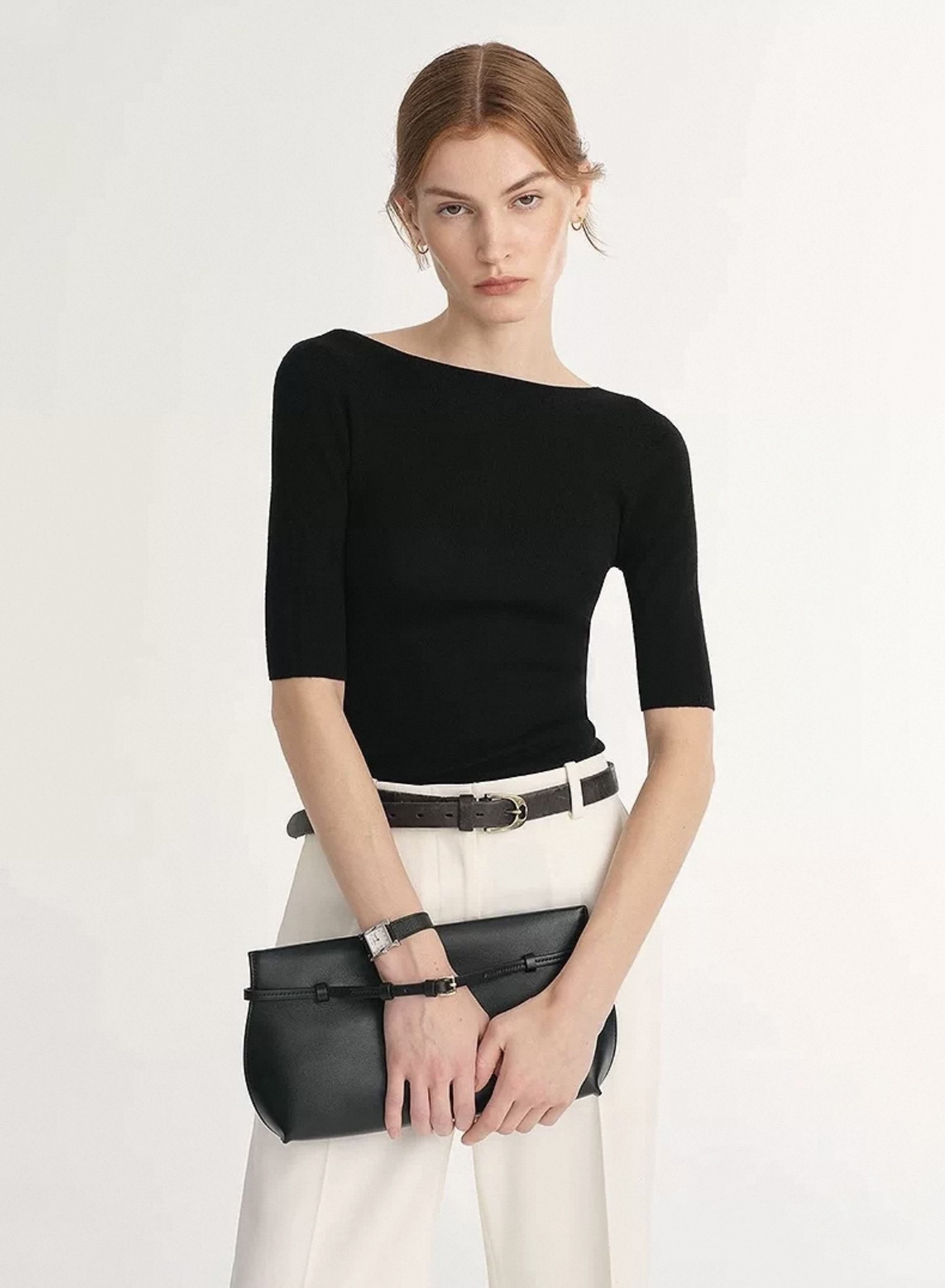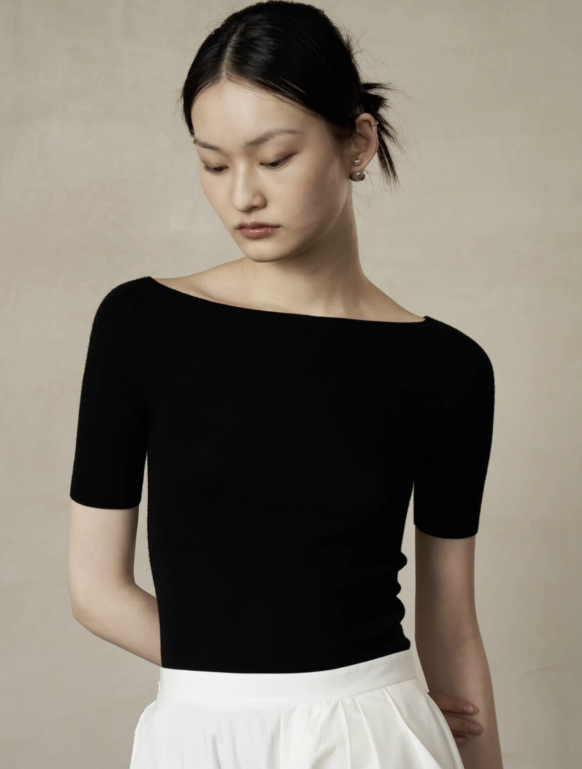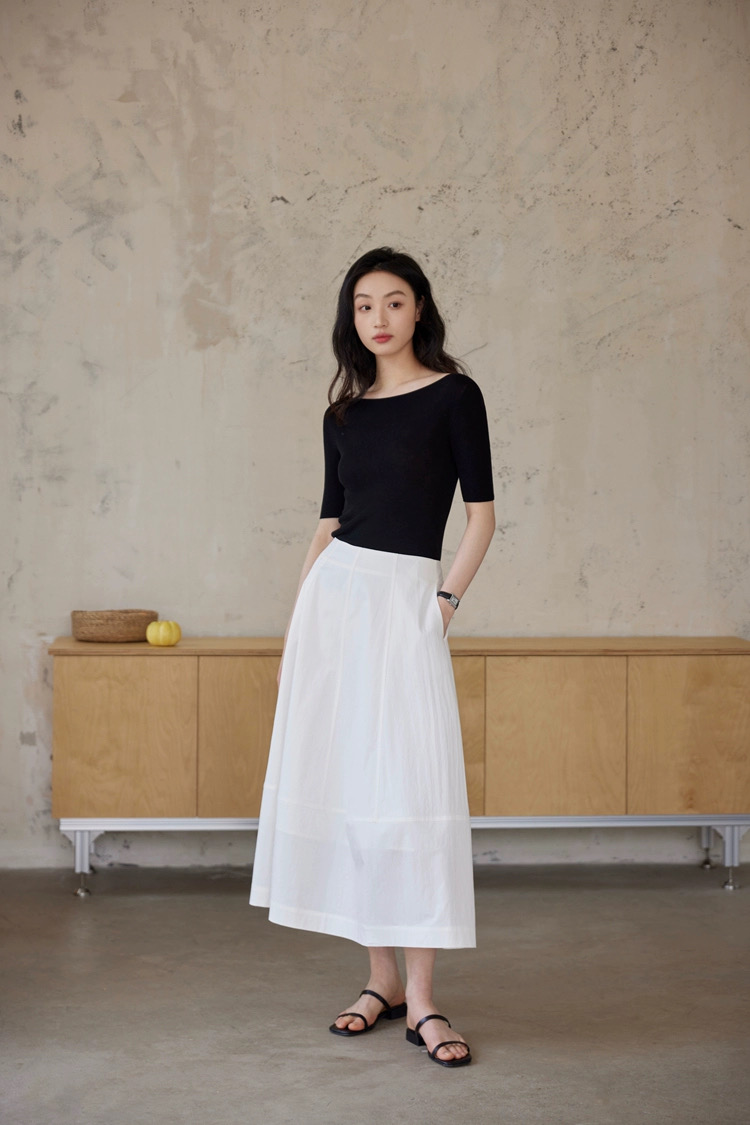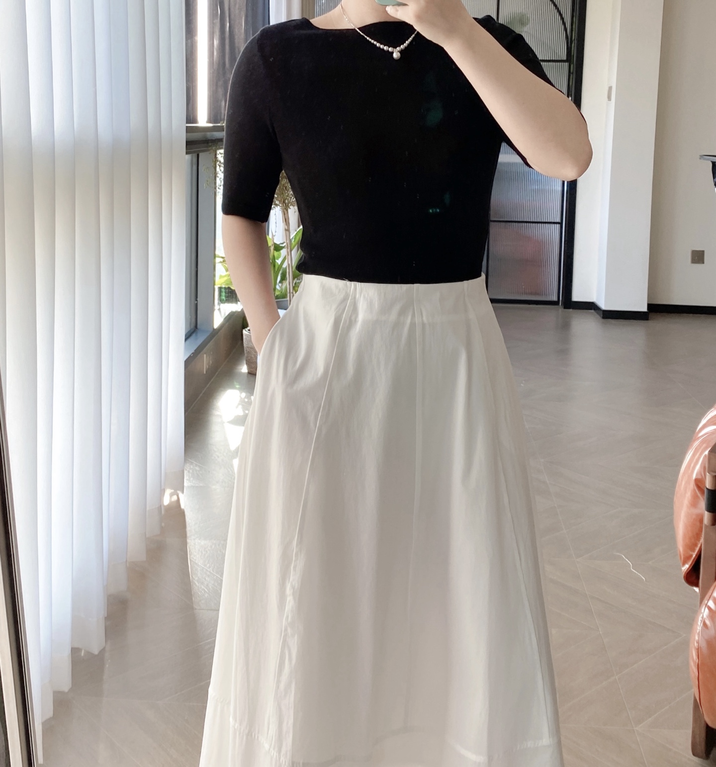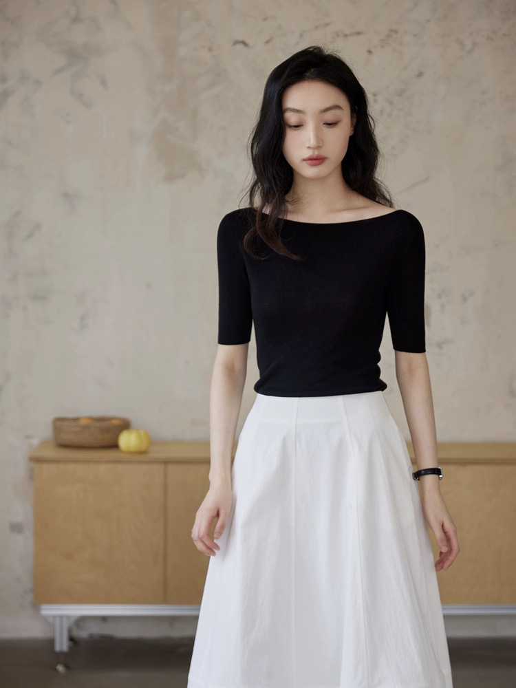 💰上衣,M9360 上衣 价格79元包邮 💰3390 半身裙 价格109 巨显瘦!单一字领显瘦中袖针织衫+款八片立裁花苞裙液氨棉半身裙 经典的黑白配系列 显瘦,端庄又大气