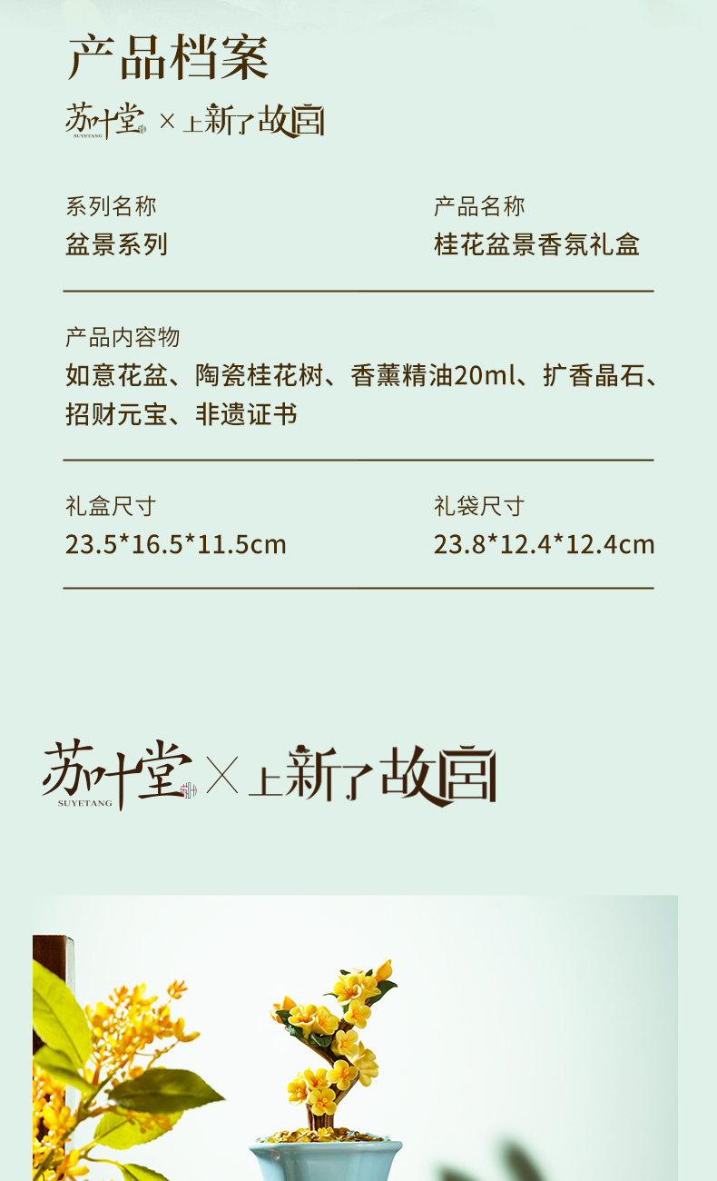 (赠价值百元车载香薰礼盒)上新了故宫瓷花盆景香薰,联手江南香道品牌,苏叶堂」打造,从诗词意境中汲取香氛灵感【G】