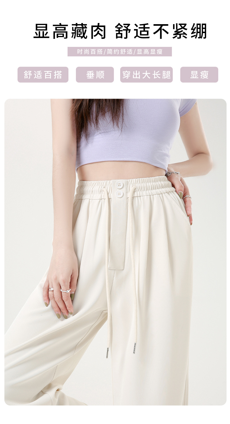 夏季新款阔腿裤女,轻盈质感,让你舒适自在。高腰设计拉长比例,宽松裤型收腰显瘦。不同长度两种风格,尽显女性优雅率性!