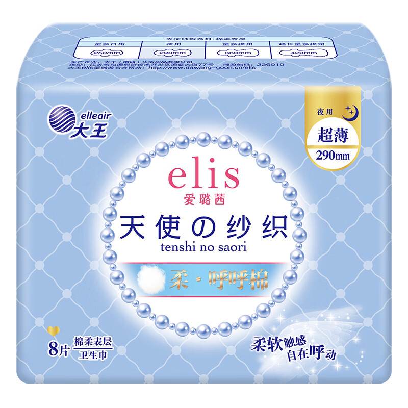 【买三送一】大王天使纱织超薄棉柔夜用卫生巾290mm 8片/包