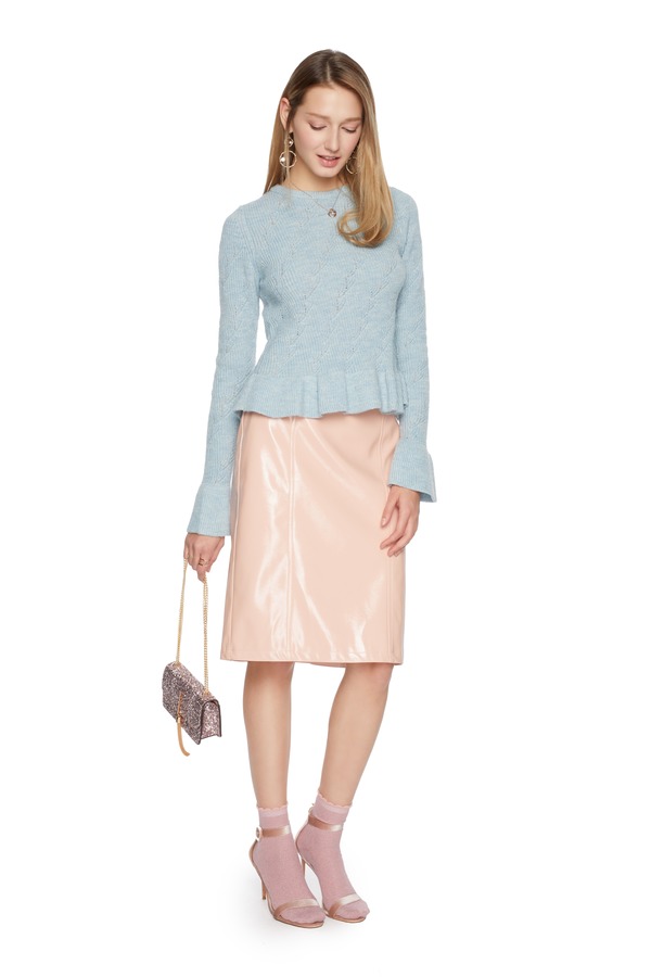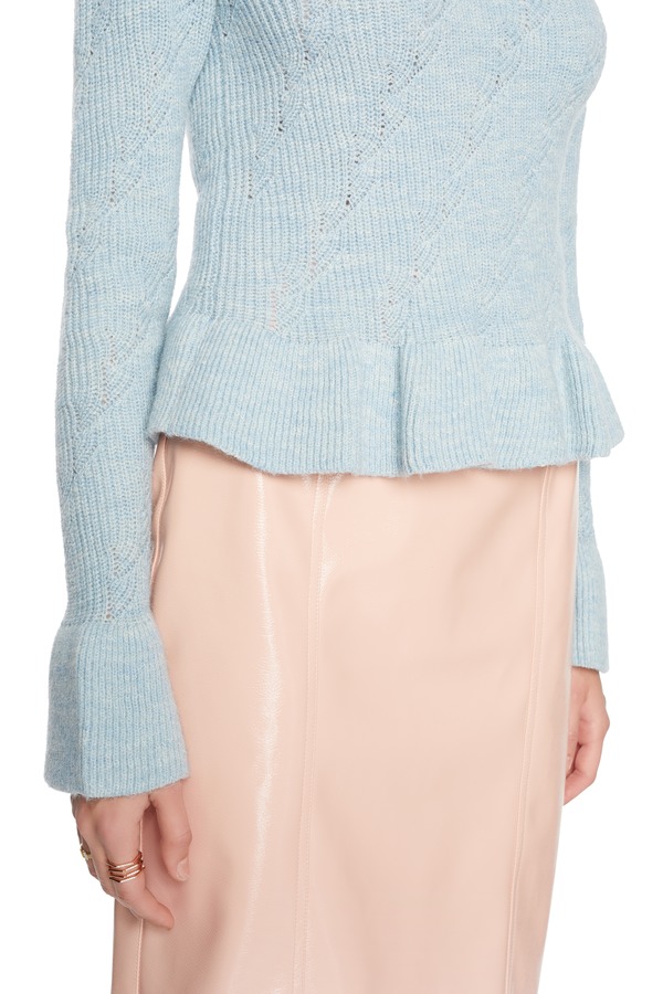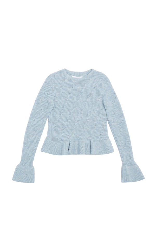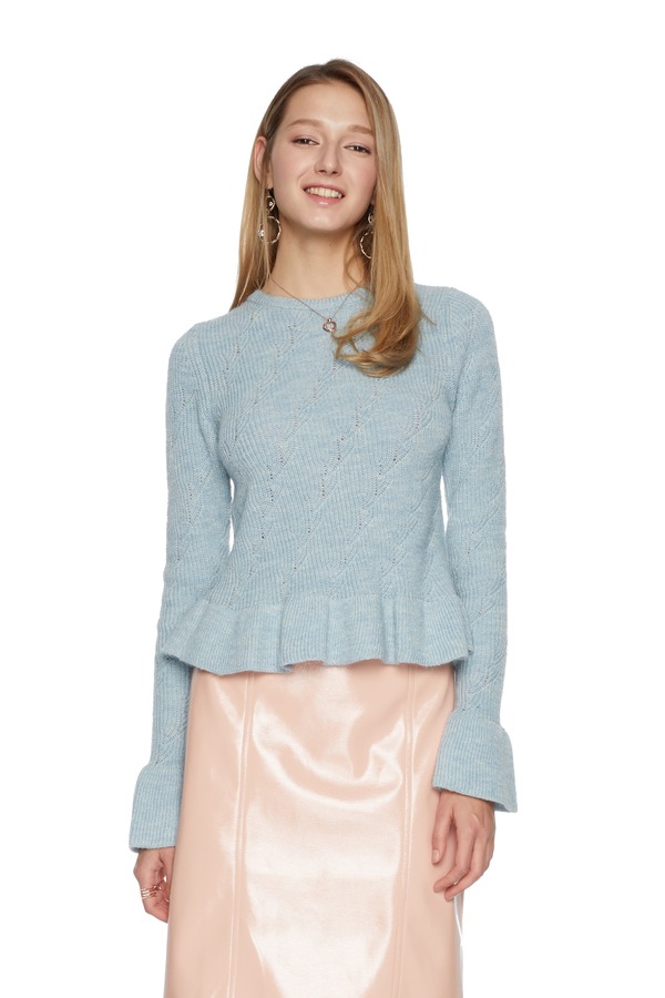 URBAN REVIVO 荷叶边浅蓝色毛衫 5814